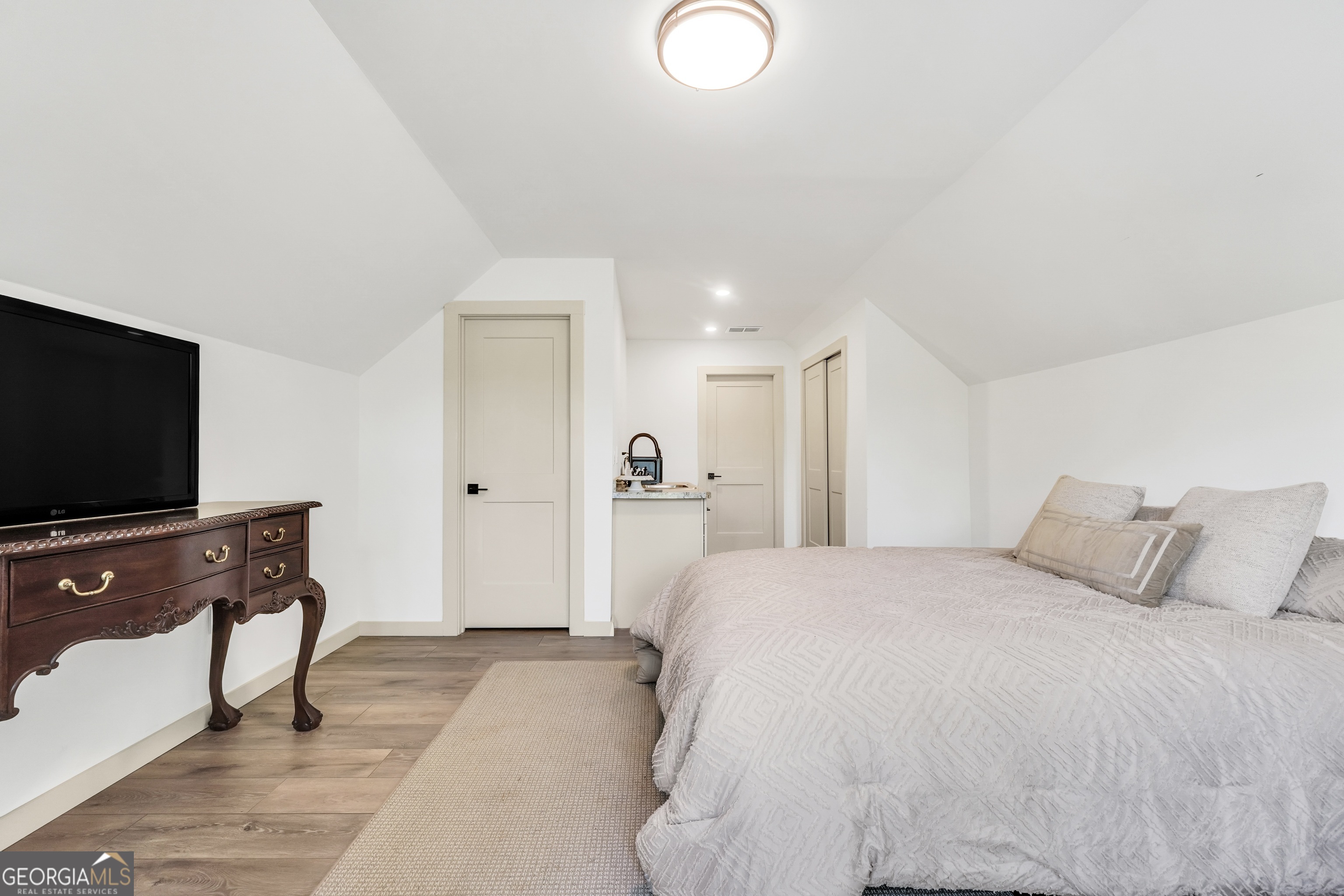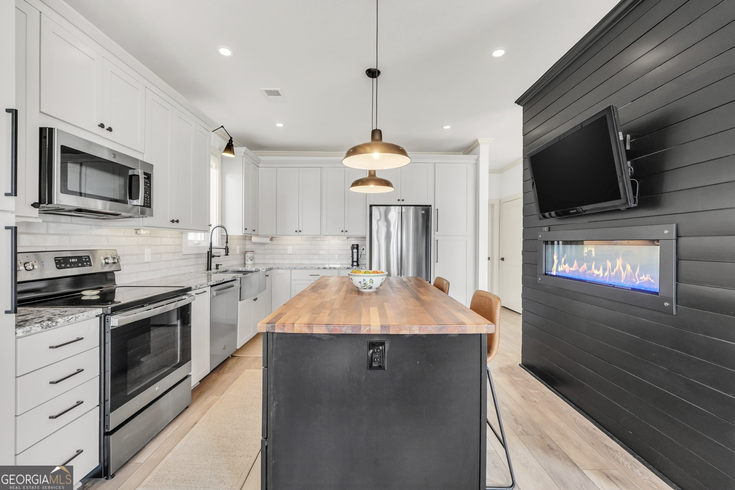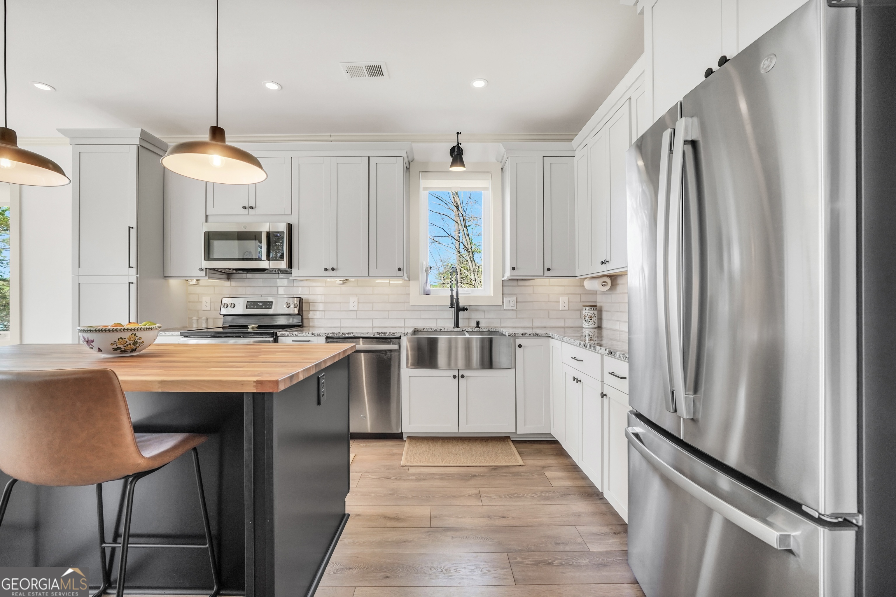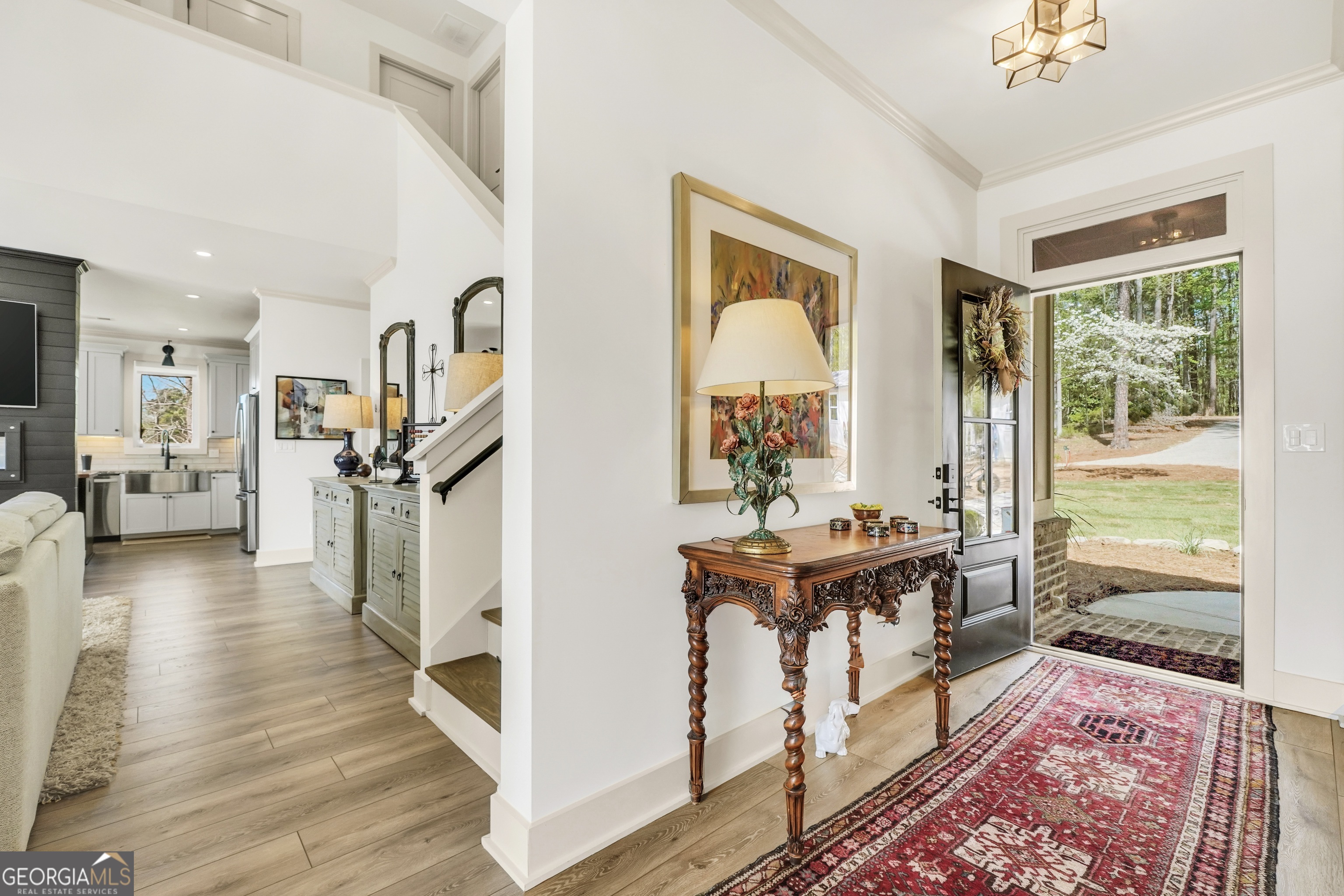 Jackson Lake Dream Home! With over 500 feet of Jackson Lake shoreline, a kayakers playground, a bird watchers paradise, and a front-row seat to one of the most breathtaking views on the water - 451 Mayo Road is the one youve been waiting for! Built in 2023 and meticulously maintained, this stunning lakefront retreat offers the rare combination of modern finishes and true waterfront living in the heart of Newton County. With a southern exposure, nearly every room in the house captures gorgeous natural light throughout the day - and those late afternoon rays hitting the water? Absolutely breathtaking. The thoughtfully designed interior features floor-to-ceiling doors and windows along the back of the home, flooding the living spaces with natural light and framing the lake like a living work of art. A showstopping double-sided fireplace anchors both the living room and kitchen, creating a warm and inviting flow ideal for entertaining. The open dining area is surrounded by windows, and the upgraded kitchen features a butcher block island - functional, beautiful, and built to last. A convenient half bath rounds out the main level. The primary suite is located on the main floor and features a well-appointed en suite with a stunning stone shower. Upstairs youll find two additional bedrooms and a full bath - plenty of room for family or guests. The oversized garage easily accommodates two full-size vehicles with room to spare for storage. Above the garage, a private studio apartment with kitchenette offers the perfect setup for in-laws, older teens, or guests who want their own space. Outside is where this property truly shines. Sitting on just under two acres at the end of a quiet cul-de-sac, youll have plenty of room to breathe, play, and spread out - all anchored by a nearly new floating dock and established riprap seawall. The covered patio is the perfect spot for dinners overlooking the lake, and stepping out through the French doors into that southern light never gets old. Over 500 feet of shoreline. All-day natural light. Incredible bird watching. Private guest suite. This one has it all - dont let it get away!