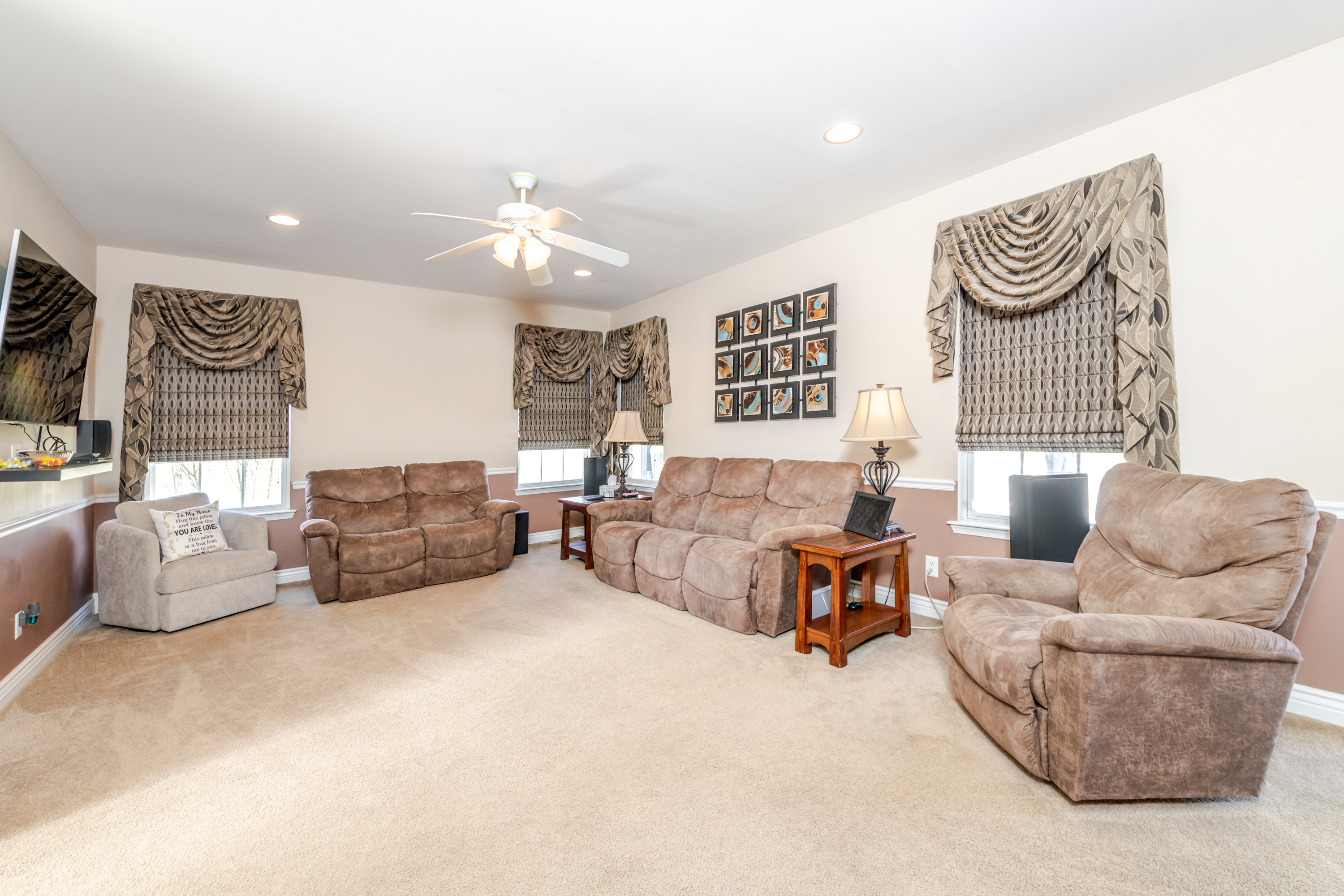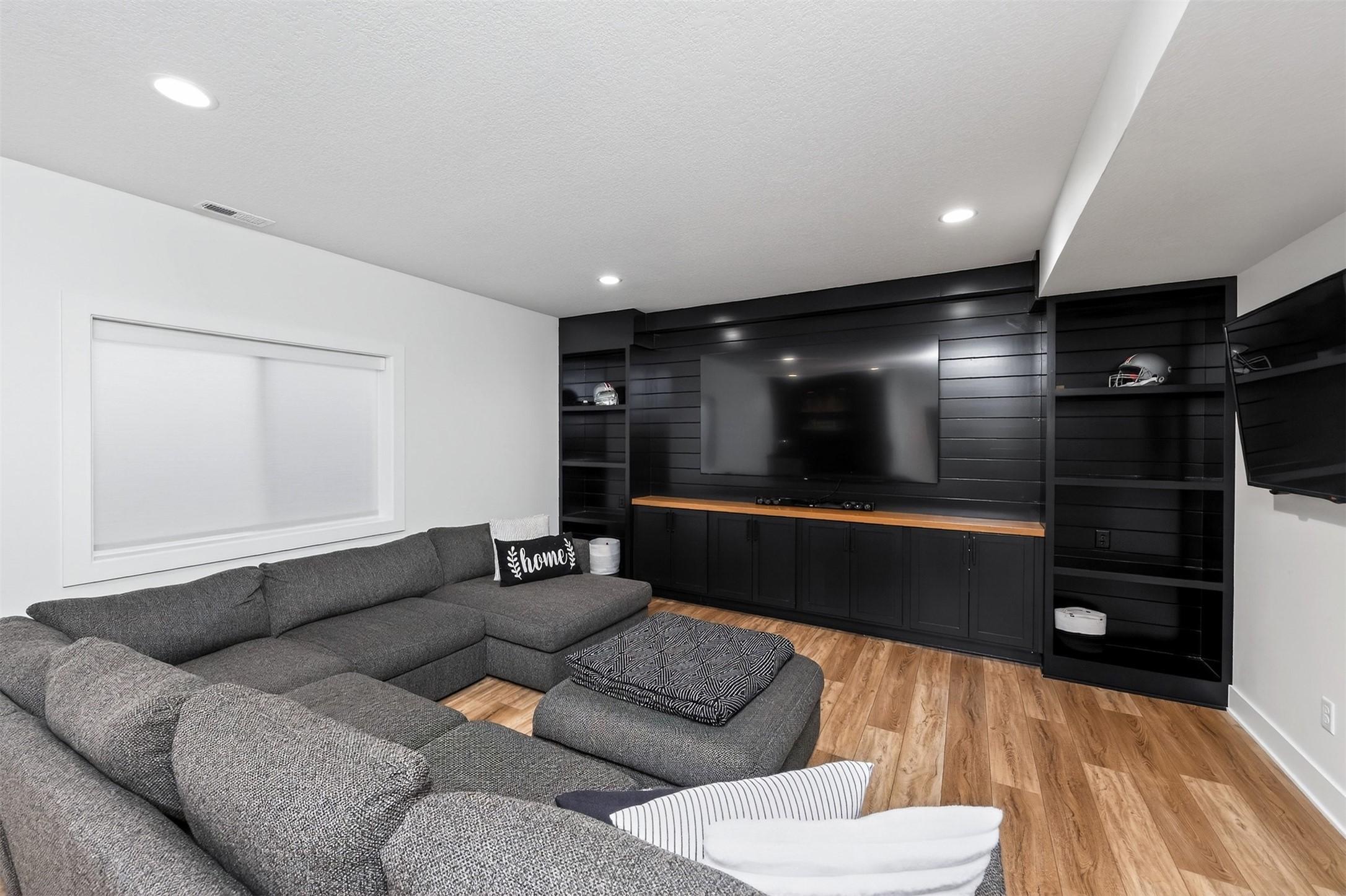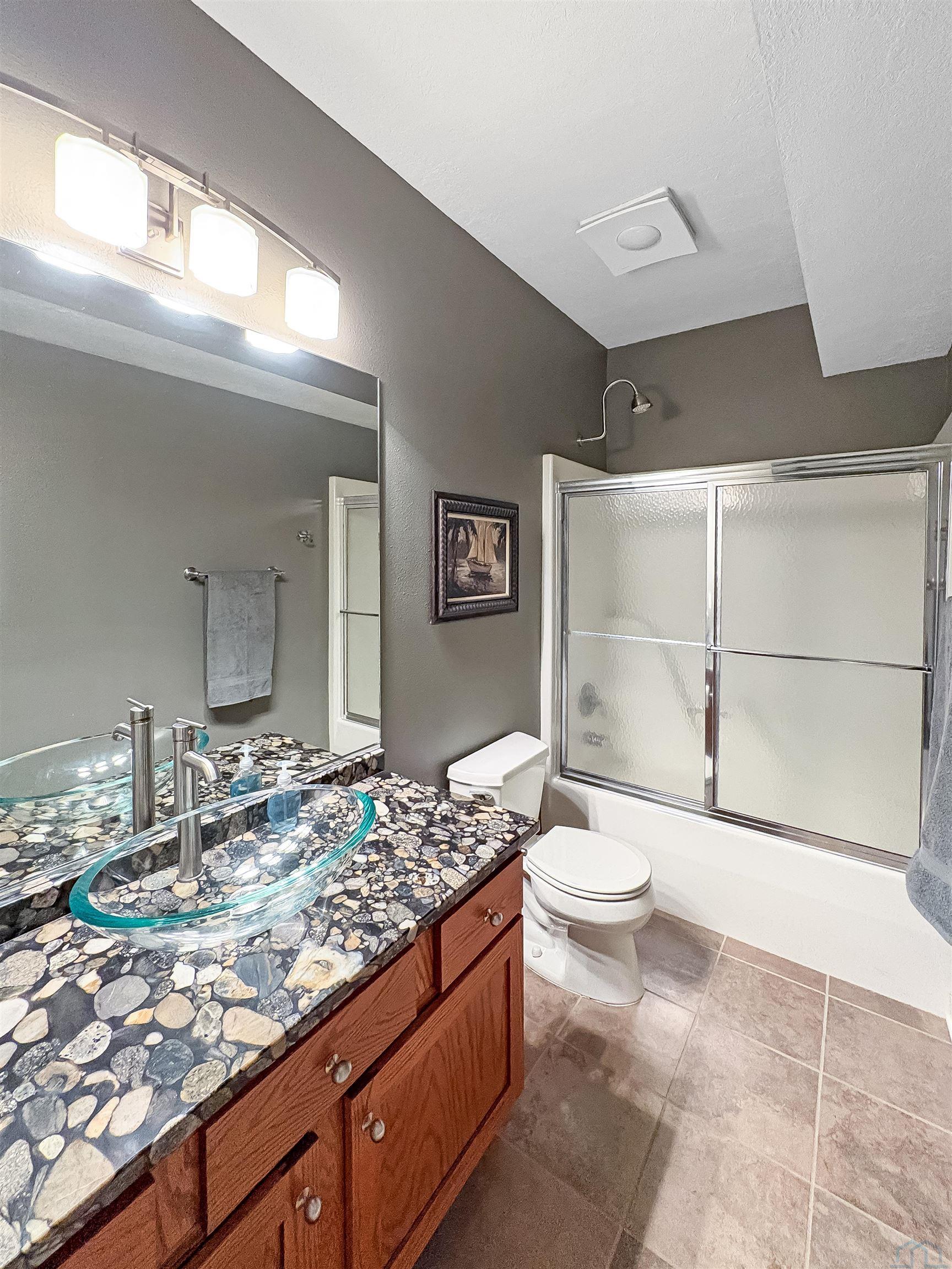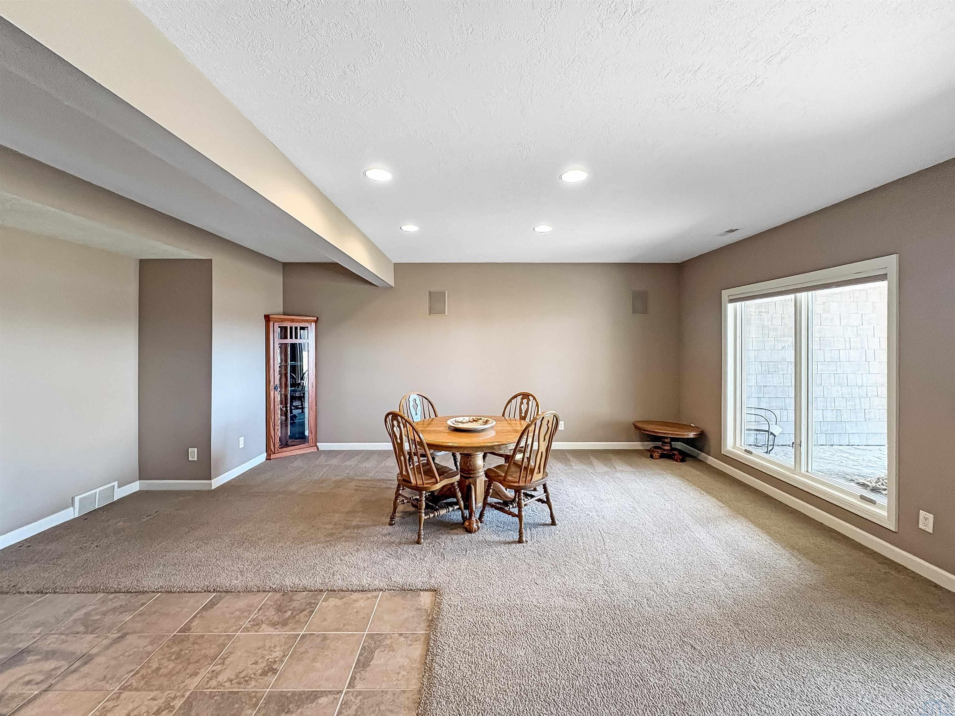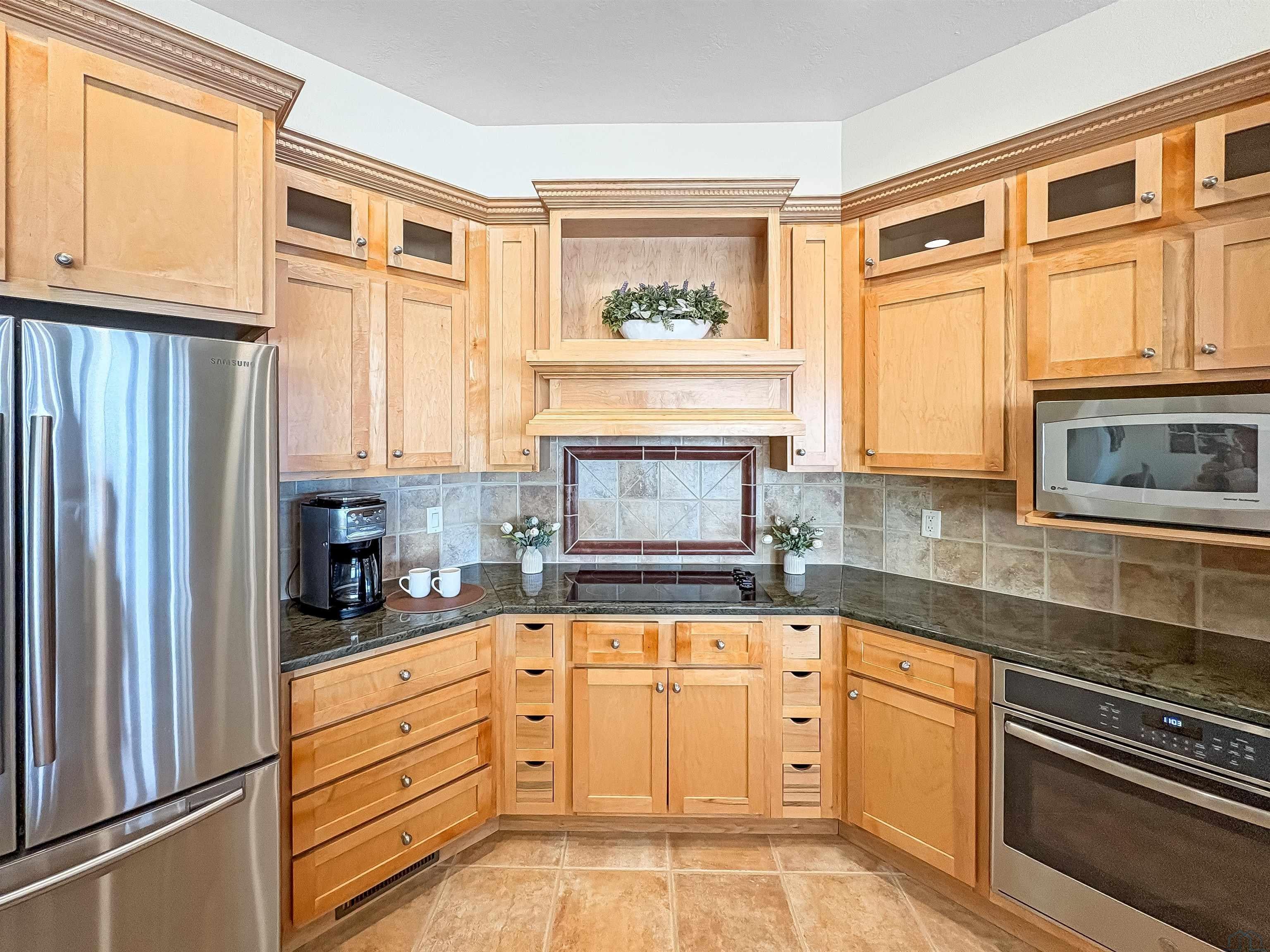 Fantastic opportunity to own a riverfront property in Wynstone! This townhome design is impressive throughout. It is a rare private setting on 1.35 acres, over 2500 Sq Ft on the main floor plus a fully finished basement. A large foyer with hardwoods introduces you to the home. Beautiful open concept space with 10ft ceilings and 8ft doors. Large kitchen with generous maple cabinetry, double ovens, granite tops, tile floor and an island with barstool space. The dining room has hardwood floors continued from the foyer and access to the Screenbuilders 4 season porch. The living room has a 3 sided gas fireplace, built-ins, art niches, and large windows to enjoy the view. The spacious primary suite is situated in the back corner of the property. Large windows allowing natural light and a great view. The full master bath has a jet tub, shower, 2 sinks, an additional vanity plus a large walk in closet. Bedroom 2, currently used as an office, is at the front of the home. The hallway bath with a shower is near the bedroom and off the entryway. A tiled mud room off the garage is set up for main floor laundry with laundry chute, many cabinets and a large pantry. The fully finished basement has a wide open family room with the 2nd gas fireplace in the TV area, additional room for a game table and more. Amazing wet bar to accommodate 10-12 barstools has beverage fridges, dishwasher, sink and a full fridge. Display your liquor and wine beautifully; additional wine display room too! Bedrooms 3 and 4, with egress, plus a full bath on one side of the lower level. Convenient laundry room and powder room near the entertaining space. An additional 10x15 den space and storage room with utilities. Bluetooth speakers zoned throughout. The exterior is meticulously landscaped and fully sprinklered. Shake siding, composite deck with cable railing, flagstone patio at the basement walkout and a 50yr BRAVA roof was installed 2025! An amazing mix of purposeful design and privacy.