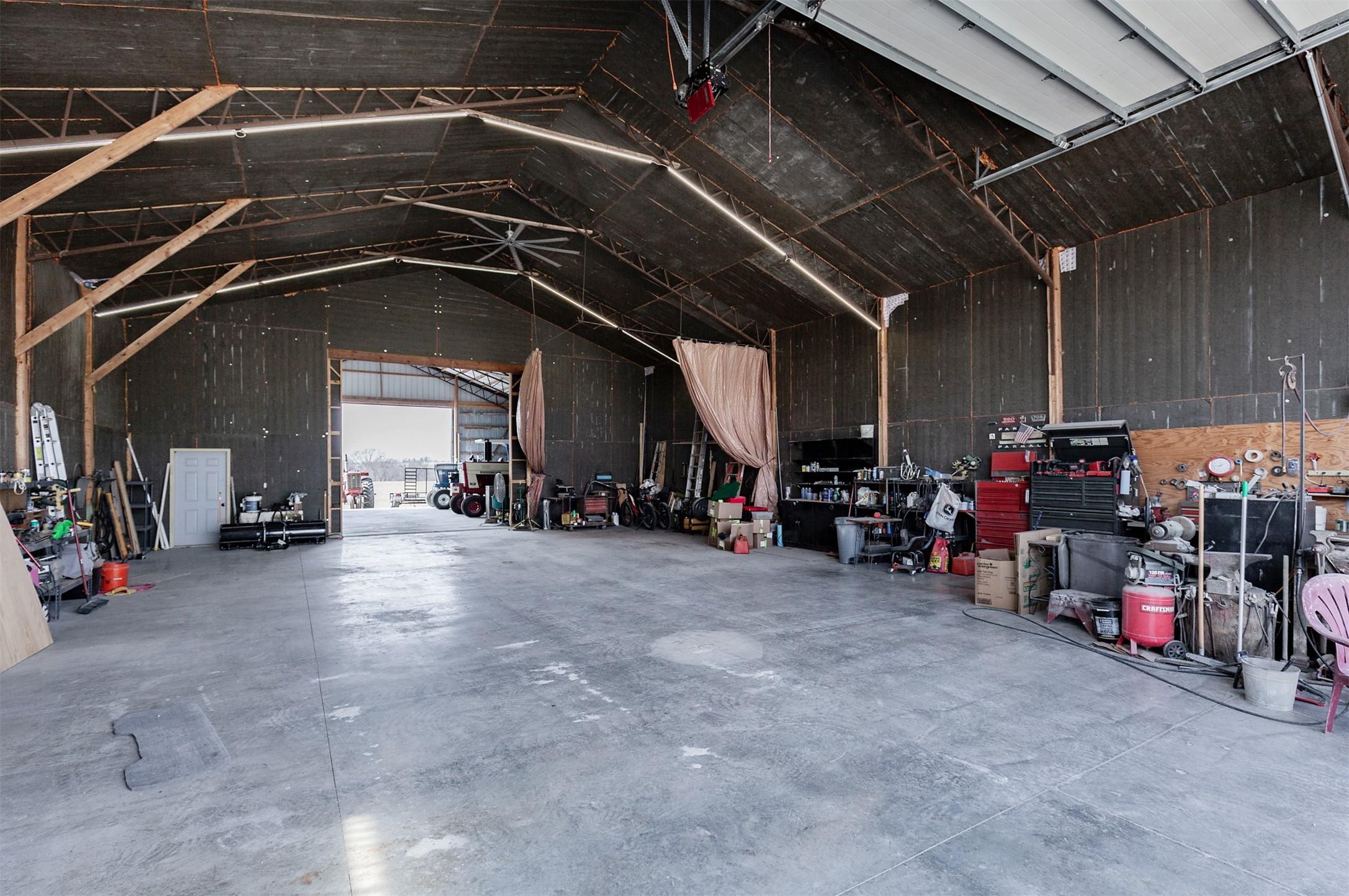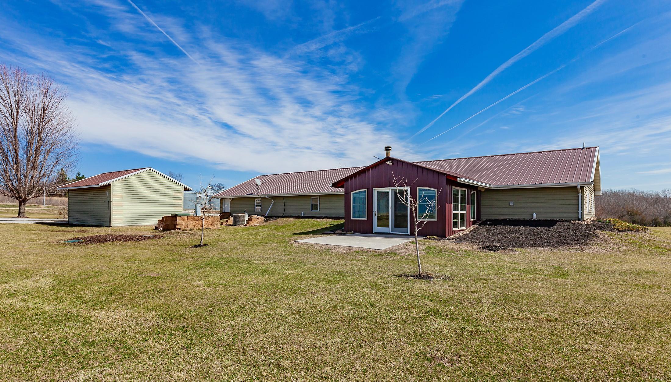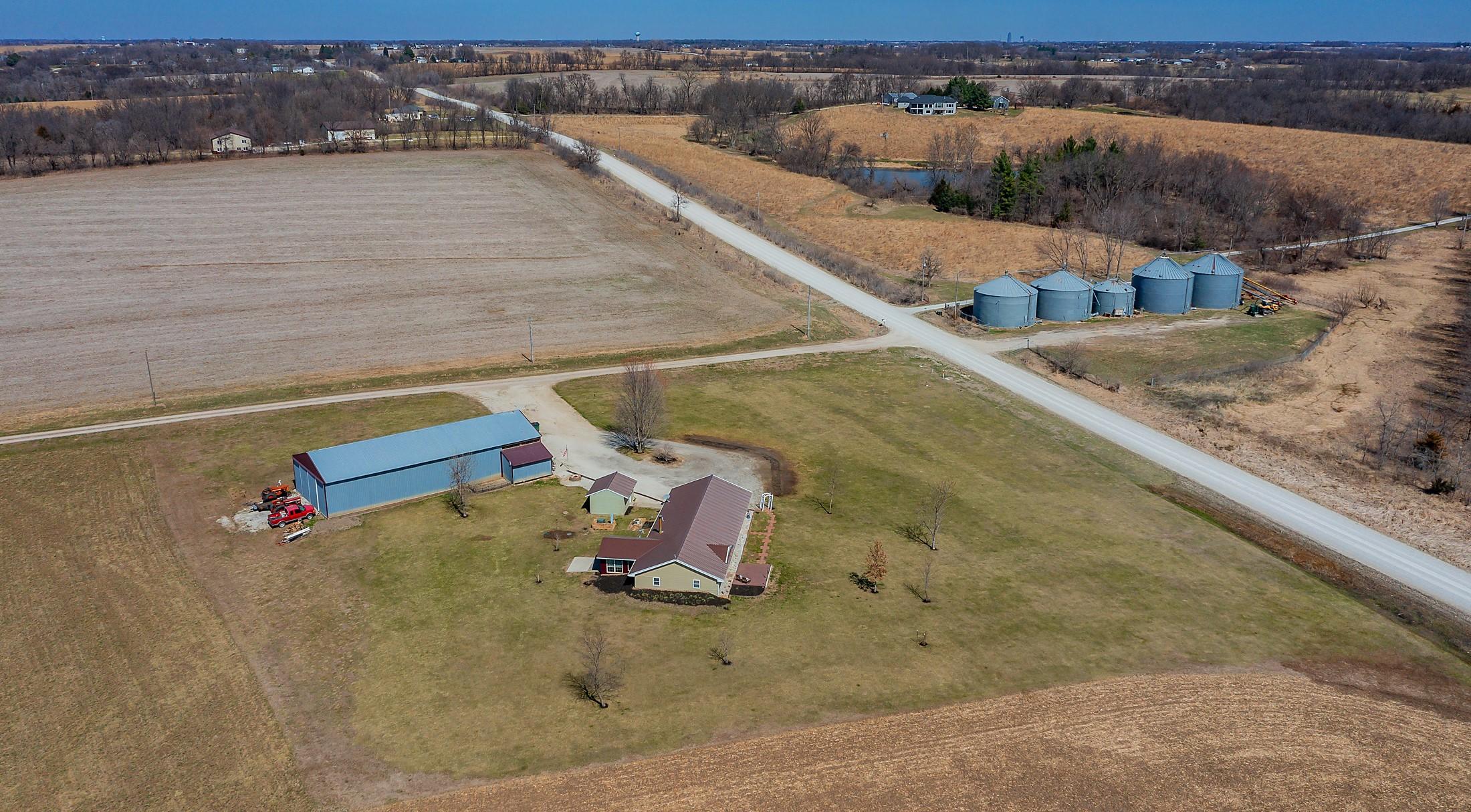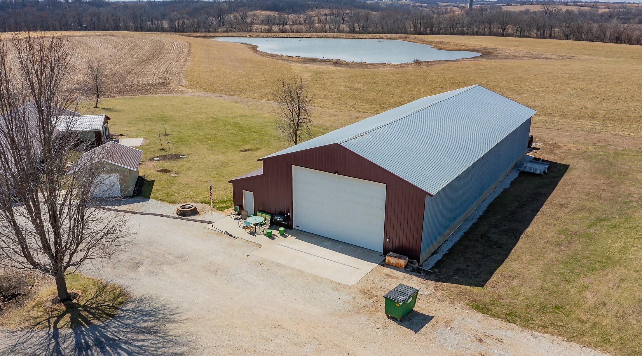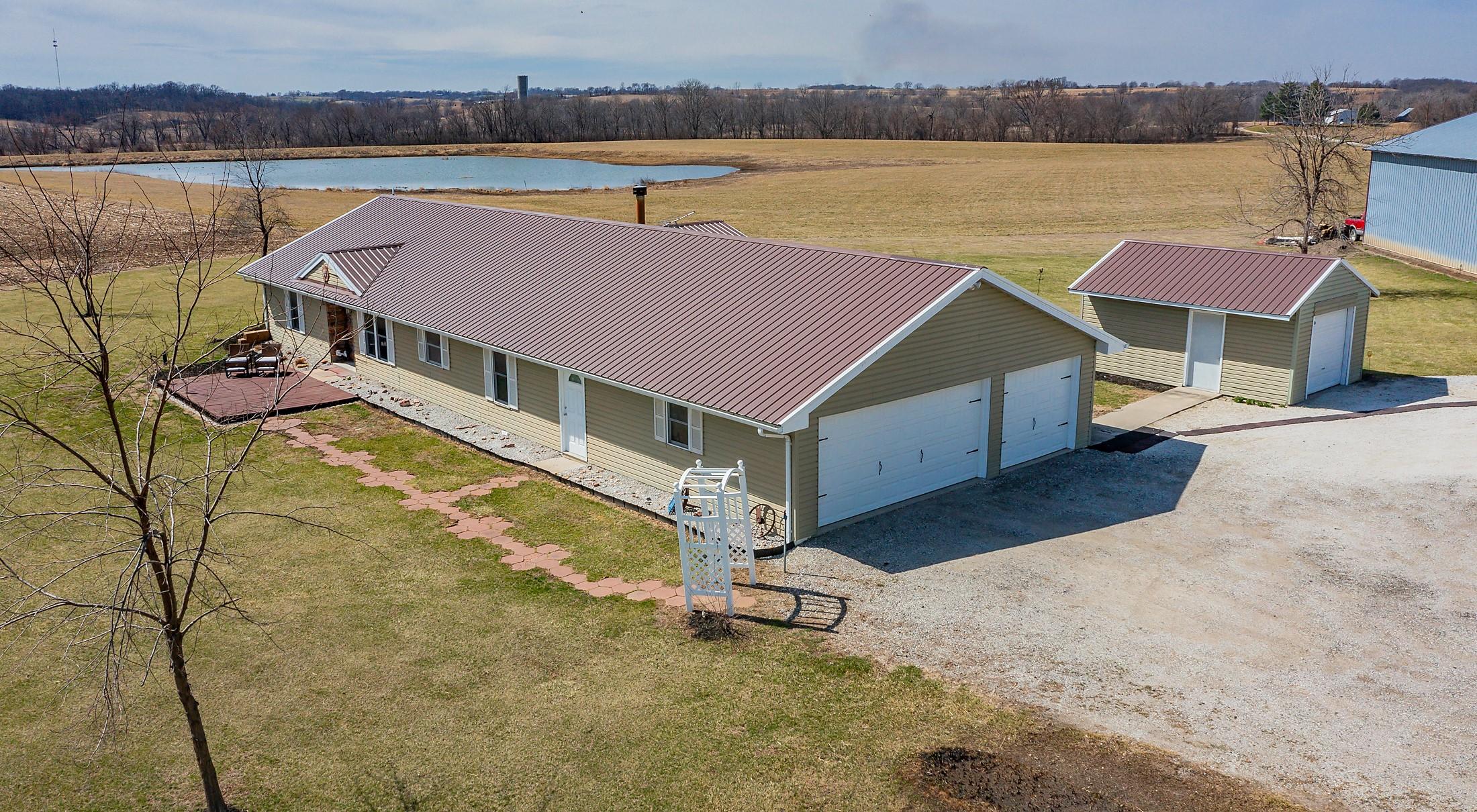 Acreage with approx 7 acres of land backing to the Great Western Bike Trail just south of Cumming (with approx 4 acres tillable if desired). Built in 2007, this thoughtfully constructed 3-bedroom, 2-bath ranch offers true easy living with exceptional durability and efficiency. Featuring 12-inch concrete walls with foam insulation, the home was designed for strength and long-term performance. Radiant in-floor heat runs throughout, providing consistent comfort, complemented by a high-efficiency wood-burning fireplace for added warmth and ambiance. Bonus 2 season sunroom facing west with a pond view. The open floor plan includes alderwood soft-close cabinetry, updated slate appliances, breakfast bar seating, dedicated dining space, and a primary suite with walk-in closet and laundry access. What youll also love? A 40x100 out-building includes an office and bathroom, with radiant floor heat in half the building. This amazing out-building can accommodate a business, motorhomes, tractors, full gym, landscaping vehicles/equipment or endless possibilities! The homes attached 3-car garage plus an insulated 1-car detached garage complete this exceptional acreage! Only a 15 min drive to Mills Civic Pkwy, come work, live and play (bike!) just beyond the Cumming exit on I35 - but with the privacy and space of an acreage!