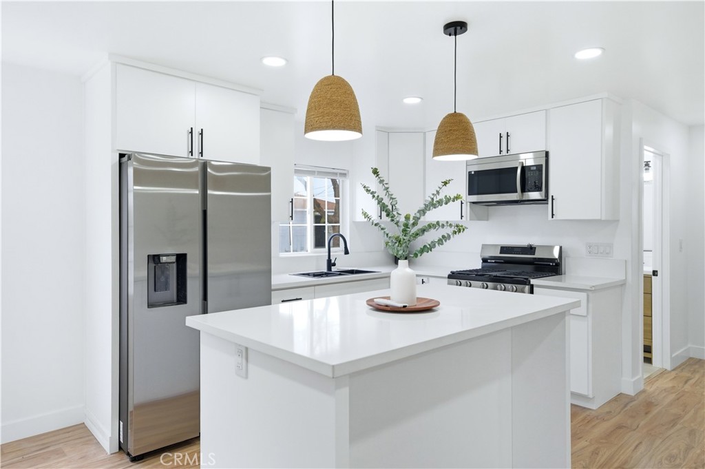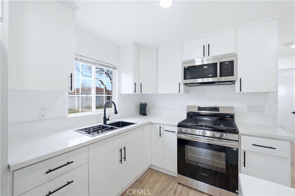 Beautifully remodeled 2 bedroom / 1 bathroom, corner-lot home offering modern upgrades, flexible living space, and a move-in ready experience. This updated home features new flooring, fresh interior and exterior paint, and a bright, open feel throughout. The remodeled kitchen is designed for both style and function, opening to the main living area for seamless everyday living and entertaining. Bedrooms are comfortably sized with clean finishes, mirrored closet doors, and updated lighting. The fully remodeled hall bathroom showcases contemporary tile work, a sleek vanity, matte black fixtures, and a tub with built-in niche and window for natural light. Additional upgrades include a new roof, and an energy-efficient ductless mini-split system for heating and cooling. Low-maintenance backyard ideal for outdoor seating, pets, or light gardening. The property also includes a one-car attached garage with laundry hookups. Located near schools, shopping, dining, and major freeways, this home is ideal for buyers seeking a turnkey property with modern upgrades and long-term potential. Potential down payment assistance programs may be available; buyers to verify eligibility.