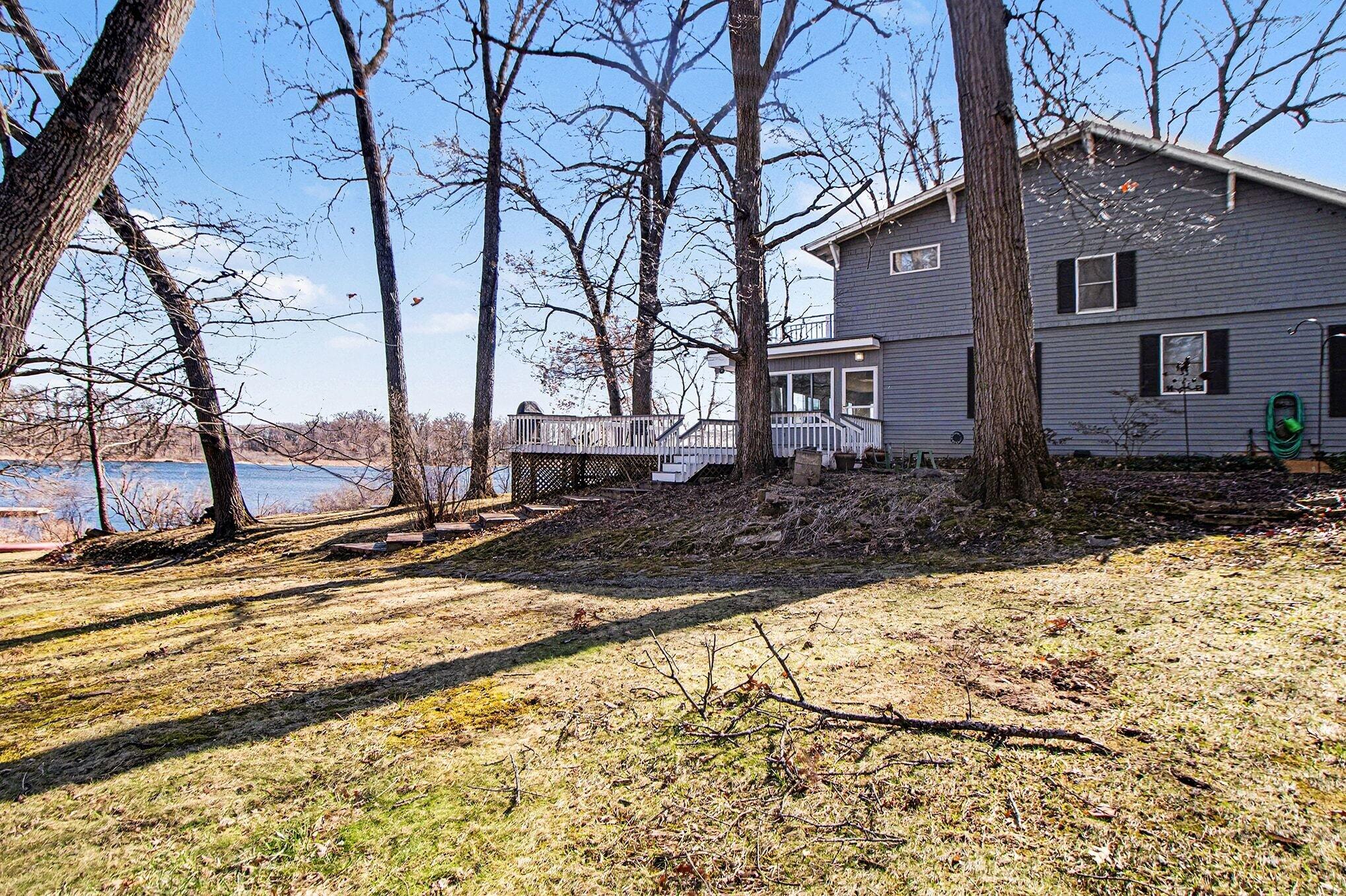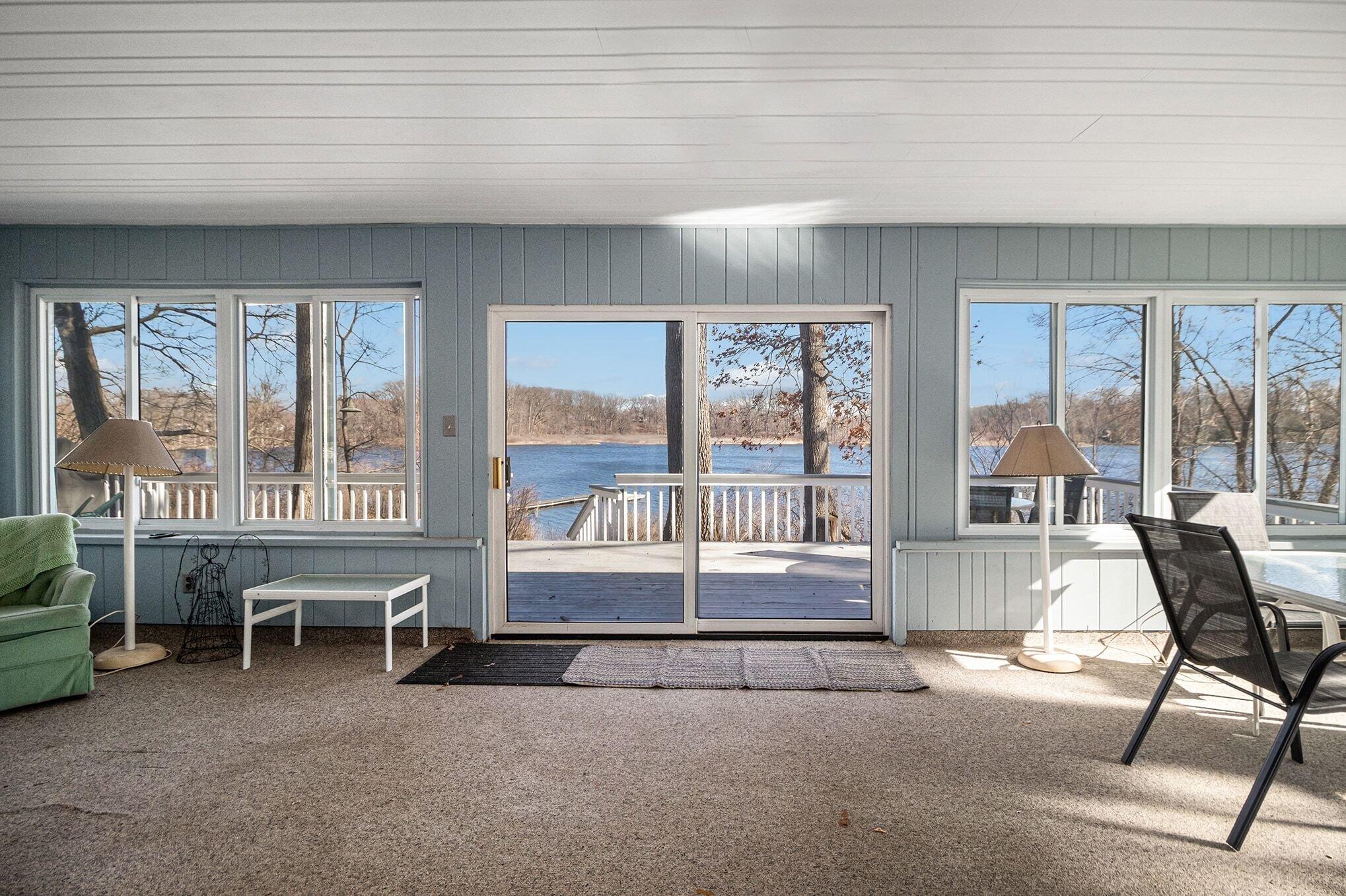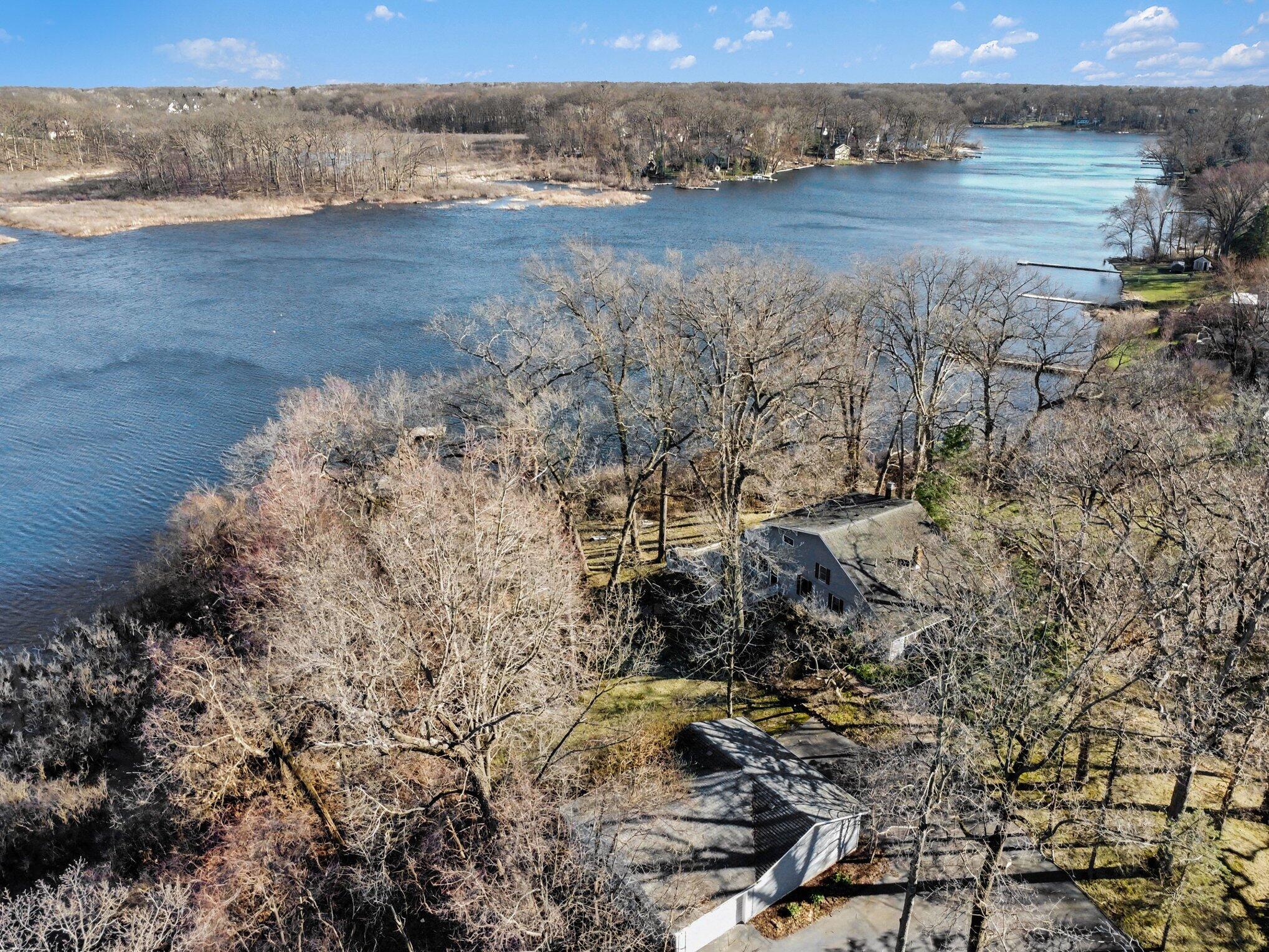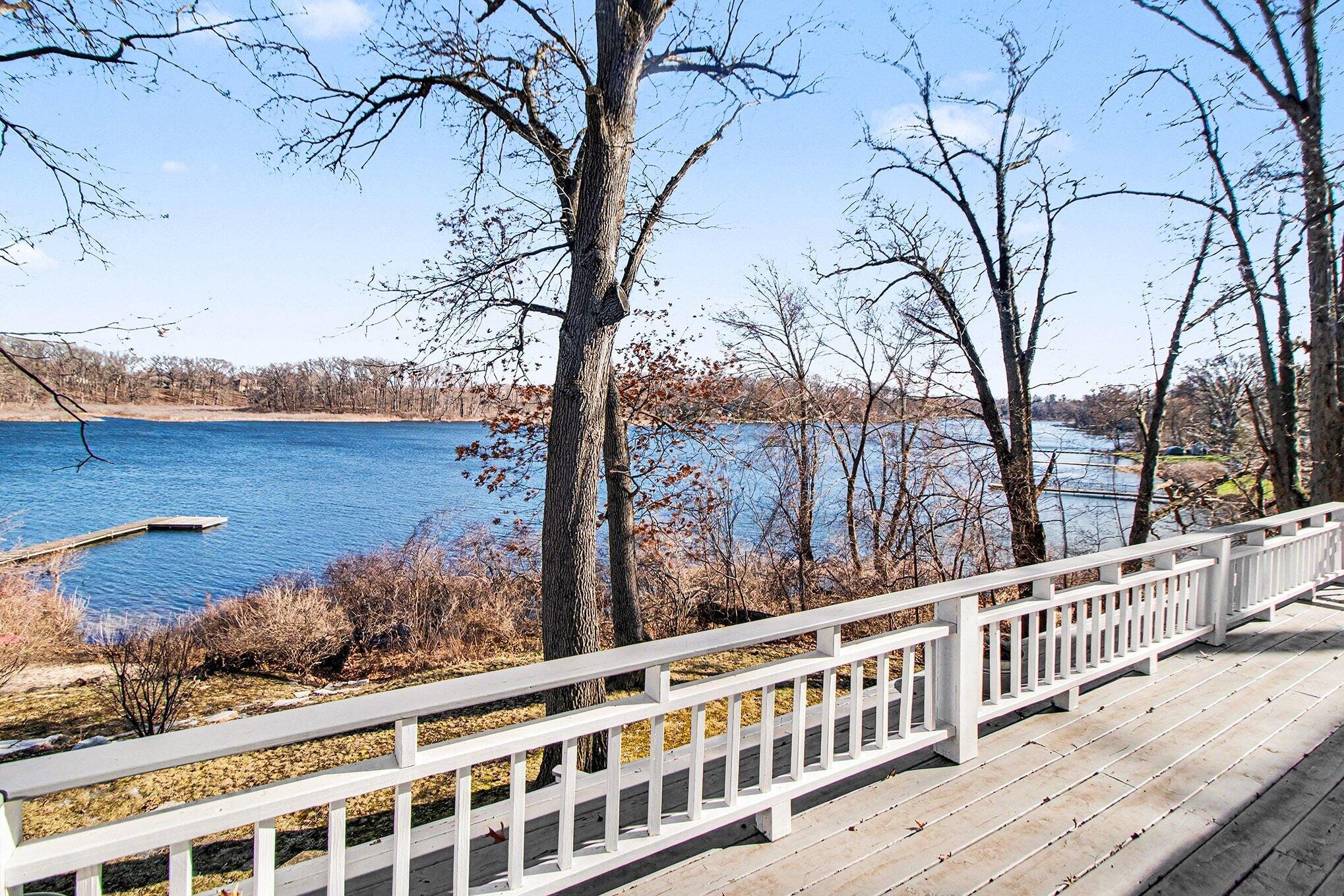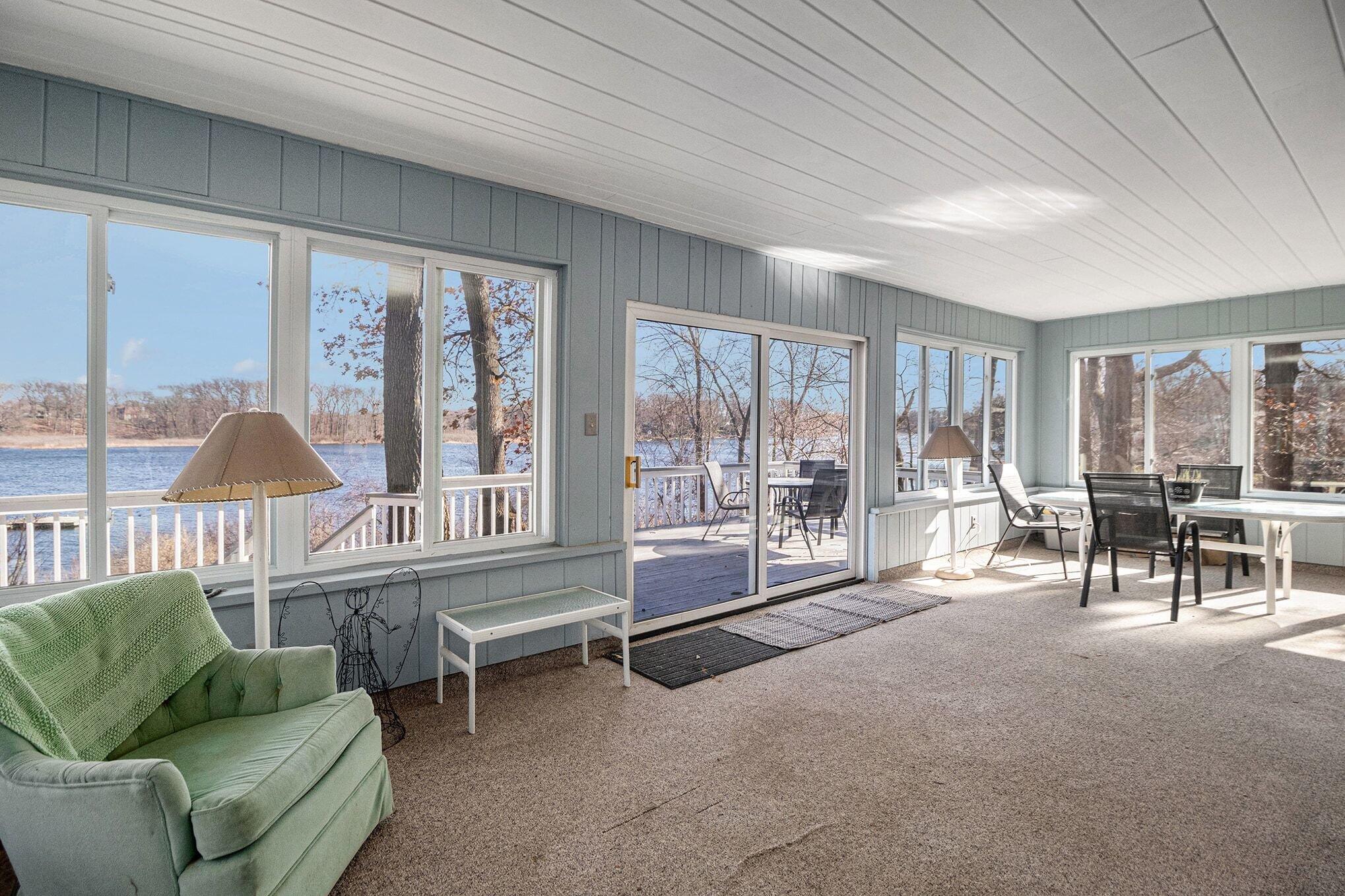 Wake up to breathtaking sunrises and unwind with stunning sunsets in this inviting lakefront home on Long Lake, with access to Canada Lake. Whether you enjoy boating, fishing, swimming, or simply relaxing by the water, this 1.89 shaded acre property offers the lake lifestyle you've been waiting for. Inside, the home features beautiful solid oak trim throughout and picturesque lake views from many rooms. The kitchen offers a convenient pass-through to the dining room, while the living area flows into a bright enclosed porch--perfect for enjoying peaceful mornings or evening sunsets overlooking the water. The main floor also includes a home office, 3/4 bath, and laundry for added convenience. Upstairs you'll find three bedrooms, including a spacious primary bedroom with a large closet and patio doors leading to a private upper balcony with incredible lake views. Two additional bedrooms, a full bathroom, and extra attic storage complete the upper level. A dry basement provides excellent storage space. Outside, enjoy a detached 3.5-car garage, charming limestone walkway, and your own private dock--ideal for summer days on the water. Come experience lake living at its best--schedule your showing today!