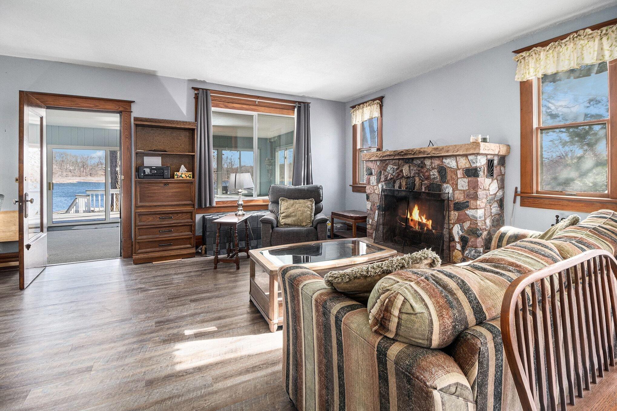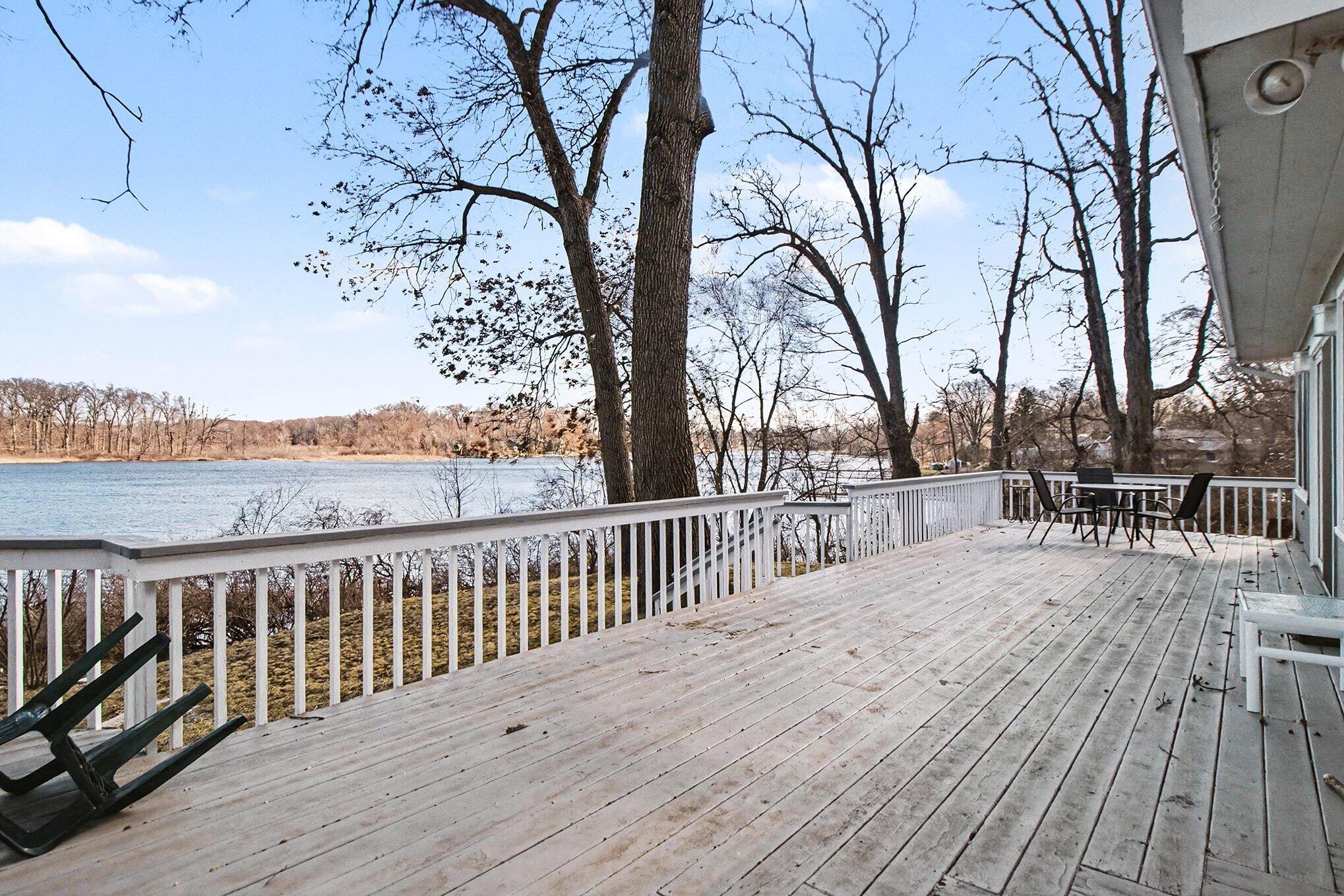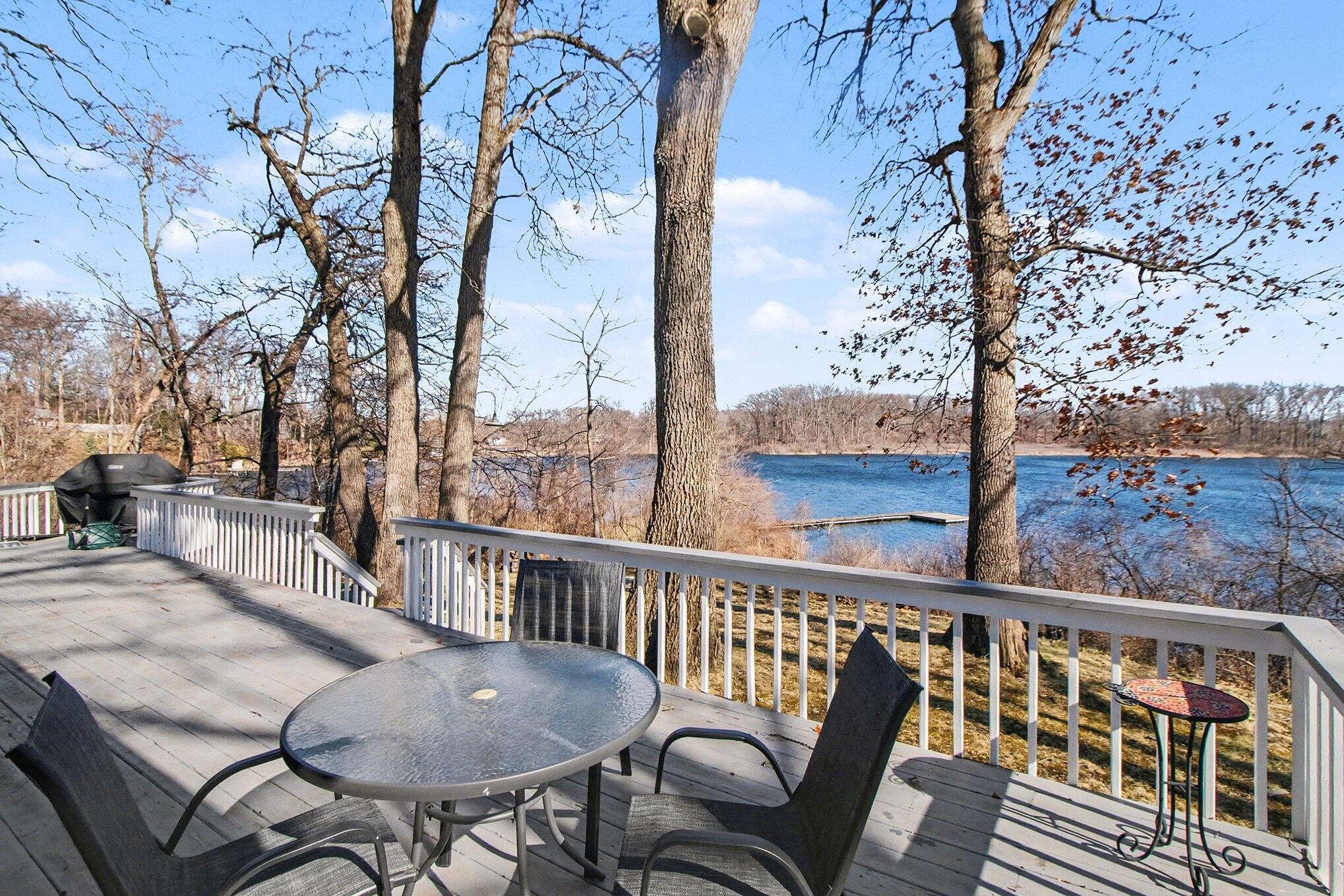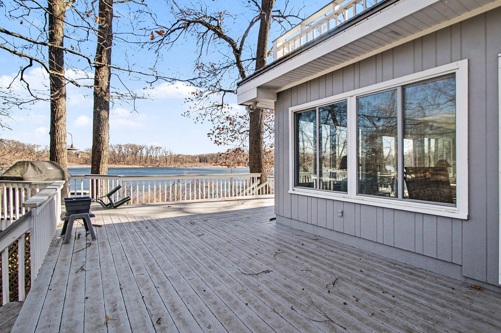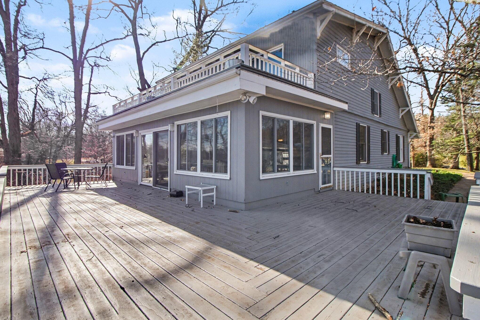 Wake up to breathtaking sunrises and unwind with stunning sunsets in this inviting lakefront home on Long Lake, with access to Canada Lake. Whether you enjoy boating, fishing, swimming, or simply relaxing by the water, this 1.89 shaded acre property offers the lake lifestyle you've been waiting for. Inside, the home features beautiful solid oak trim throughout and picturesque lake views from many rooms. The kitchen offers a convenient pass-through to the dining room, while the living area flows into a bright enclosed porch--perfect for enjoying peaceful mornings or evening sunsets overlooking the water. The main floor also includes a home office, 3/4 bath, and laundry for added convenience. Upstairs you'll find three bedrooms, including a spacious primary bedroom with a large closet and patio doors leading to a private upper balcony with incredible lake views. Two additional bedrooms, a full bathroom, and extra attic storage complete the upper level. A dry basement provides excellent storage space. Outside, enjoy a detached 3.5-car garage, charming limestone walkway, and your own private dock--ideal for summer days on the water. Come experience lake living at its best--schedule your showing today!