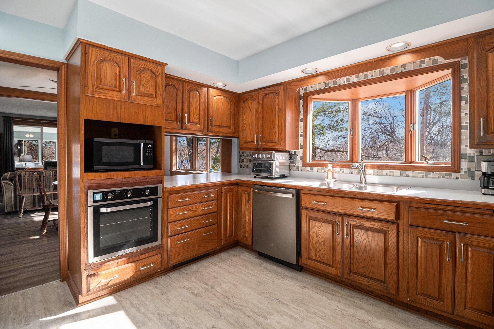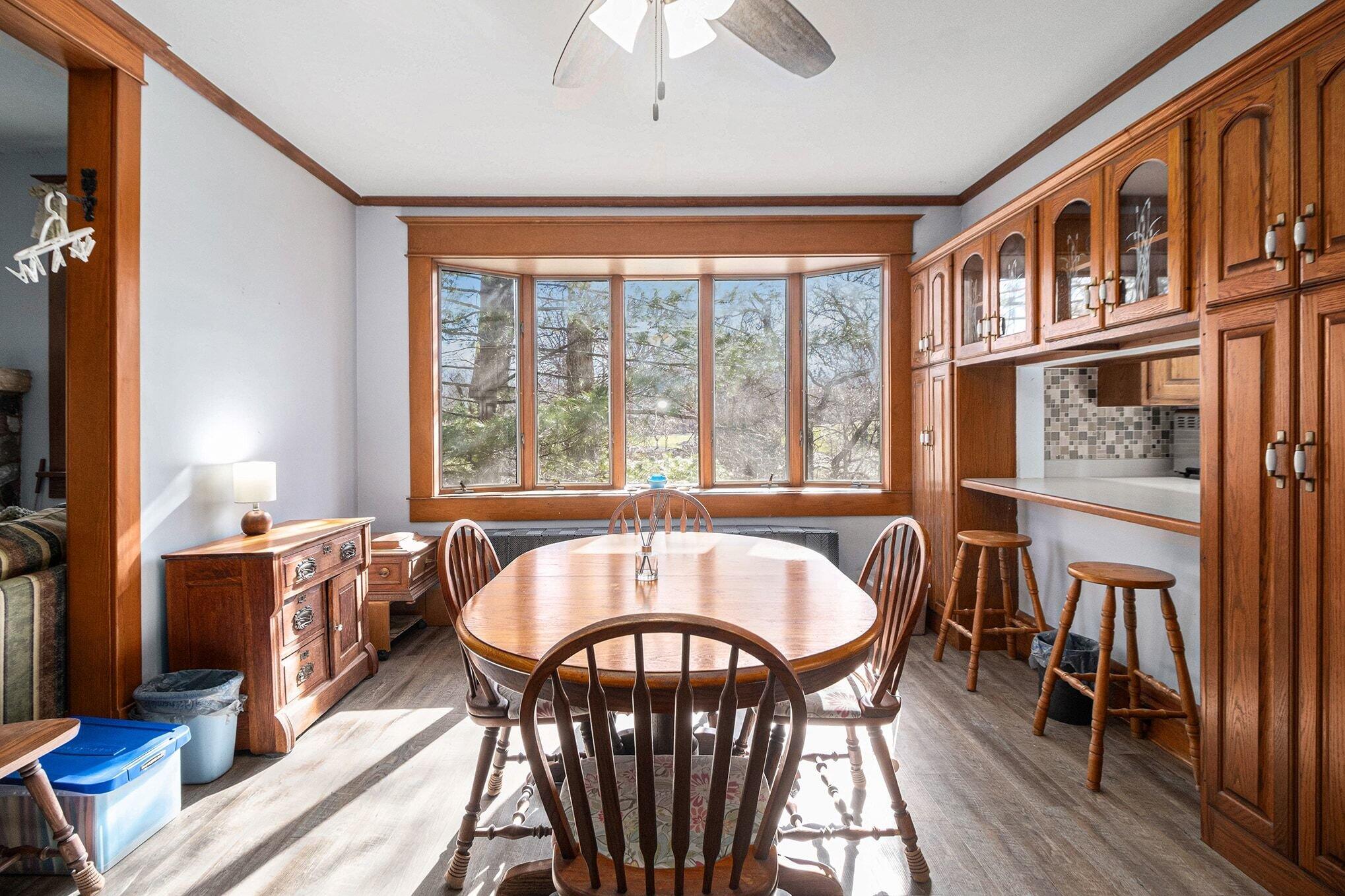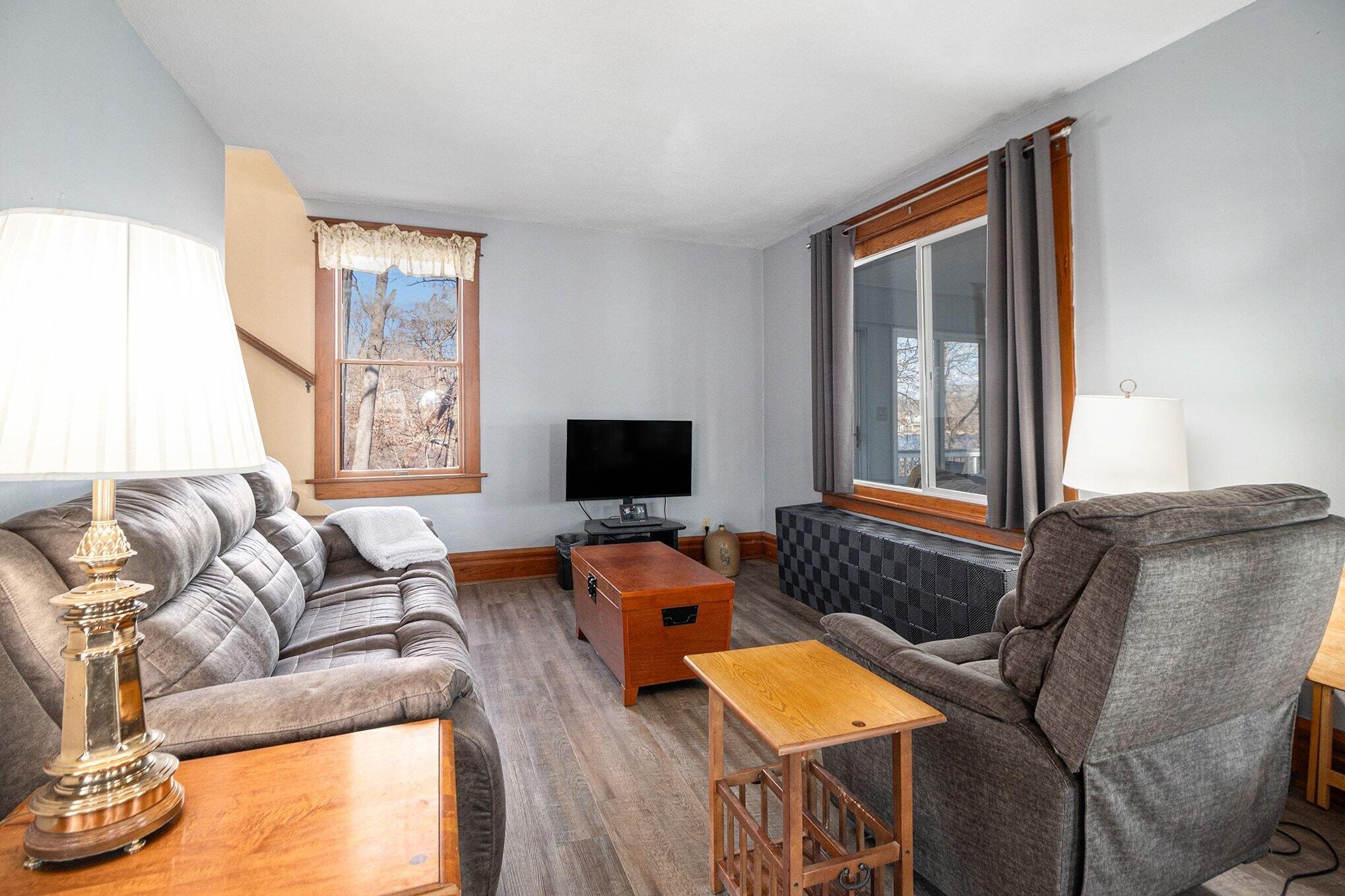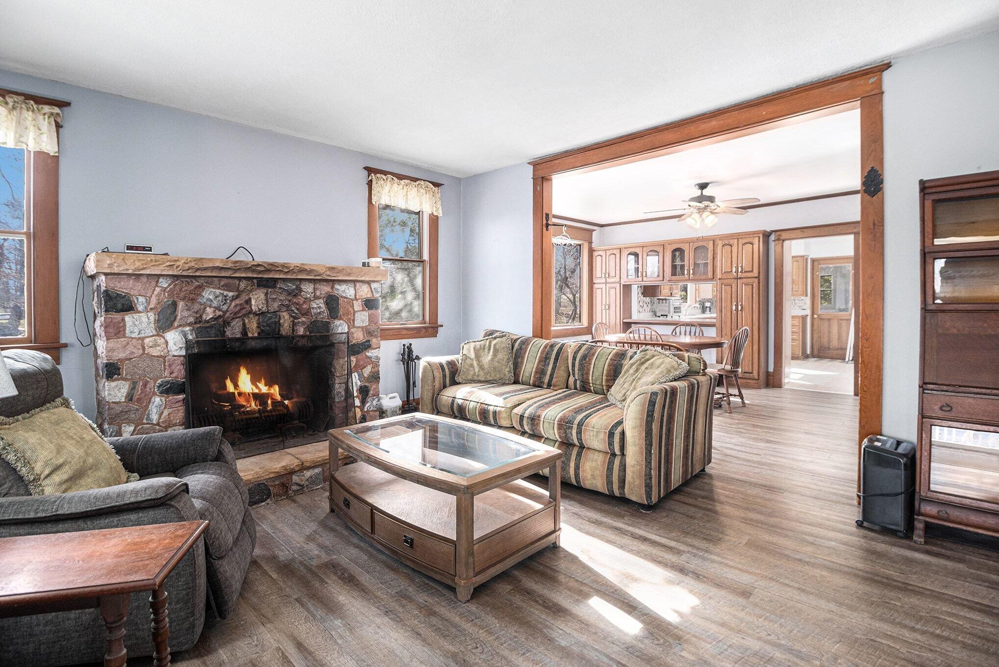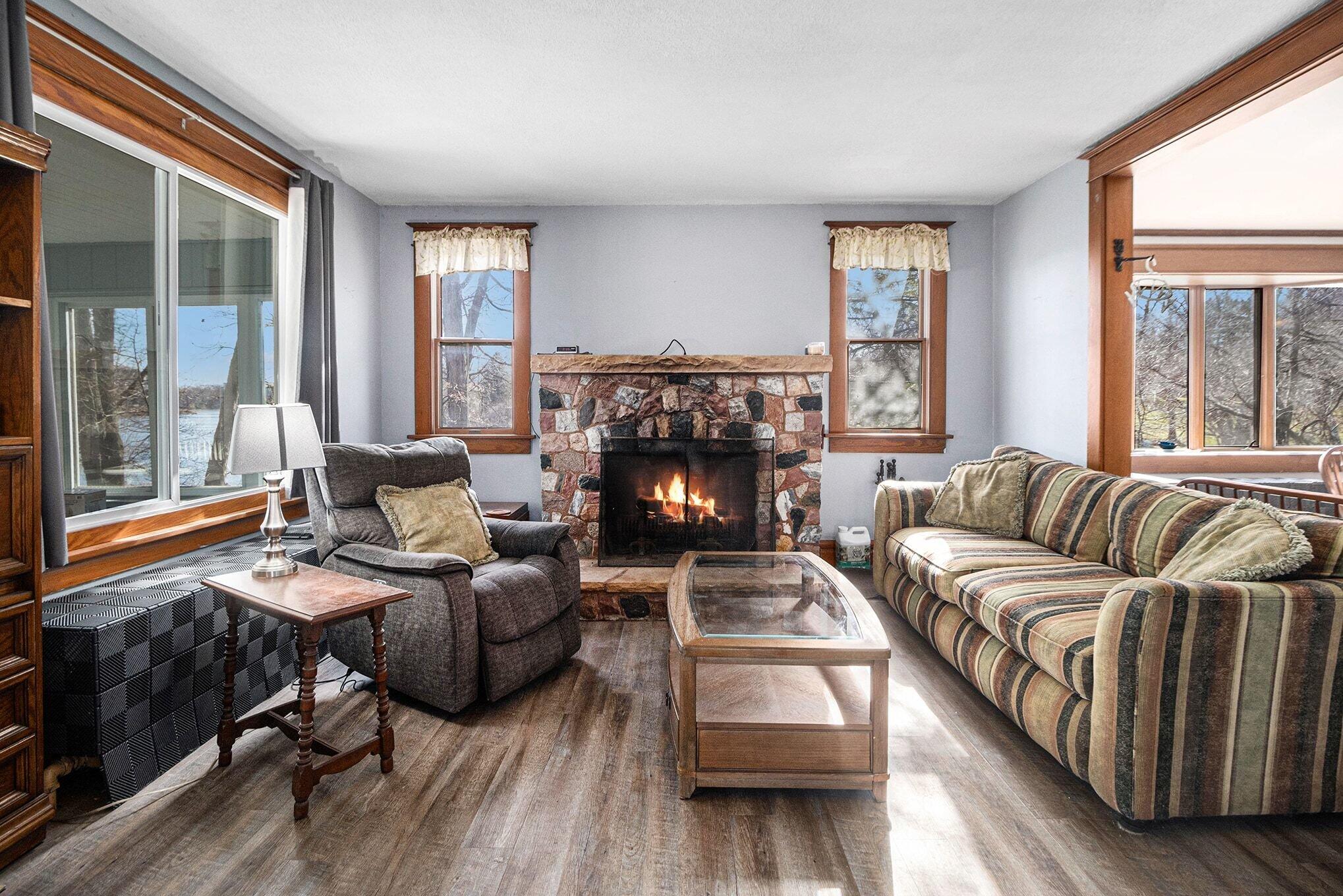 Wake up to breathtaking sunrises and unwind with stunning sunsets in this inviting lakefront home on Long Lake, with access to Canada Lake. Whether you enjoy boating, fishing, swimming, or simply relaxing by the water, this 1.89 shaded acre property offers the lake lifestyle you've been waiting for. Inside, the home features beautiful solid oak trim throughout and picturesque lake views from many rooms. The kitchen offers a convenient pass-through to the dining room, while the living area flows into a bright enclosed porch--perfect for enjoying peaceful mornings or evening sunsets overlooking the water. The main floor also includes a home office, 3/4 bath, and laundry for added convenience. Upstairs you'll find three bedrooms, including a spacious primary bedroom with a large closet and patio doors leading to a private upper balcony with incredible lake views. Two additional bedrooms, a full bathroom, and extra attic storage complete the upper level. A dry basement provides excellent storage space. Outside, enjoy a detached 3.5-car garage, charming limestone walkway, and your own private dock--ideal for summer days on the water. Come experience lake living at its best--schedule your showing today!