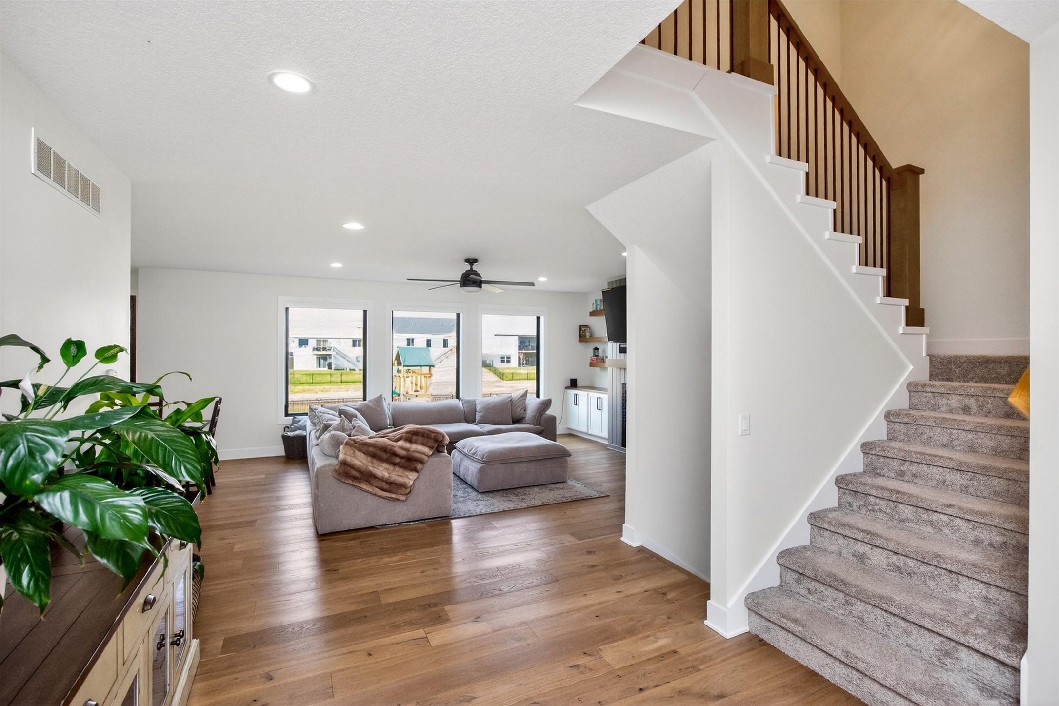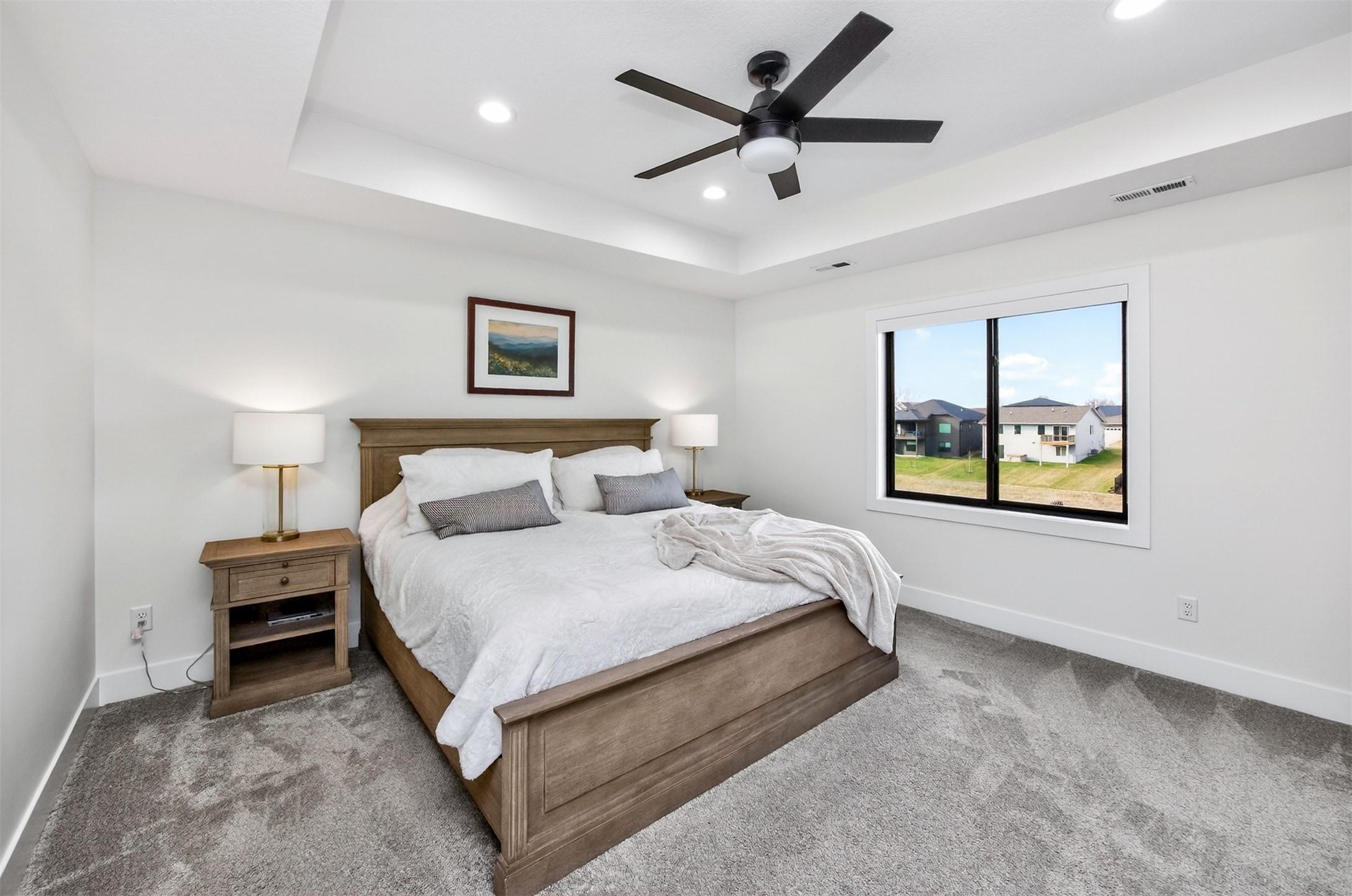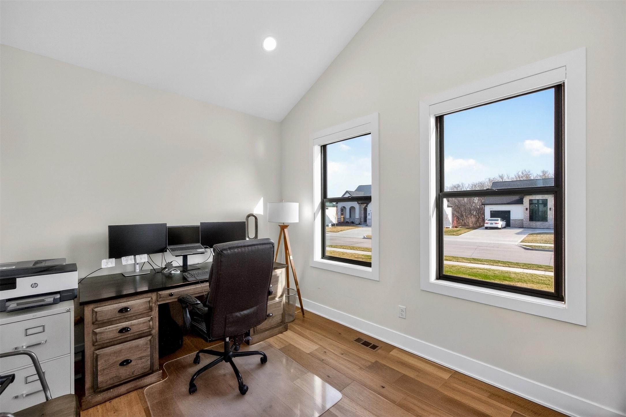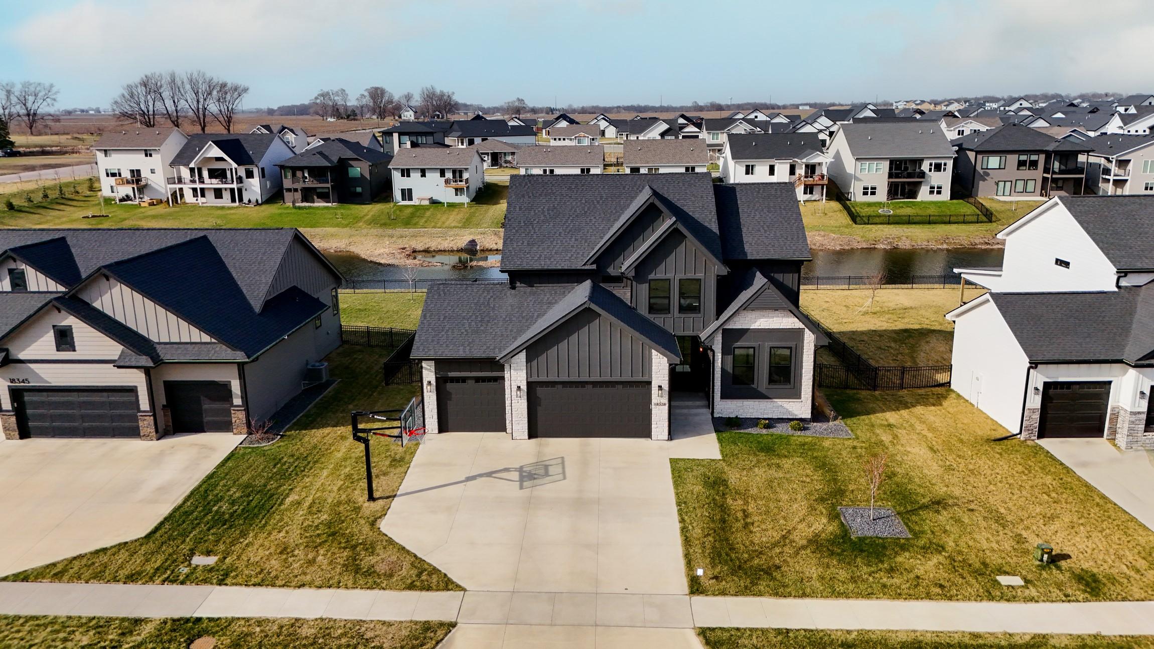 Wake up to peaceful pond views and end your evenings on the covered deck, where the sound of the fountain sets the tone for everyday living. This move-in ready 2-story blends elevated design with the kind of functionality todays buyers are looking for - without the wait or decision fatigue of building. The main level invites connection, with a chefs kitchen at the center, opening to a warm and inviting living space with statement fireplace, built-ins, and hardwood floors. A private office with French doors creates the perfect work-from-home setting, while the mudroom keeps daily life organized and out of sight. Upstairs, four spacious bedrooms offer room to grow, including a serene primary suite with tray ceiling, tile shower, and generous walk-in closet. Zoned HVAC ensures comfort across every level. The laundry room is conveniently located just off the primary closet with access to the hallway and additional bedrooms. The finished lower level is ready for entertaining or unwinding, featuring a family room, wet bar, 5th bedroom, and ? bath - ideal for guests or extended stays. Step outside to a fully fenced yard with irrigation, designed for both play and ease, all set against a beautiful water backdrop. With an insulated 3-car garage and a setting that feels like a retreat, this is a rare opportunity to step into a completed home in one of Clives most sought-after neighborhoods.