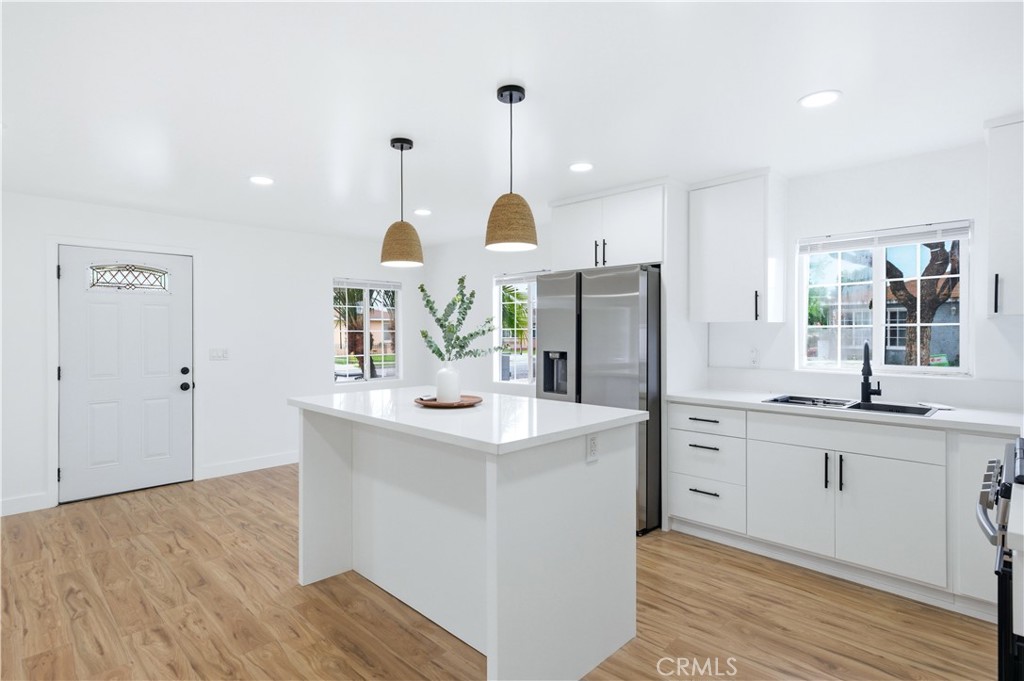 Beautifully remodeled 2 bedroom / 1 bathroom, corner-lot home offering modern upgrades, flexible living space, and a move-in ready experience. This updated home features new flooring, fresh interior and exterior paint, and a bright, open feel throughout. The remodeled kitchen is designed for both style and function, opening to the main living area for seamless everyday living and entertaining.