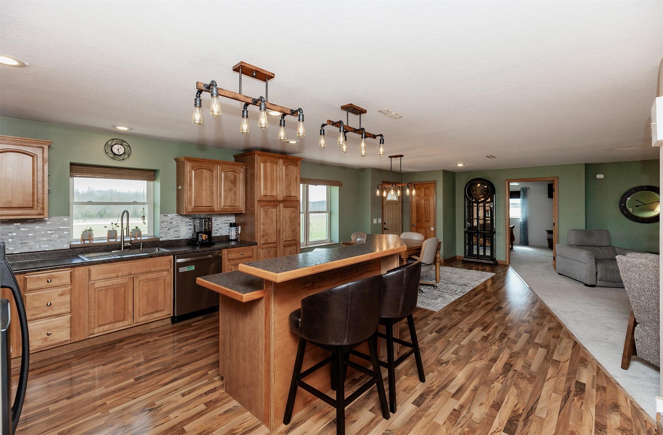 Acreage with approx 7 acres of land backing to the Great Western Bike Trail just south of Cumming (with approx 4 acres tillable if desired). Built in 2007, this thoughtfully constructed 3-bedroom, 2-bath ranch offers true easy living with exceptional durability and efficiency. Featuring 12-inch concrete walls with foam insulation, the home was designed for strength and long-term performance.