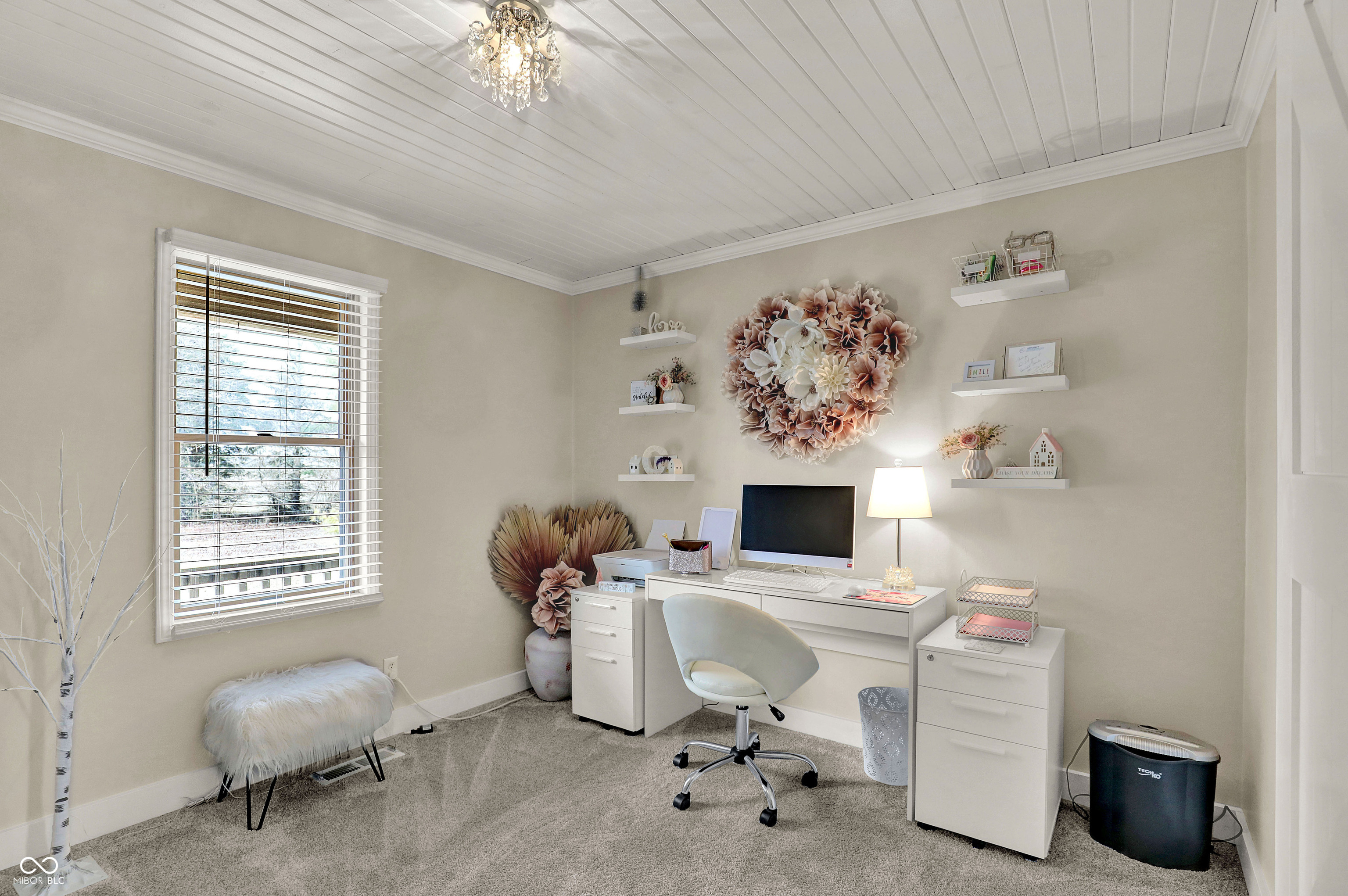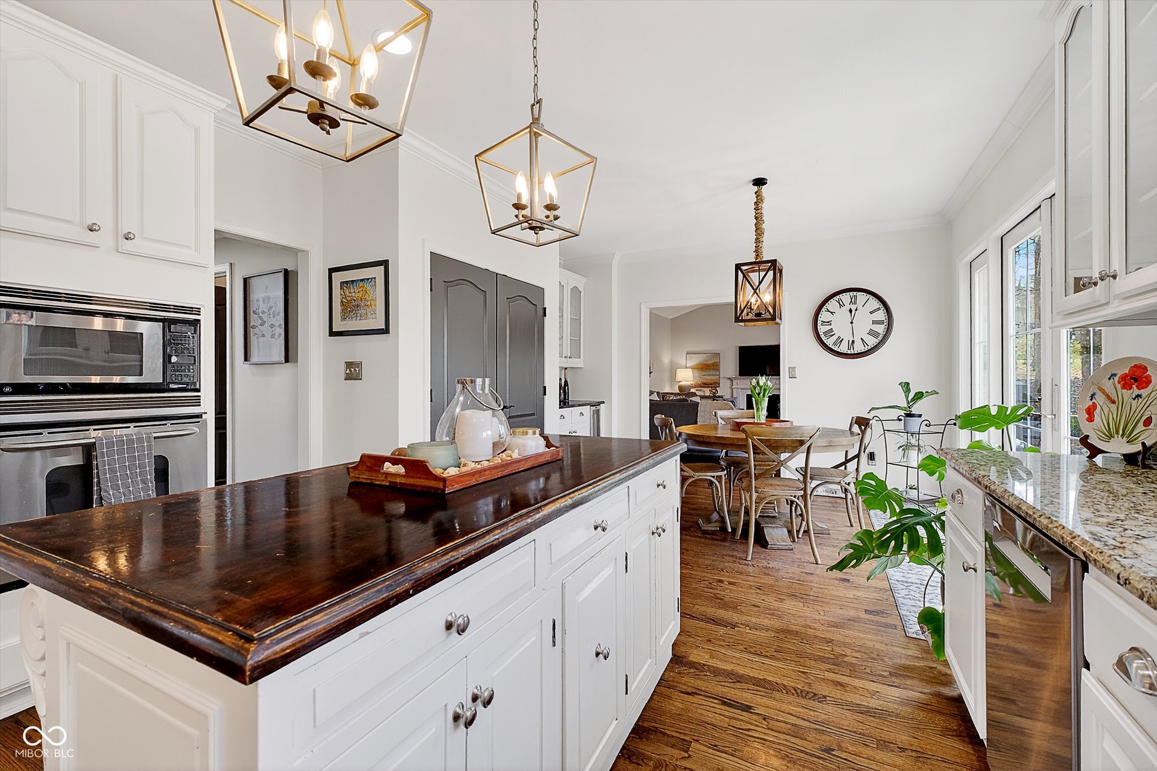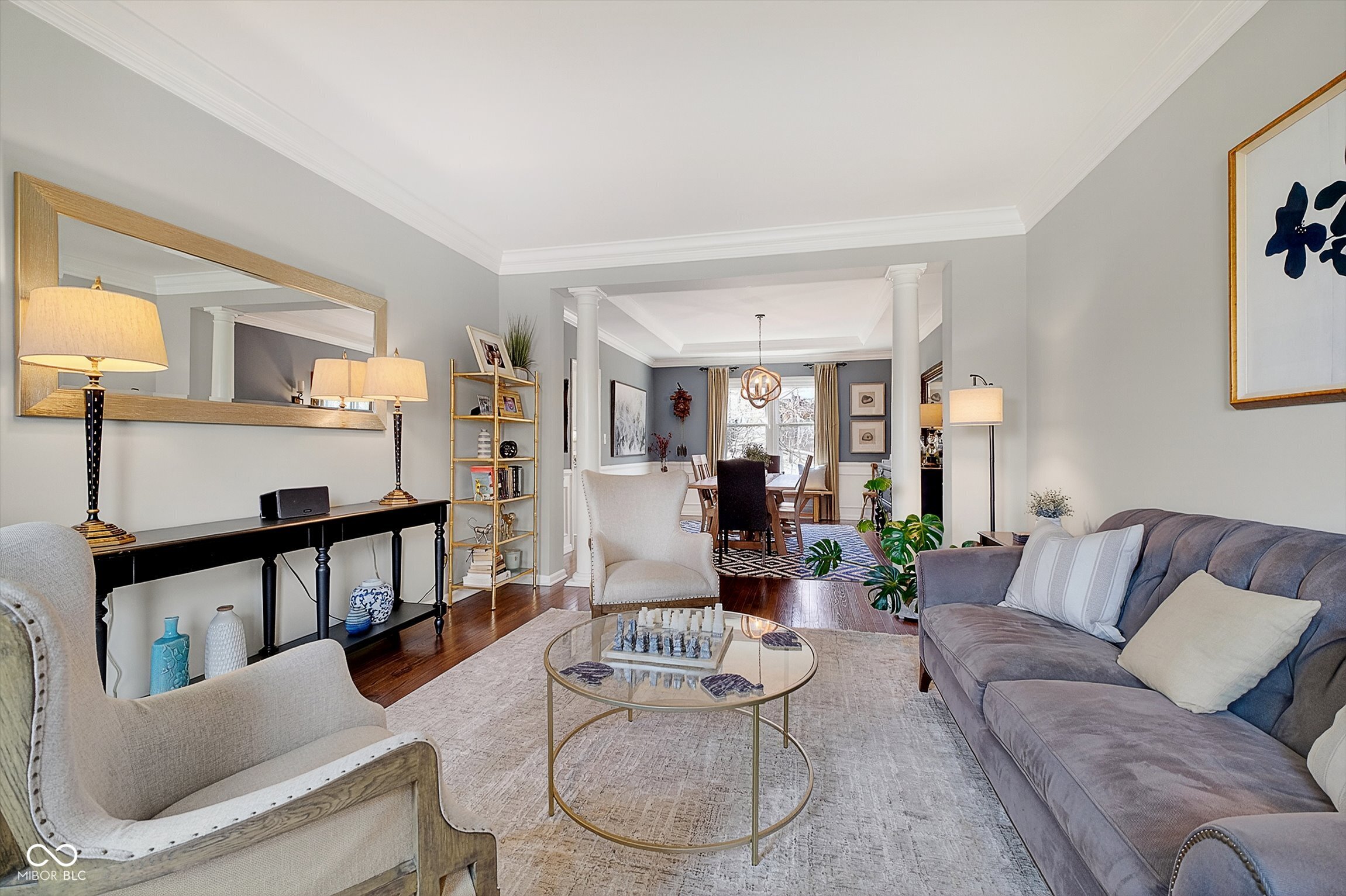 Timeless elegance meets modern comfort in this 4 bedroom, 3 1/2 bath home. You are greeted with elegant landscaping and stamped walkway that lead up to your stunning front door. A two-story foyer with hardwood stairs, black railing, and crown molding sets the tone, while the great room's cathedral ceiling and gas fireplace create a welcoming centerpiece. The formal living and dining rooms feature tray ceilings and custom moldings, perfect for entertaining. The kitchen is both stylish and functional, with white cabinetry, granite counters, stainless steel appliances, tile backsplash, a wood-topped island, pantry, and butler's pantry with wine fridge. A bright office with French doors, drop zone off the garage, and a large bonus room upstairs (ideal as a 5th bedroom) add versatility. The primary suite offers a cathedral ceiling, jetted garden tub, tiled shower, double sinks, recessed lighting, and a custom walk-in closet. Finished basement boasts a large family room, recreation area, wet bar, built-ins, surround sound, full bath, and ample storage. Outdoor spaces include a deck, stamped concrete patio, and serene wooded backyard.