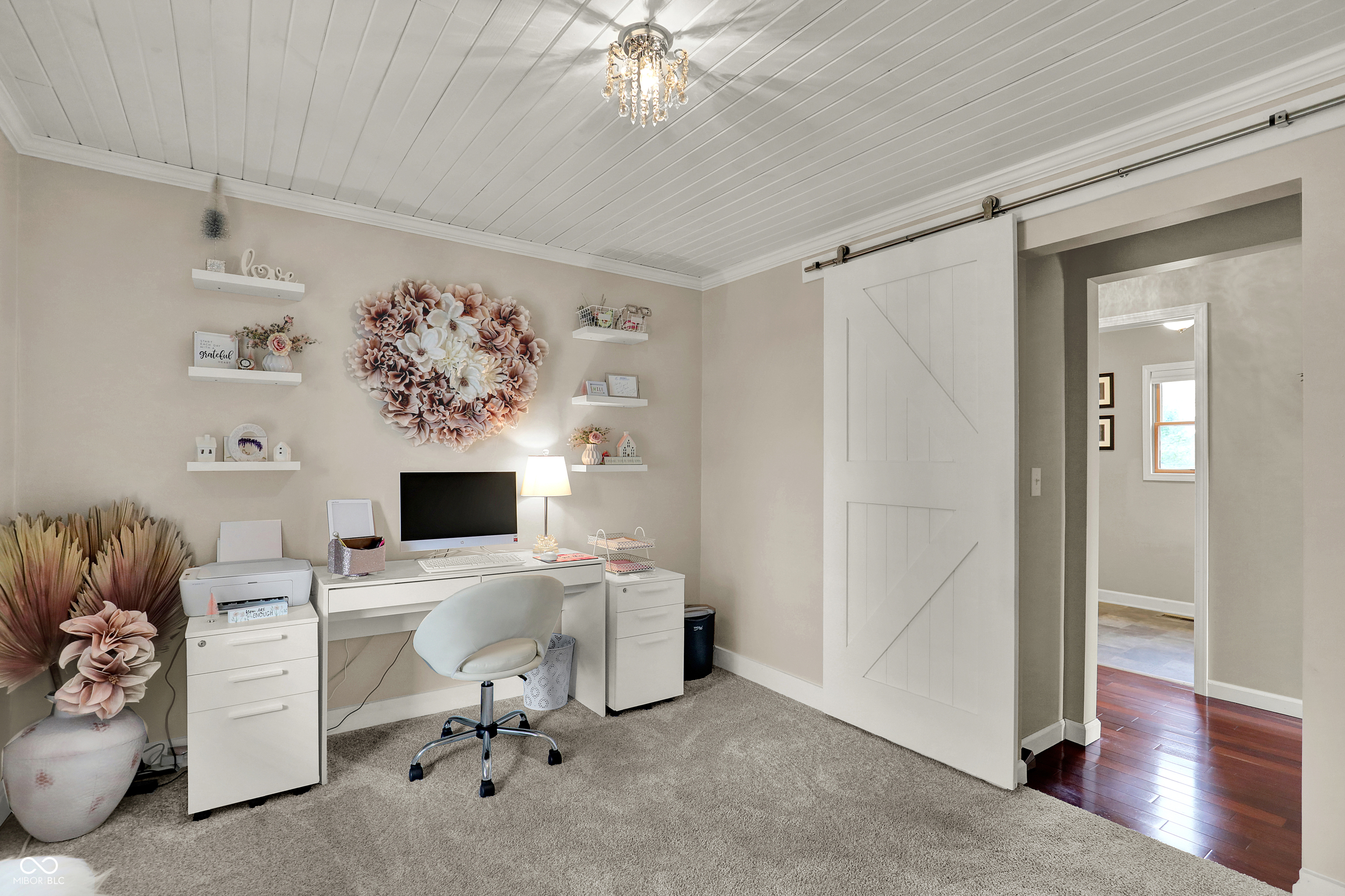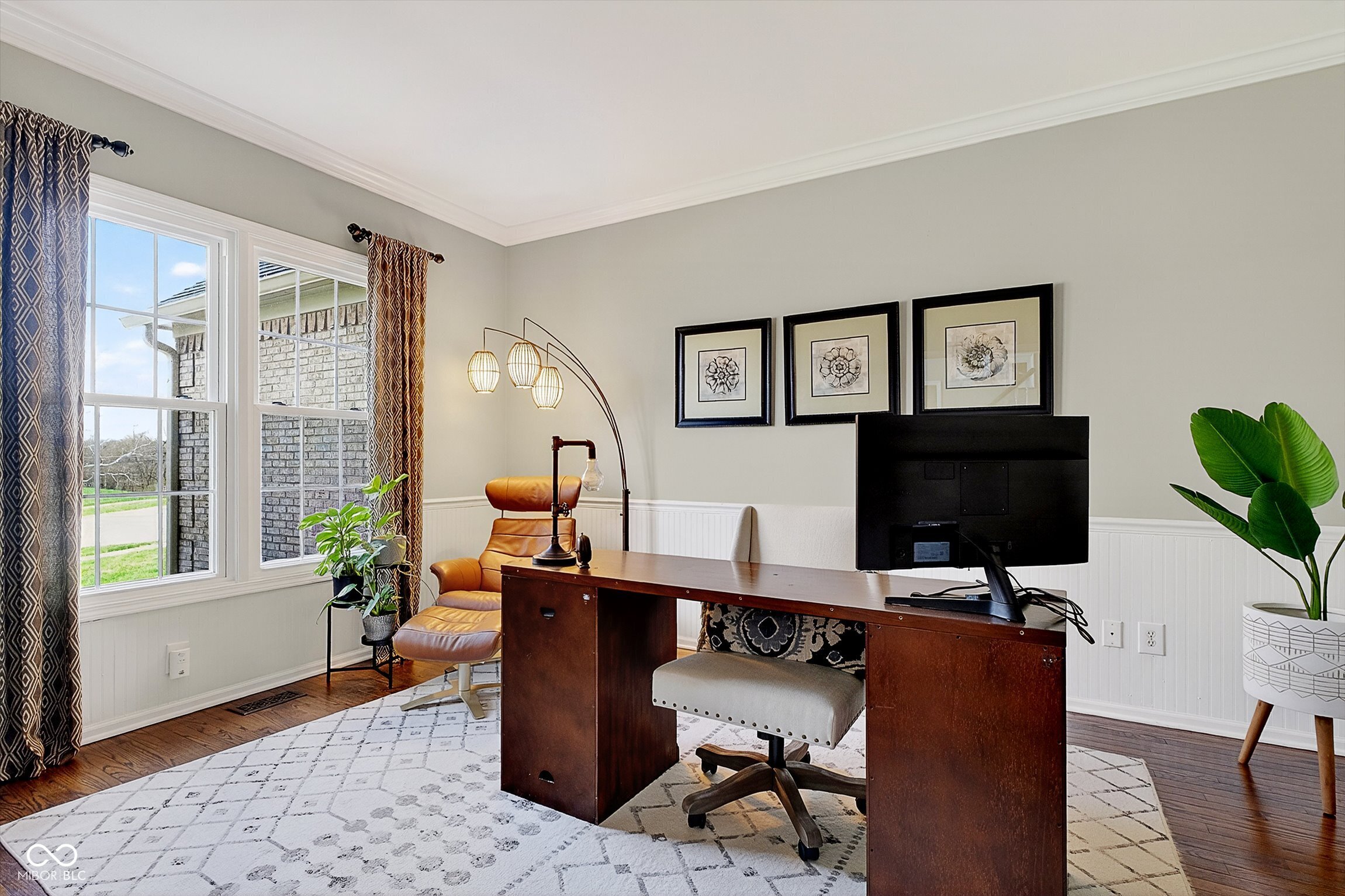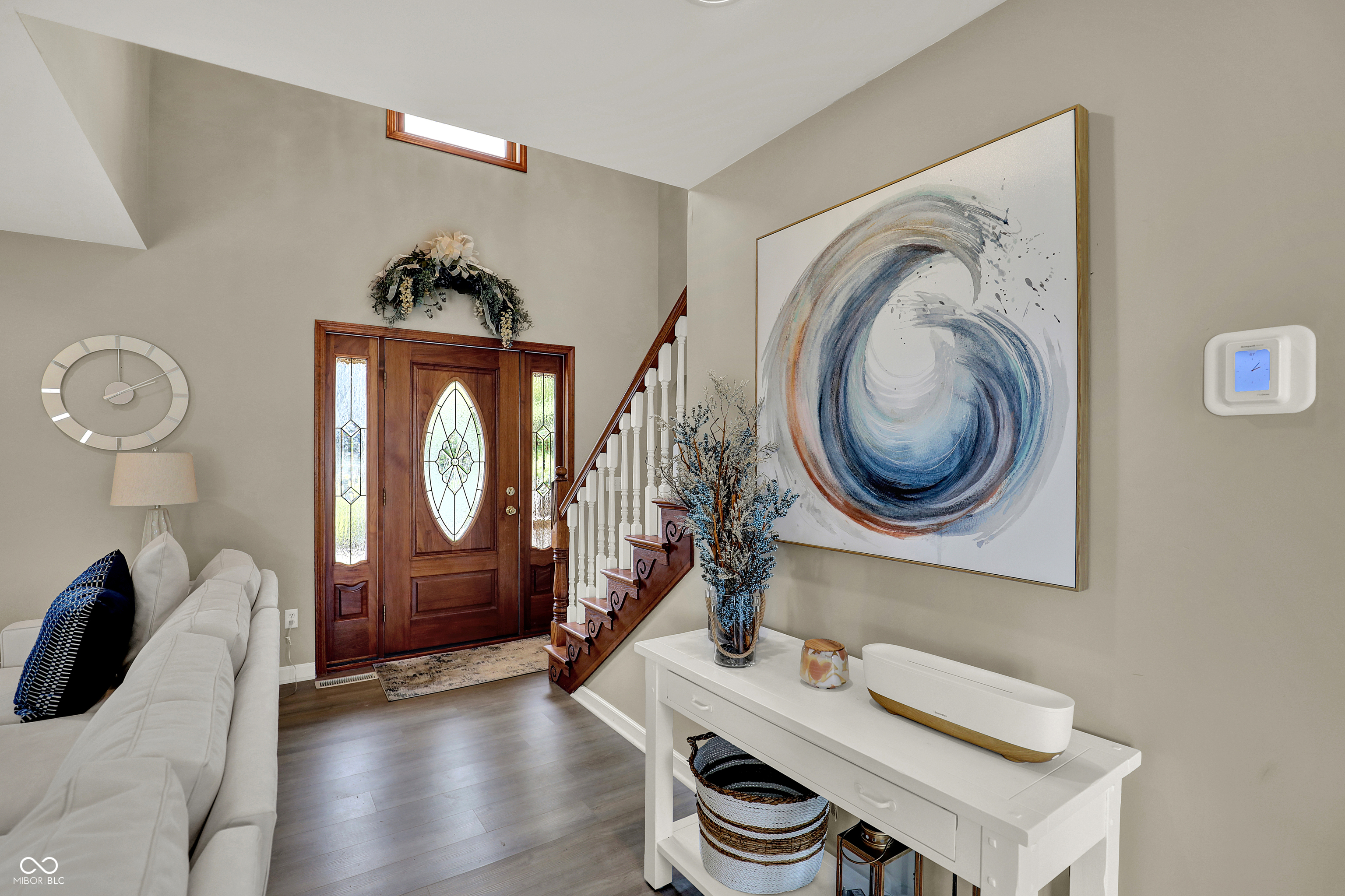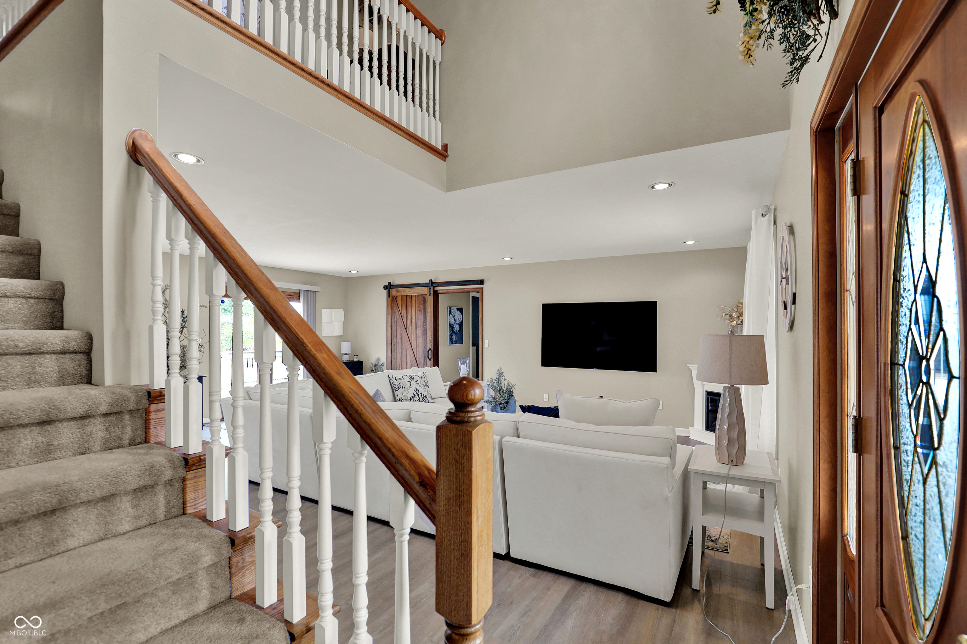 Timeless elegance meets modern comfort in this 4 bedroom, 3 1/2 bath home. You are greeted with elegant landscaping and stamped walkway that lead up to your stunning front door. A two-story foyer with hardwood stairs, black railing, and crown molding sets the tone, while the great room's cathedral ceiling and gas fireplace create a welcoming centerpiece.