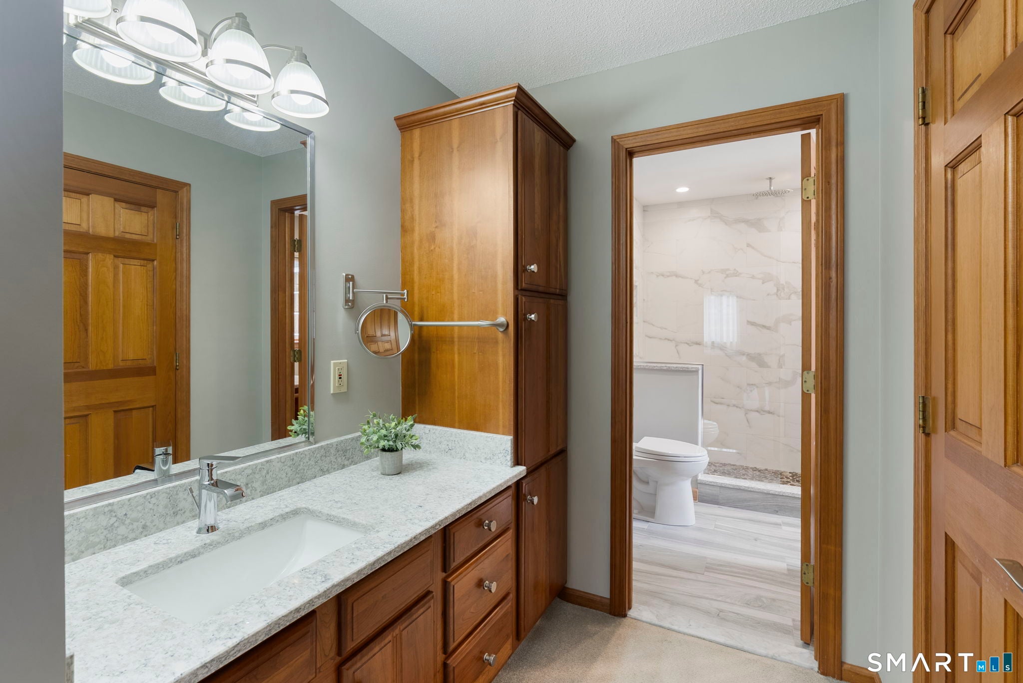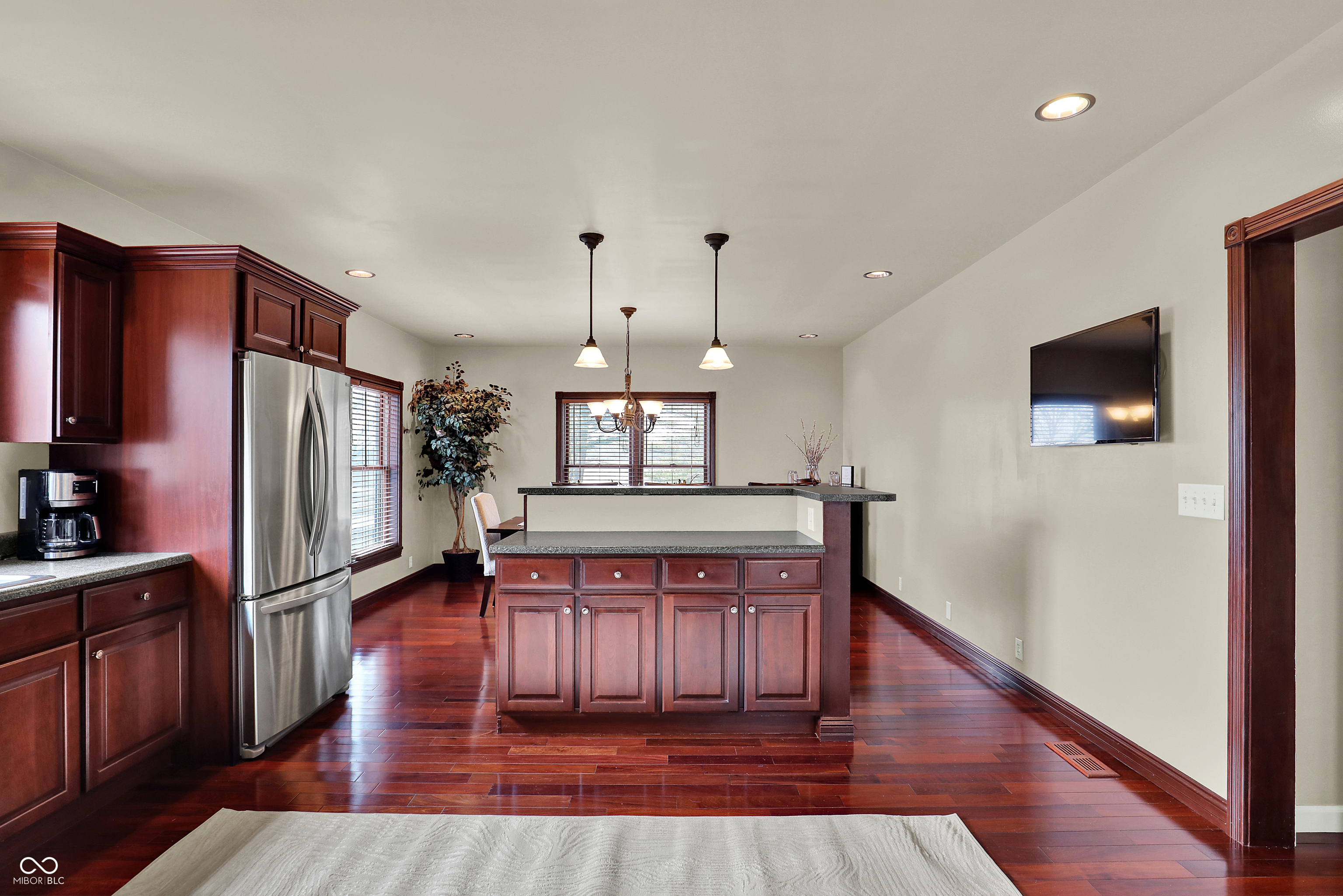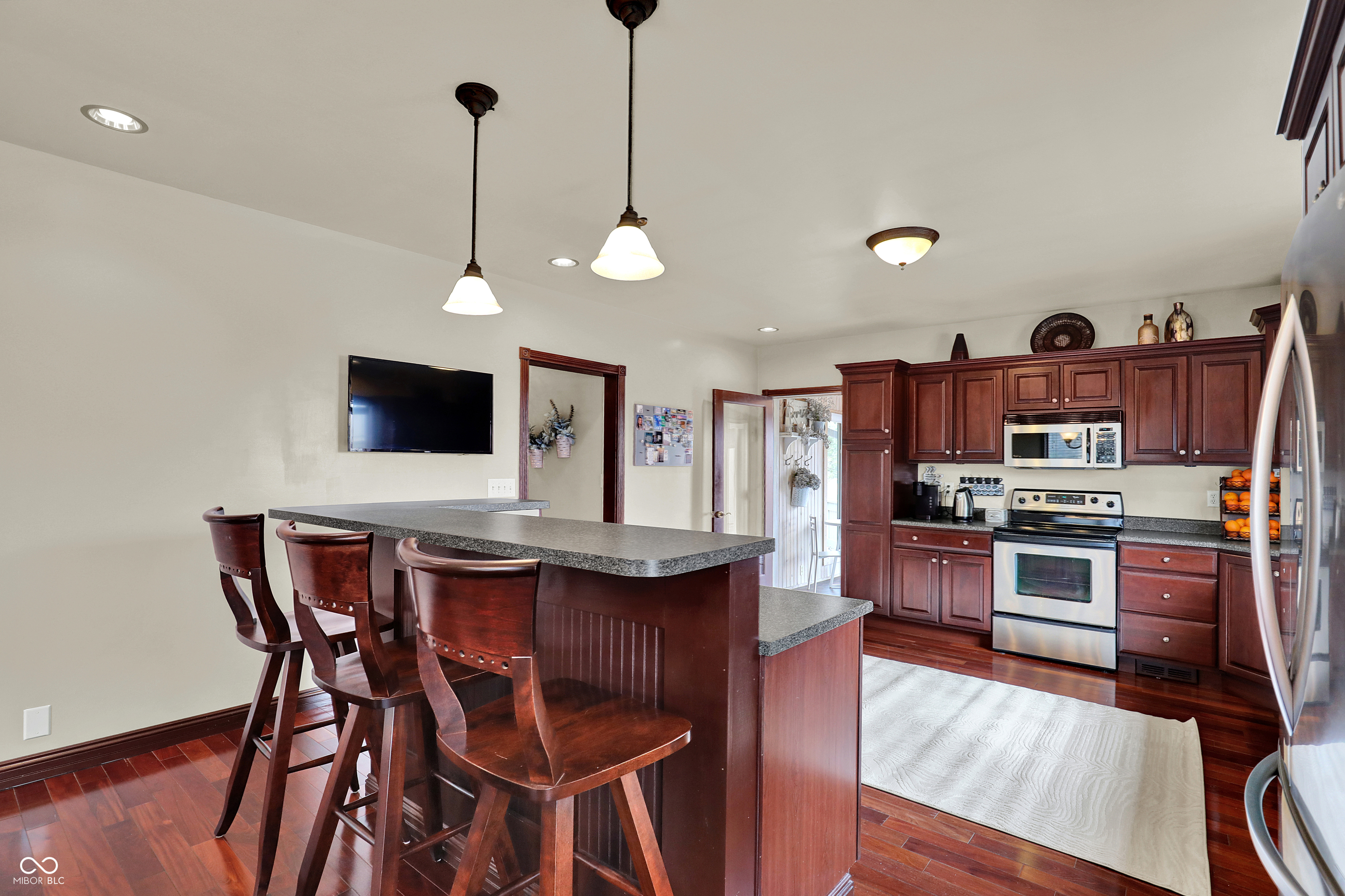 Exquisitely maintained and thoughtfully renovated, this distinguished Ranch residence in Berlin offers approximately 2,956 square feet of sophisticated living and entertaining space across two levels. The main level, encompassing 2,068 square feet, is highlighted by a completely remodeled and beautifully appointed kitchen featuring custom cherry cabinetry, granite countertops, and stainless steel appliances. The gracious living room is defined by soaring cathedral ceilings and a striking floor-to-ceiling brick fireplace, seamlessly extending through French doors to an elegant three-season room with a propane stove and tranquil views of the resort-like pool and grounds. Sliding doors lead to a covered deck and expansive patio, creating a seamless indoor-outdoor experience. A formal dining room and main-level laundry enhance functionality. The primary suite offers cathedral ceilings, a meticulously renovated spa bath with dual vanities, and a walk-in closet. Two additional bedrooms and a well-appointed full bath complete the main level. The lower level provides approximately 888 square feet of finished space, ideal for recreation, a private office, or guest accommodations, and includes a full bath. Additional storage and future expansion potential are available in the basement and walk-up attic. Professionally landscaped grounds and a private in-ground pool with a new liner complete this exceptional offering. Highest & Best Offers Due by 4PM Monday, 3/30