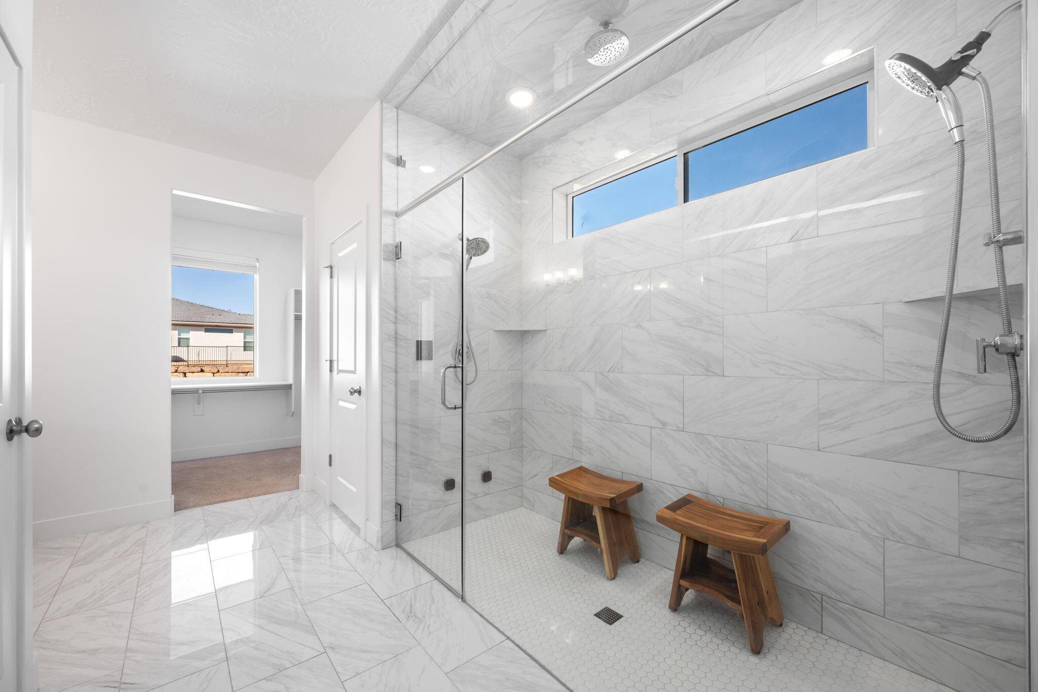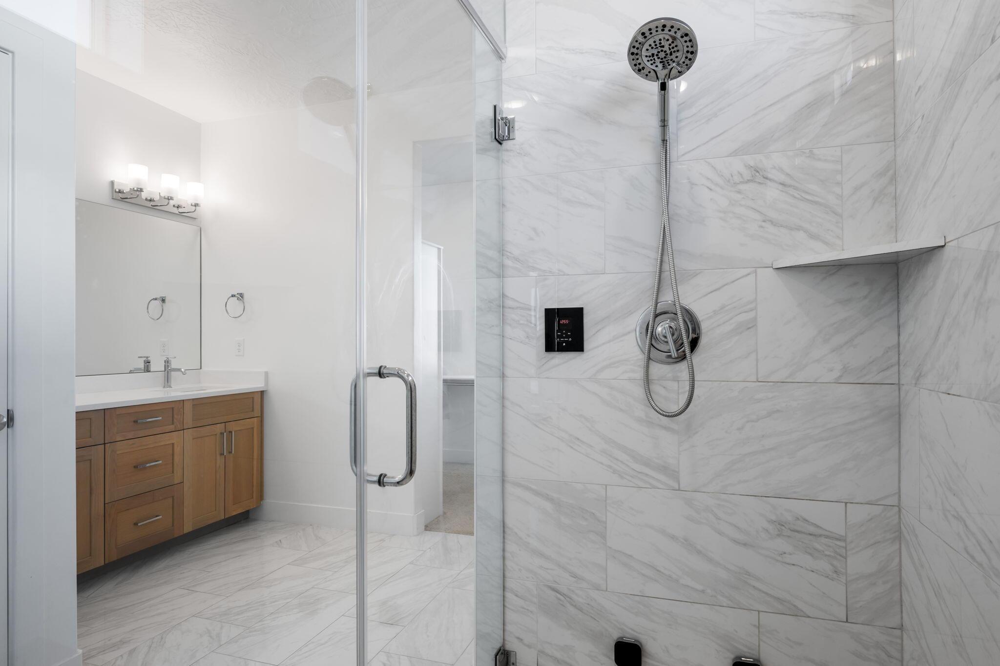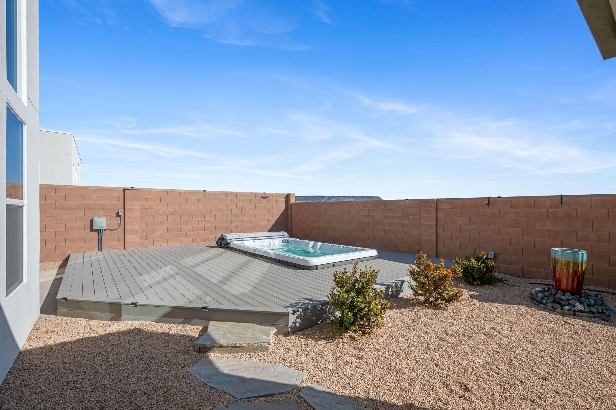 Welcome to this stunning two-story single-family home offering modern comfort, thoughtful upgrades, and resort-style outdoor living. The open-concept living space and kitchen create a bright, inviting atmosphere, enhanced by tined windows and automated blinds in the living room and primary suite for added privacy and energy efficiency. The luxurious primary bathroom features a steam shower, while the home is equipped with an on-demand hot water heater and whole-home water softener for everyday convenience. Step outside to your fully fenced and gated backyard oasis, complete with a Trex deck surrounding a swim spa, a private putting green, and permanent exterior lighting-perfect for entertaining or relaxing year-round. This move-in-ready home blends smart design, modern amenities, and outdoor lifestyle in one exceptional package.