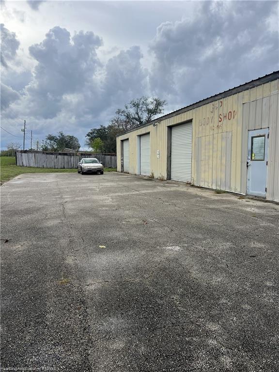 This Commercial building located in the county on the corner of East Claradge Ave and Hwy 17 in Avon Park, Florida and offers excellent visibility and accessibility. The building features over 4,900 square feet and includes a separate office with a service counter, a break room, storage room, a conference room, and a half bath. The shop area includes a full bathroom with a shower and is equipped with 5 large 10x14 roll-up doors and 1 oversized 14x14 roll-up door, making it ideal for equipment access or RV storage. The building is also equipped with an alarm system for added security.