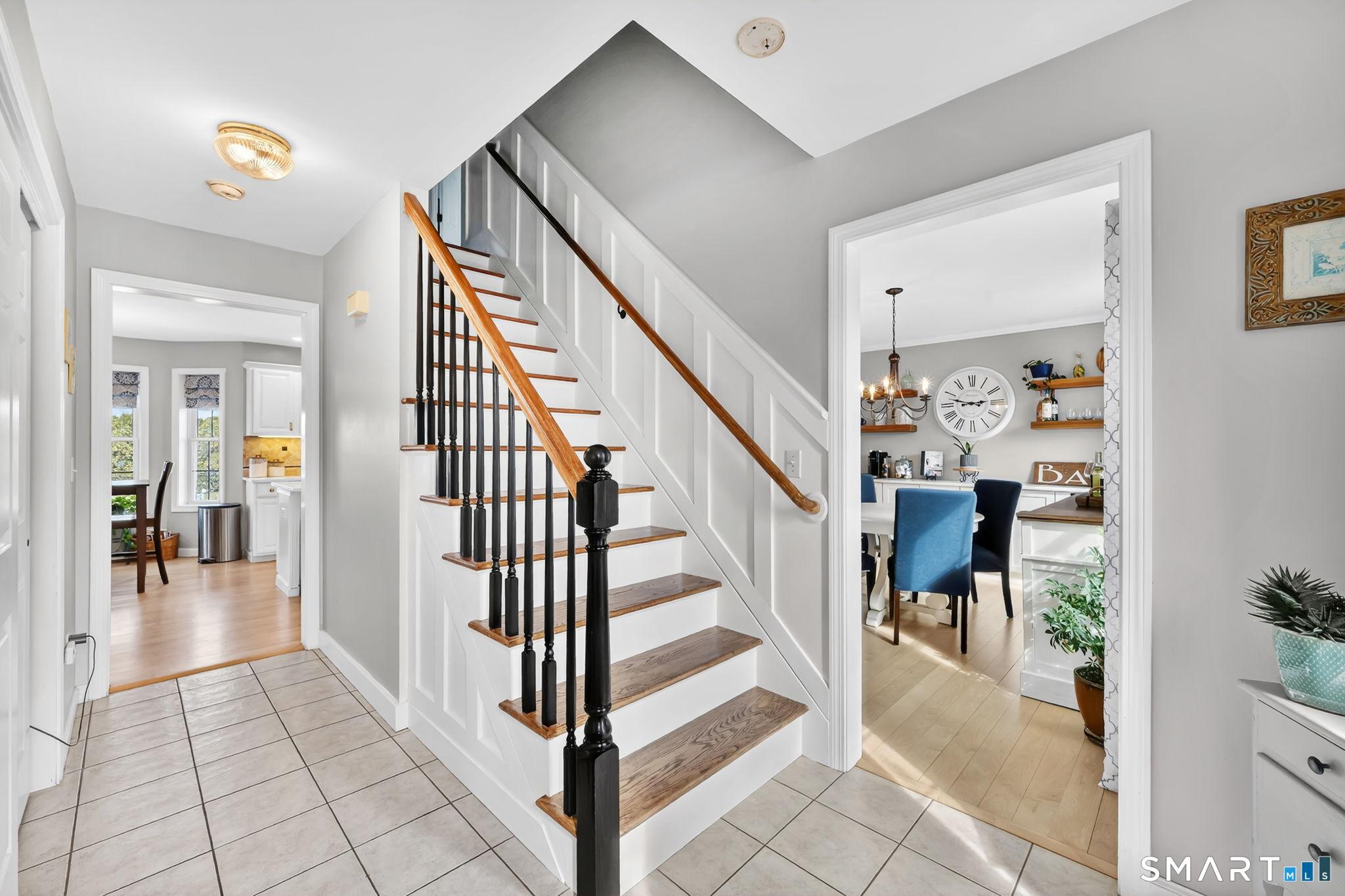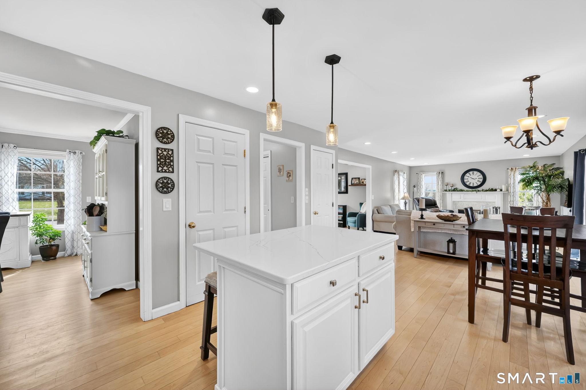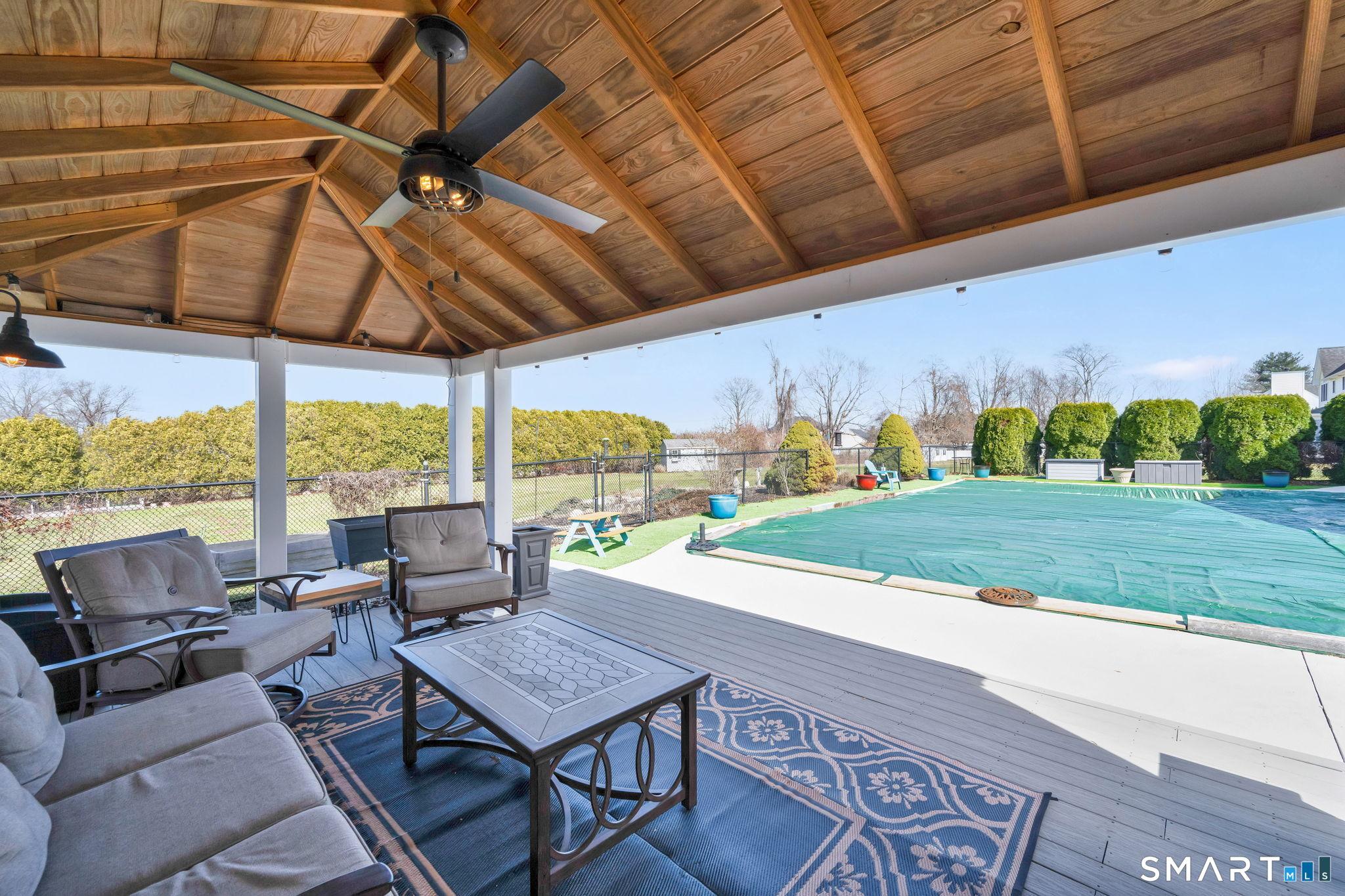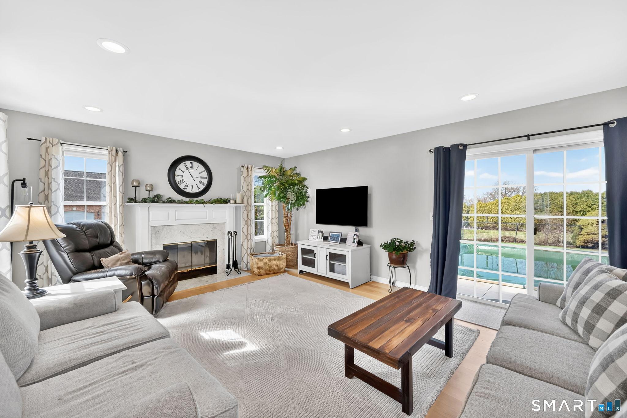 This stunning four-bedroom Colonial perfectly blends classic architectural charm with the modern, open-concept lifestyle youve been dreaming of. Situated on nearly an acre of private, level land, this home is an entertainers paradise designed for both grand gatherings and quiet relaxation. The heart of the home is the spectacular, completely remodeled chefs kitchen, featuring sleek quartz countertops, premium finishes, and a seamless flow into the sun-drenched family room. Anchored by a cozy fireplace, the family room serves as the ultimate hub for daily living. For more traditional occasions, the main floor also boasts a formal living room and an elegant formal dining room, offering versatile spaces for every milestone. Practicality meets luxury in the beautifully remodeled first-floor laundry room, while the completely finished lower level provides endless possibilities for a home theater, gym, or playroom. Youll also have peace of mind with major mechanical upgrades, including a newer furnace, central air conditioning, and a newer gas hot water heater. Step outside to your own private resort. The completely fenced-in backyard features a shimmering in-ground pool surrounded by expansive lounging areas-perfect for summer sunbathing. The pool house adds a layer of convenience and style, while the nearby koi fish pond creates a tranquil atmosphere. As the day ends, retreat to the patio to take in gorgeous sunset views that paint the sky over your expansive estate.