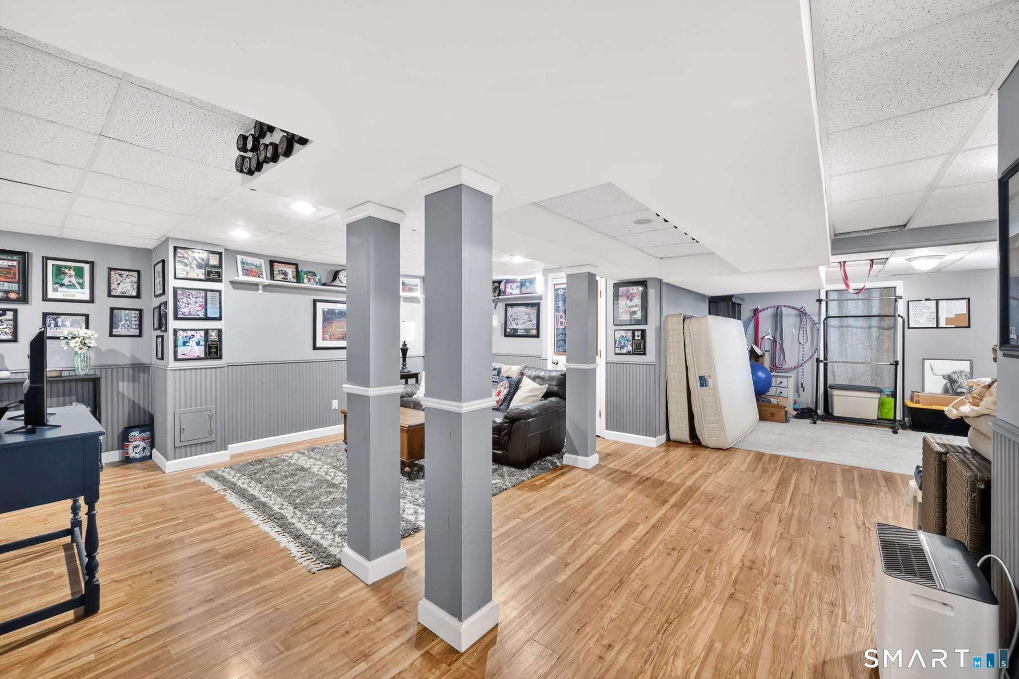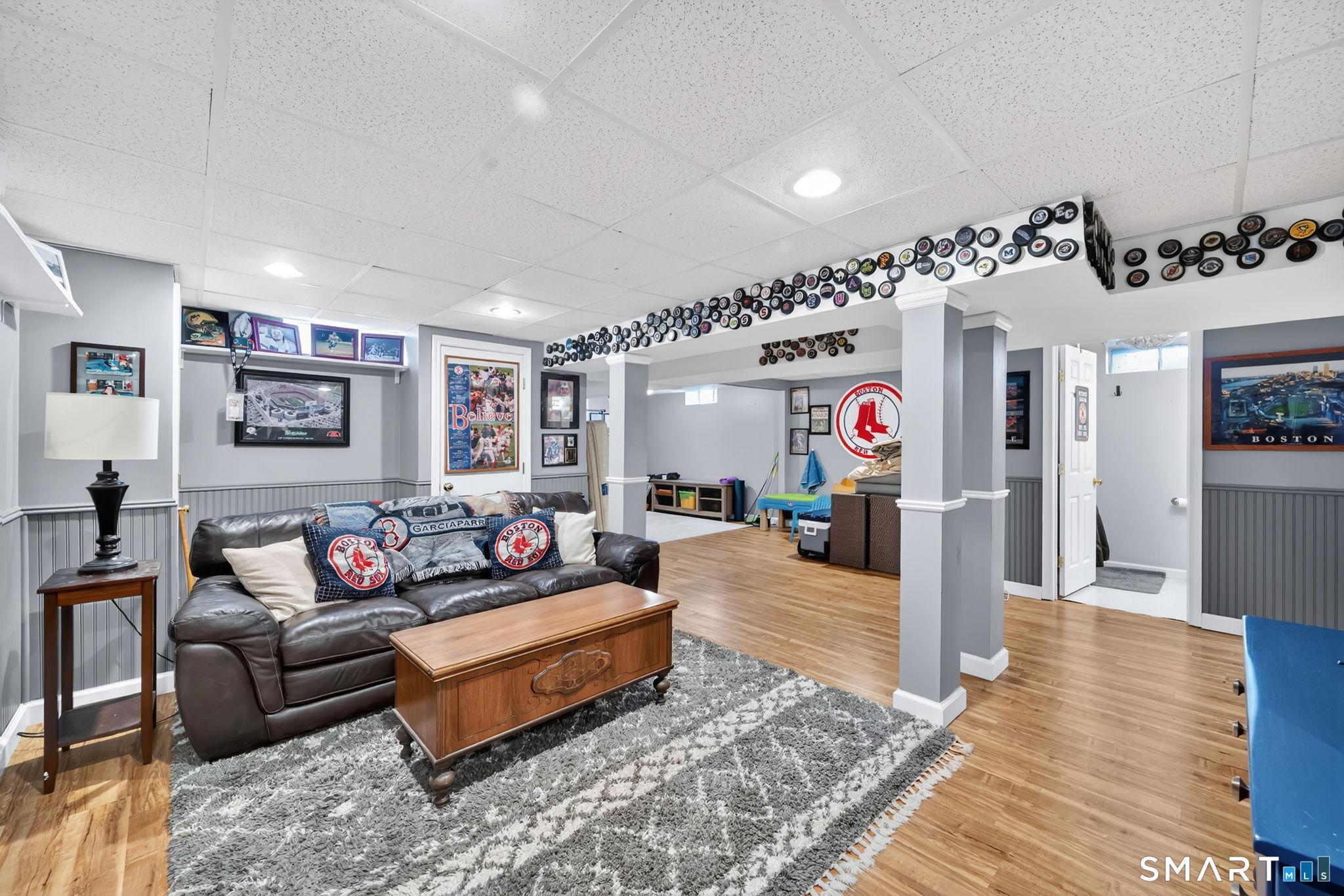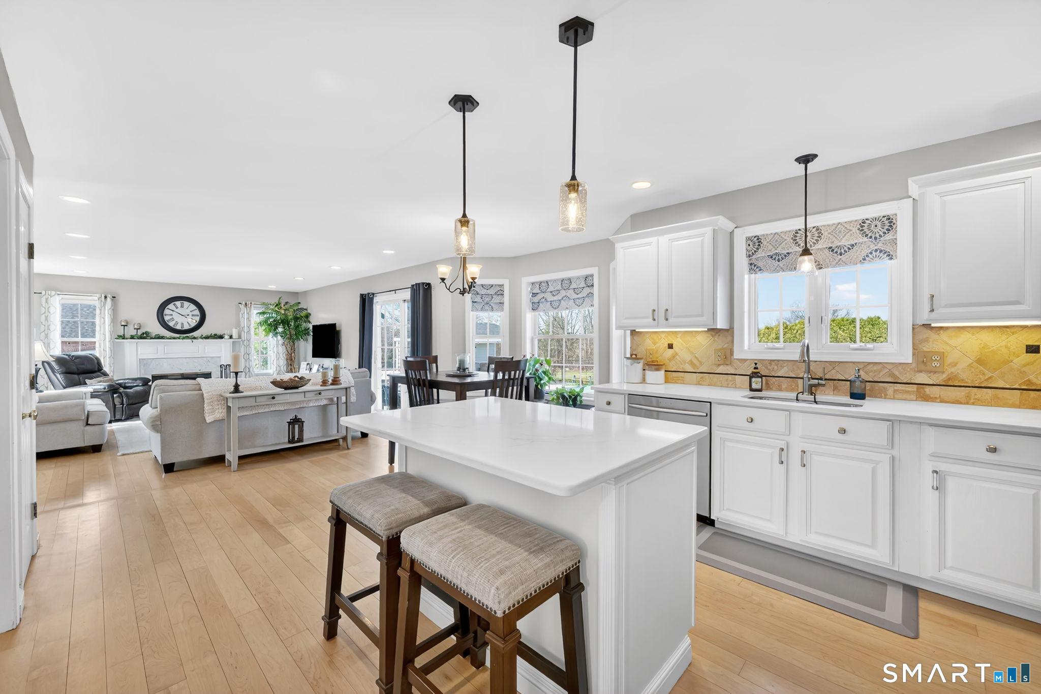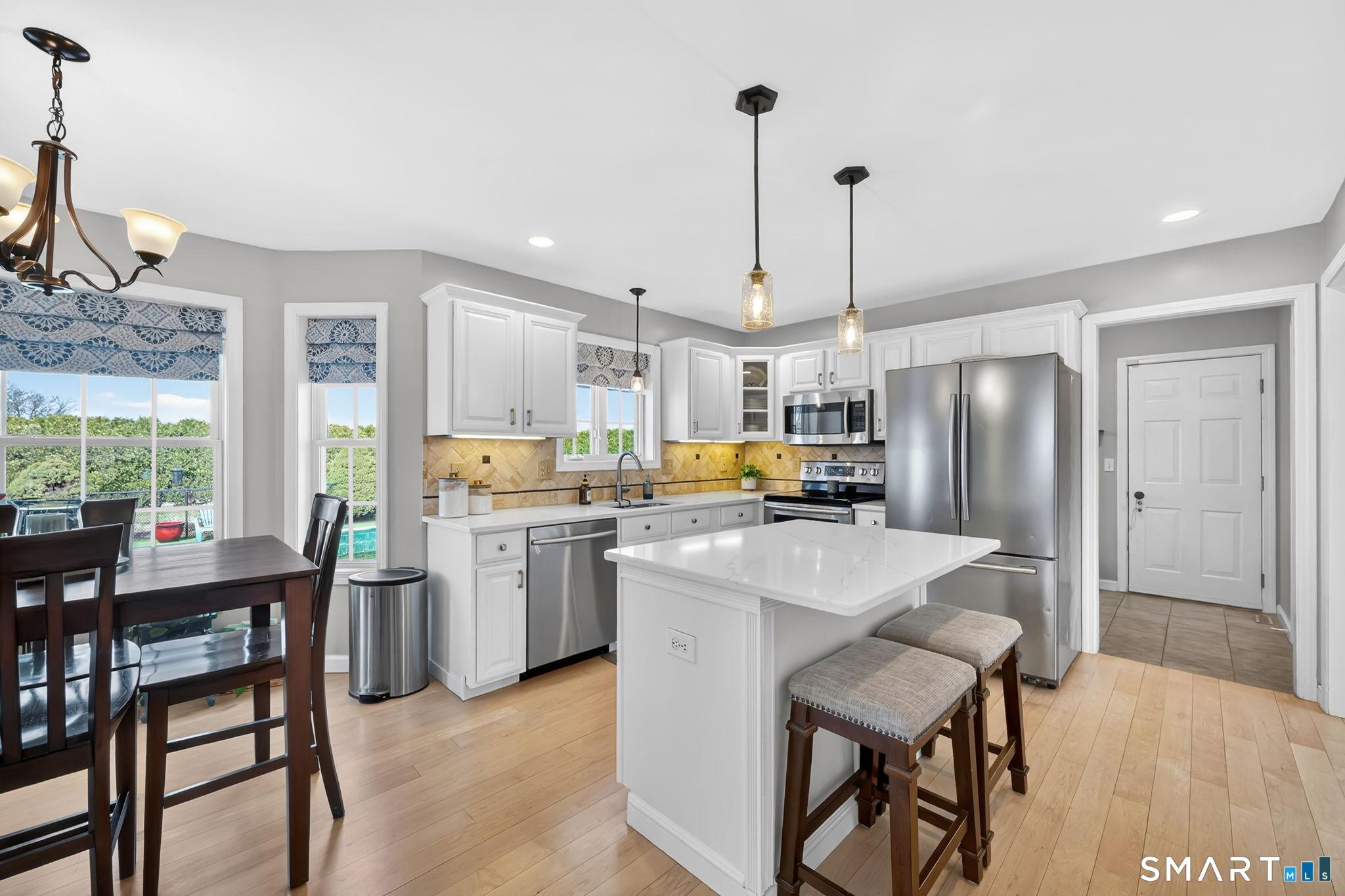 This stunning four-bedroom Colonial perfectly blends classic architectural charm with the modern, open-concept lifestyle youve been dreaming of. Situated on nearly an acre of private, level land, this home is an entertainers paradise designed for both grand gatherings and quiet relaxation. The heart of the home is the spectacular, completely remodeled chefs kitchen, featuring sleek quartz countertops, premium finishes, and a seamless flow into the sun-drenched family room. Anchored by a cozy fireplace, the family room serves as the ultimate hub for daily living. For more traditional occasions, the main floor also boasts a formal living room and an elegant formal dining room, offering versatile spaces for every milestone. Practicality meets luxury in the beautifully remodeled first-floor laundry room, while the completely finished lower level provides endless possibilities for a home theater, gym, or playroom. Youll also have peace of mind with major mechanical upgrades, including a newer furnace, central air conditioning, and a newer gas hot water heater. Step outside to your own private resort. The completely fenced-in backyard features a shimmering in-ground pool surrounded by expansive lounging areas-perfect for summer sunbathing. The pool house adds a layer of convenience and style, while the nearby koi fish pond creates a tranquil atmosphere. As the day ends, retreat to the patio to take in gorgeous sunset views that paint the sky over your expansive estate.