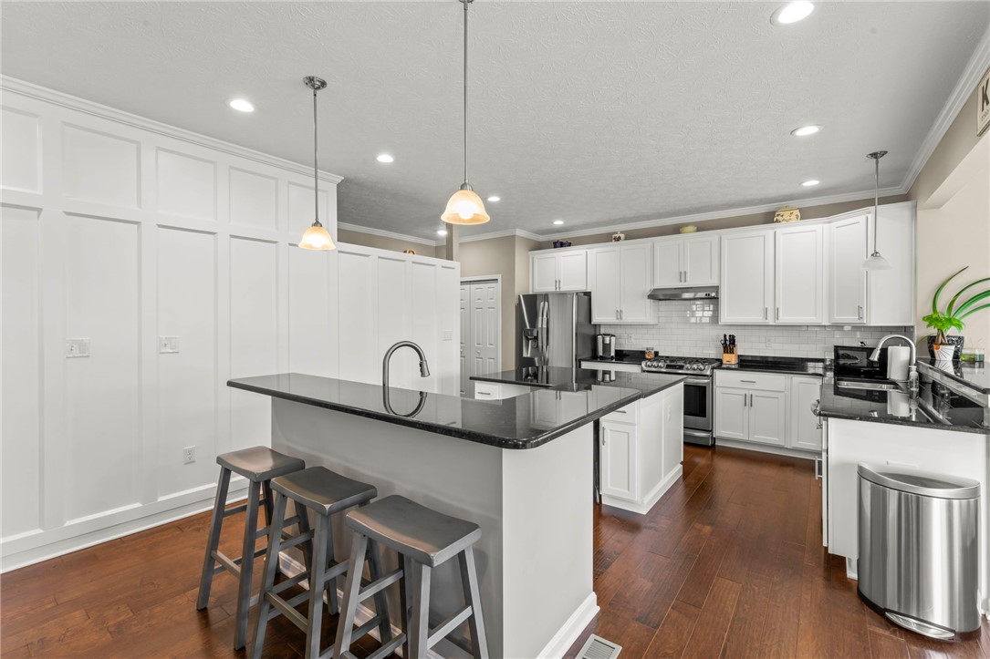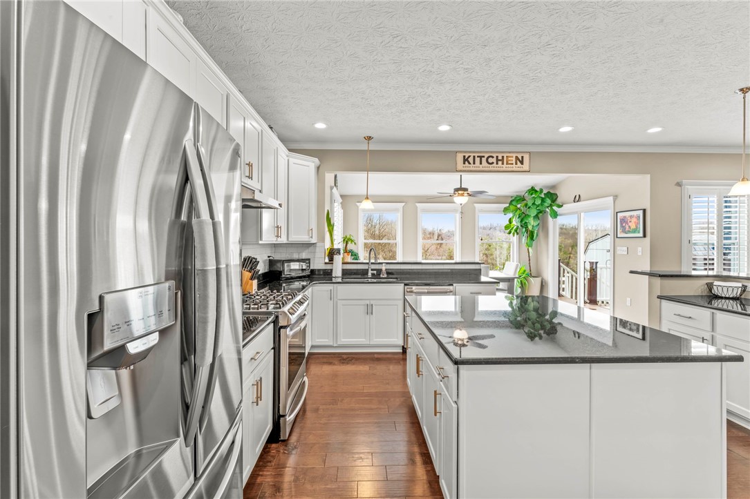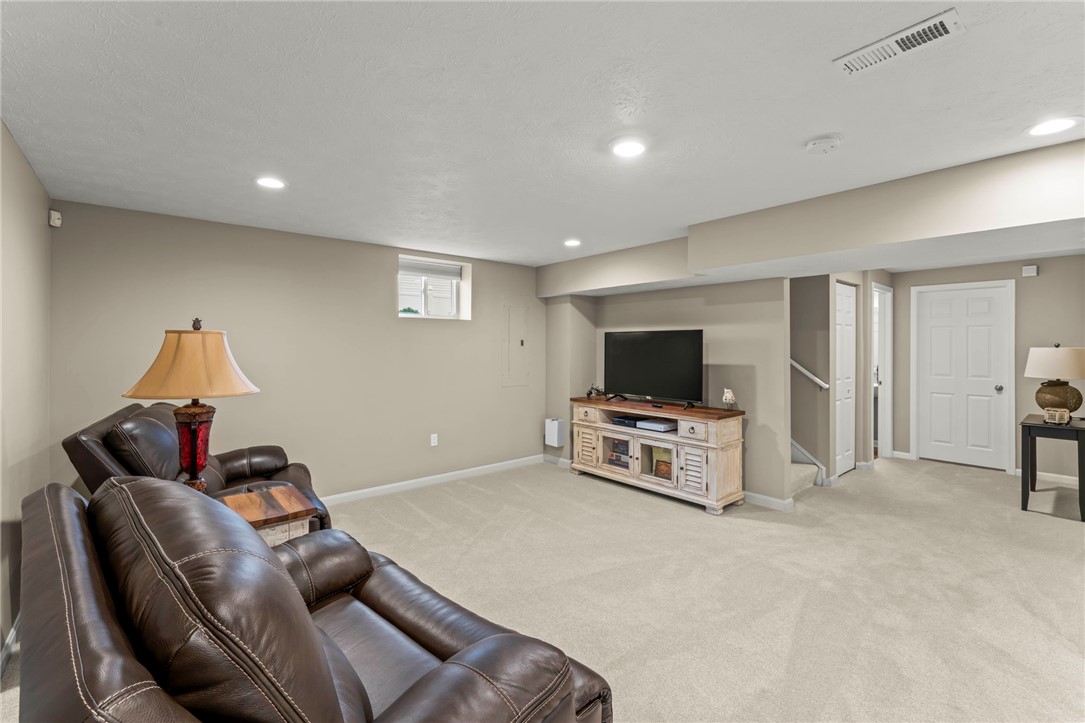 Beautiful & Move-In Ready 4 Bedroom Home Featuring An Amazing Open Floor Plan Located In The Princeton Place Neighborhood! Hardwood flooring throughout the main level, spacious family room featuring a stone hearth fireplace, custom built-ins, recessed lighting & plantation shutters open to the gourmet eat-in kitchen boasting granite tops, white cabinetry, stainless appliances, breakfast bar, dining area with walls of windows and access to the rear deck, main floor den featuring crown molding, wainscoting & recessed lighting, the upper level offers a spacious primary suite featuring a tray ceiling, recessed lighting, remote ceiling fan, luxury bath featuring 2 vanities, walk-in shower & large walk-in closet, 3 additional generous sized bedrooms all with remote ceiling fans, full hall bathroom & laundry room, finished lower level game room with built-in beverage bar, additional room could be another office, kids play room & full bathroom, 2 car attached garage, extended driveway with 3 parking spaces, fenced-in rear yard, large 2 tiered rear deck, above ground swimming pool, rear shed, conveniently located to I-79, I-376, schools, shopping, entertainment & more!