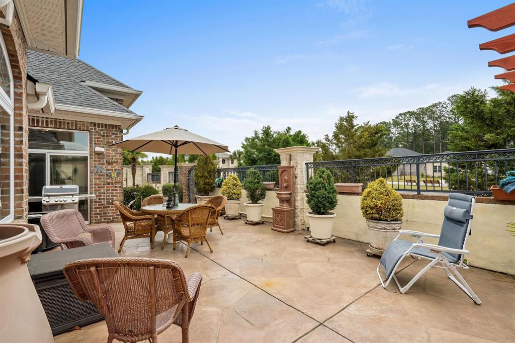 Tucked inside the gates of the highly sought-after Waterfall community, this beautifully maintained all-brick 4-bedroom, 2-bath home offers timeless style, thoughtful design, and spaces created for both relaxing and entertaining.Step through the expansive entryway into a spacious living room where vaulted finished ceilings, rich hardwood floors, and a cozy gas fireplace create a warm and inviting centerpiece of the home. Hardwood flooring flows throughout the entire downstairs living areas, with tile in the bathrooms for durability and style.Just beyond the living area, a sun-filled sunroom surrounded by windows provides the perfect spot for morning coffee or afternoon relaxation while overlooking the beautifully designed outdoor space. Step outside to a large stamped-concrete patio featuring a retractable awning for shade and comfort, ideal for outdoor dining or relaxing on warm coastal days. The patio is enclosed by custom Owens steel gates and impressive 8-foot privacy walls, creating your own private outdoor oasis. The entire yard is professionally landscaped with accent lighting that enhances the space in the evening and highlights the home’s beautiful outdoor setting. A convenient rear gate provides direct access to the community pool and fitness center, making resort-style living part of your everyday routine.The home is also equipped with surround sound throughout multiple areas, including the main living space and rear patio—perfect for entertaining indoors and out. For added peace of mind, security cameras are installed at the front door, above the garage, and along the back wall on the right side of the home.Entertaining is effortless with a generous dining room ready to host family gatherings and holiday dinners. The heart of the home is the chef’s kitchen featuring a gas stove, center island, granite countertops, decorative tile backsplash, pantry, and abundant cabinetry. A comfortable eat-in area provides additional space for casual dining.The primary suite is truly a showstopper, featuring vaulted ceilings, a private sitting room, and a stunning double-sided gas fireplace that can be enjoyed from both spaces. Two large walk-in closets provide exceptional storage. The spa-inspired primary bath includes a tiled garden tub with jacuzzi styling, an expansive tiled shower, and dual vanities, creating a luxurious retreat at the end of the day.Designed with privacy in mind, the first floor offers a split-bedroom floor plan with two additional bedrooms and a full bath located on the opposite side of the home. A laundry and mudroom with extra storage adds everyday convenience.Upstairs, the large bonus room with upgraded Berber carpet offers incredible flexibility and can easily serve as a fourth bedroom, home office, media room, or multipurpose space. You’ll also appreciate the abundant walk-in attic storage conveniently accessible from the bonus room.This home has been exceptionally well cared for, with major updates already taken care of, including a roof replacement and one of the two HVAC systems replaced within the past three years.Ideally located, the home offers quick access to the North Myrtle Beach Sports Complex, Highway 31, and the Main Street Connector, placing you just minutes from all that North Myrtle Beach has to offer, including shopping, dining, entertainment, golf, and the beautiful Atlantic beaches.A rare opportunity to enjoy gated community living, exceptional indoor and outdoor spaces, and unbeatable coastal convenience—this Waterfall home is ready to welcome you.