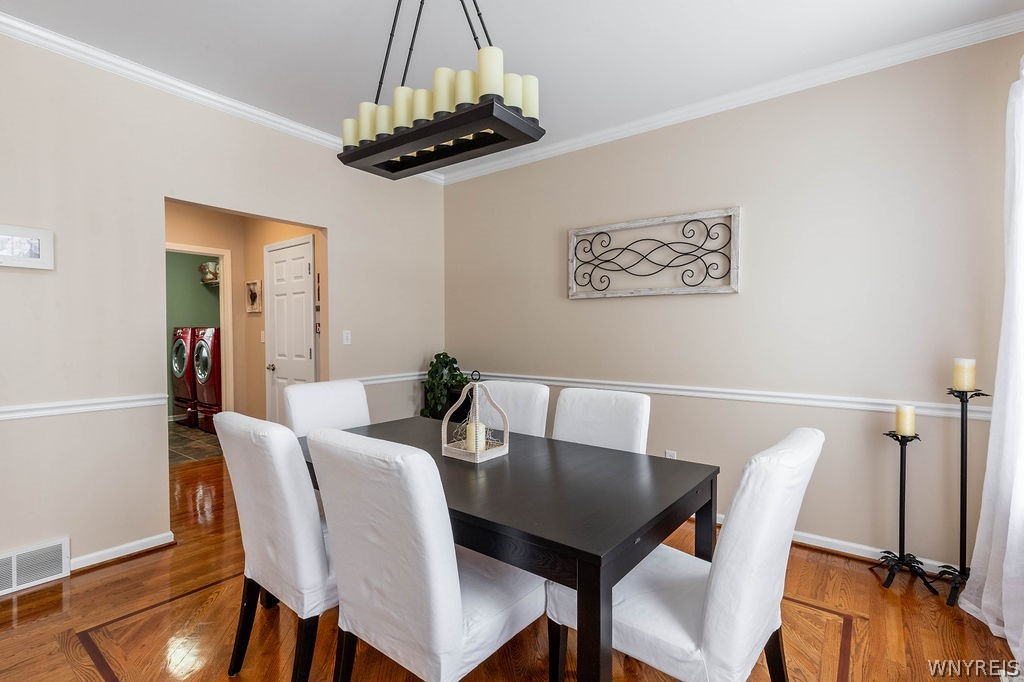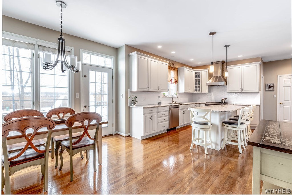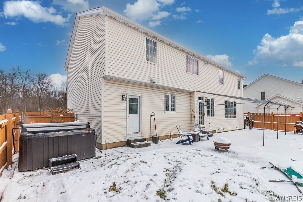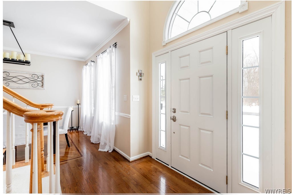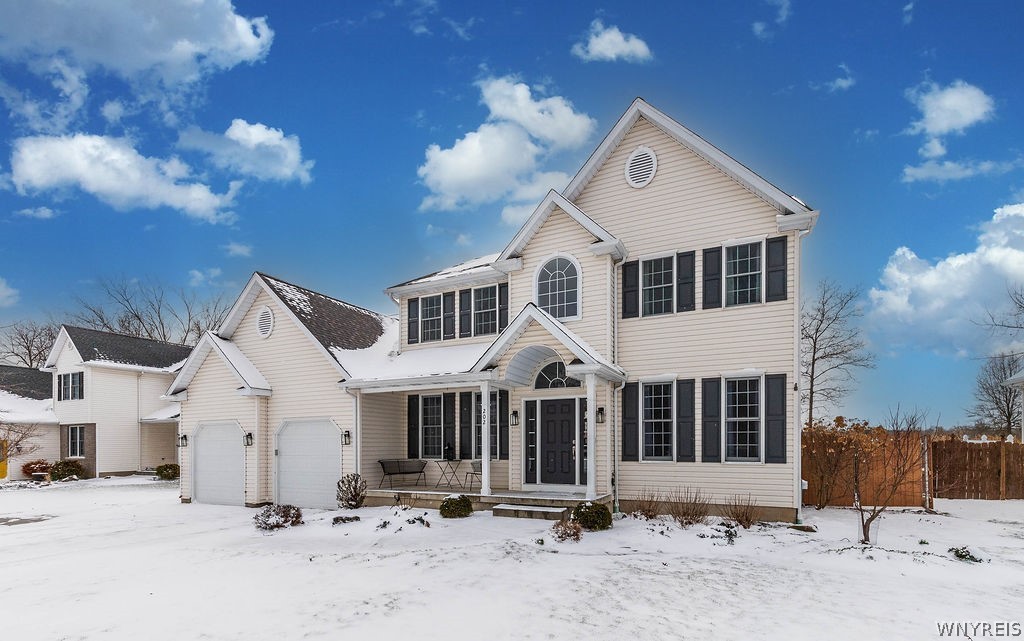 Welcome to this stunning 4 bedroom, 2.5-bath home located in one of Grand Island's most desirable subdivisions. Thoughtfully designed & loaded with amenities, this home is sure to meet all your needs. Step onto the charming covered front porch & into a dramatic two-story foyer with beautiful hardwood flooring. The first floor features nine-foot ceilings, creating a bright & open atmosphere throughout. A spacious private office sits behind double French doors, while the formal dining room showcases crown molding & hardwood floors—perfect for entertaining.The updated kitchen is a true centerpiece, featuring hardwood flooring, granite countertops, tile backsplash, center island with breakfast bar, walk-in pantry, recessed lighting, & a full suite of appliances including a gas stove, refrigerator, dishwasher & built-in microwave. The adjacent eating area opens through a French door to a fully fenced backyard oasis.Enjoy outdoor living at its finest with a covered patio, heated in-ground saltwater pool with spa, playhouse, shed & play set—all overlooking Veteran's Park with direct access to scenic walking trails.The family room features a wall of windows, crown molding & cozy gas fireplace. The first-floor laundry room includes ceramic flooring, cabinetry, utility sink, washer & dryer. Upstairs, the spacious primary suite boasts a step tray ceiling, an impressive 17' x 6' walk-in closet, and a luxurious ensuite bath with dual sinks, Corian countertops, whirlpool tub, and separate shower. Each of the three additional bedrooms includes its own walk-in closet.The finished basement offers additional living space with a recreation room & glass block windows. Additional highlights include a double-wide concrete driveway with extra parking, a garage with 10-foot ceilings & 9-foot overhead doors, workbench, USB charging outlets in kitchen & main bath, central air, tankless hot water heater, sump pump with water backup, & a variable-speed pool pump. Updates provide peace of mind: roof '23, Pella windows upstairs, front door '22, pool liner '21, refrigerator '19, dishwasher '18, kitchen remodel and fence '17, pool safety fence '16, furnace, A/C '12. Offers due 3/25 at 4:00 PM.