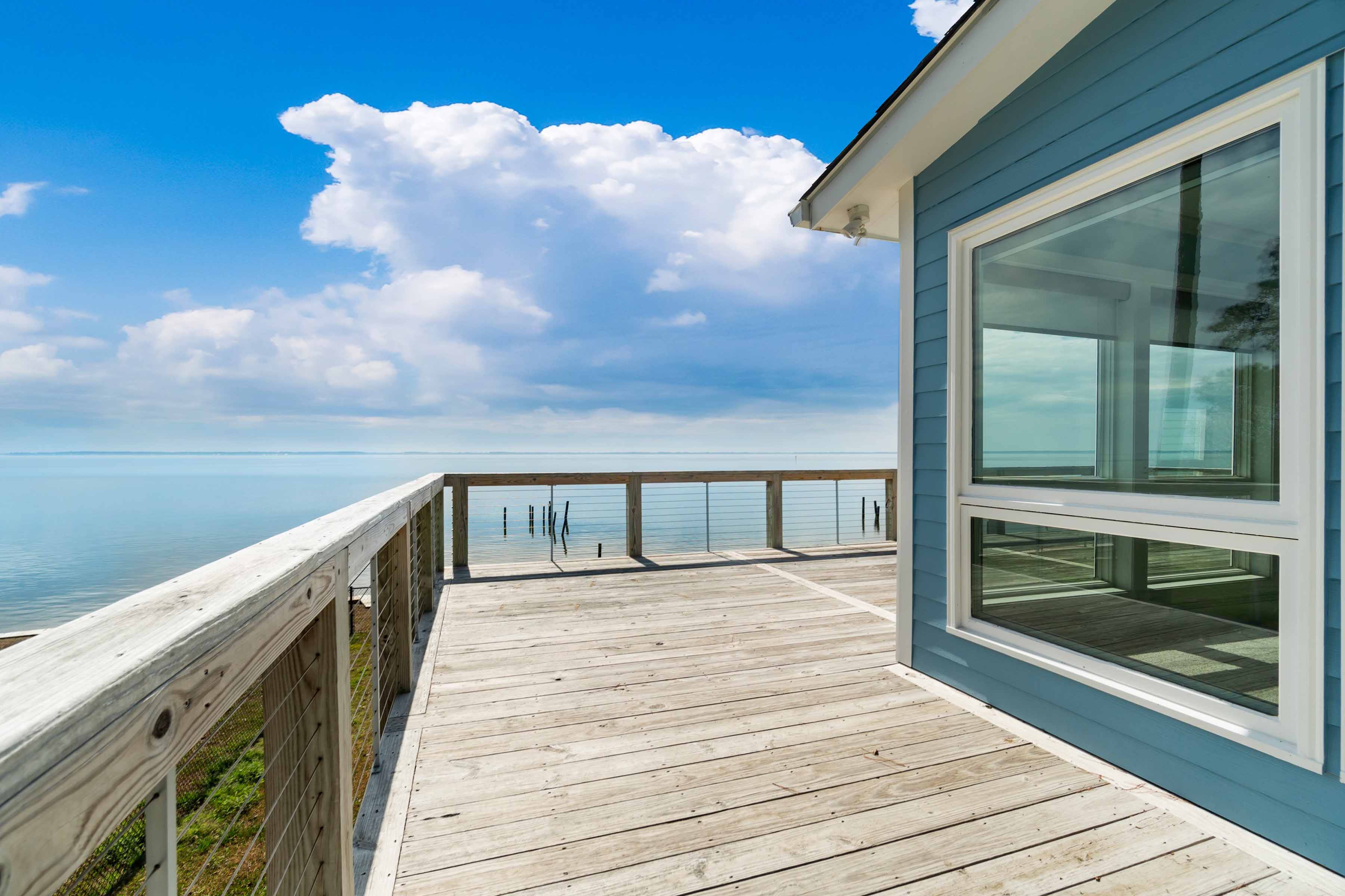 Sweeping waterfront views of the Pamlico Sound, Adams Creek, and the mouth of the Neuse River--just 4 miles from the sailing village of Oriental. Built in 1960 and located outside the flood zone, this beautifully updated coastal home offers approximately 1,640 sq. ft. with 2 bedrooms, 2 flexible bonus spaces, and 2.5 baths.