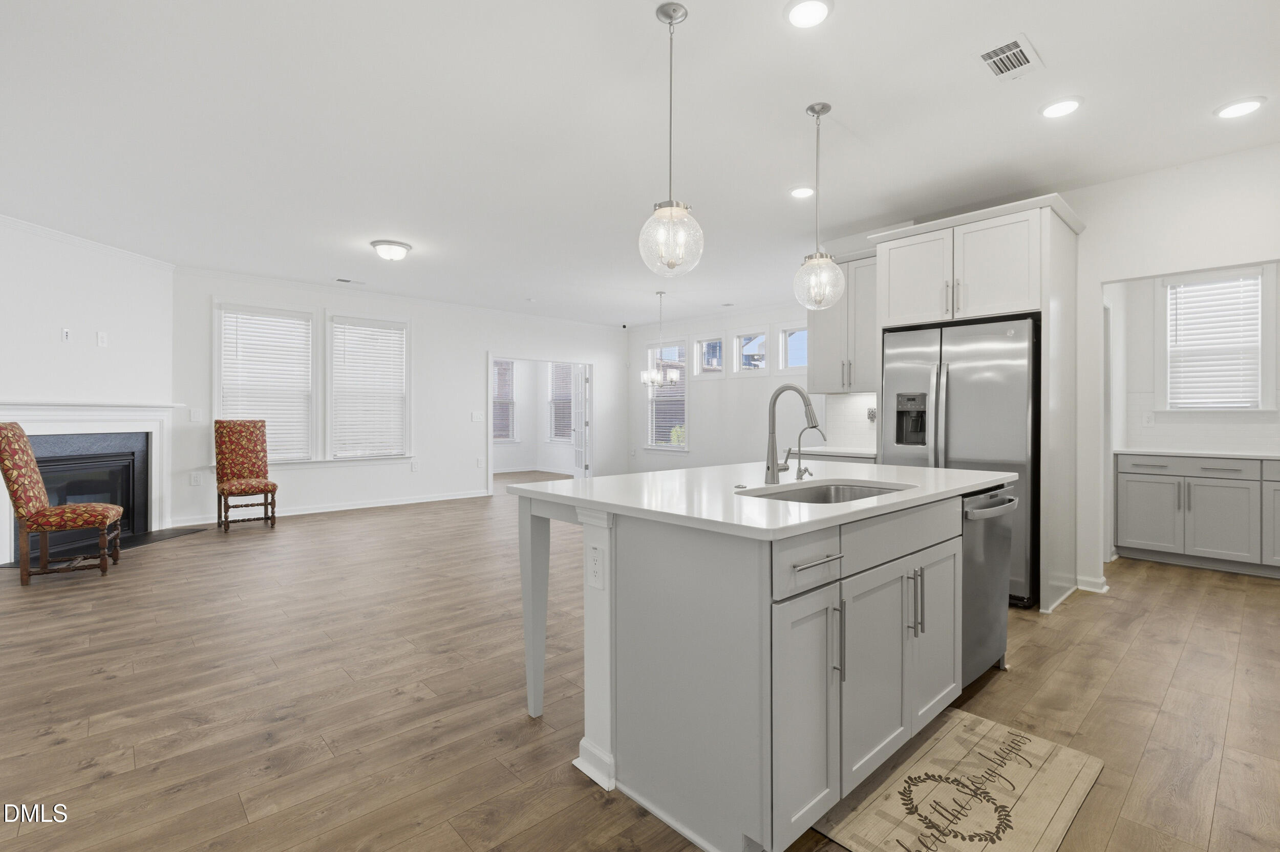 Perfect for kayaking, fishing, or simply soaking in waterfront life - situated right in front of the islands for uninterrupted views! This never-lived-in two-story home features 3 bedrooms, including a private primary with en suite bath, plus a versatile upstairs landing ready for your home office, reading nook, or bonus space. The open-concept main floor is designed for connection, featuring dark espresso cabinets, breakfast bar/island seating, and space for a full dining table. A stunning wall of windows fills the living area with natural light and frames peaceful lake views. Enjoy the attached 1-car garage and covered back deck along with a shared dock.