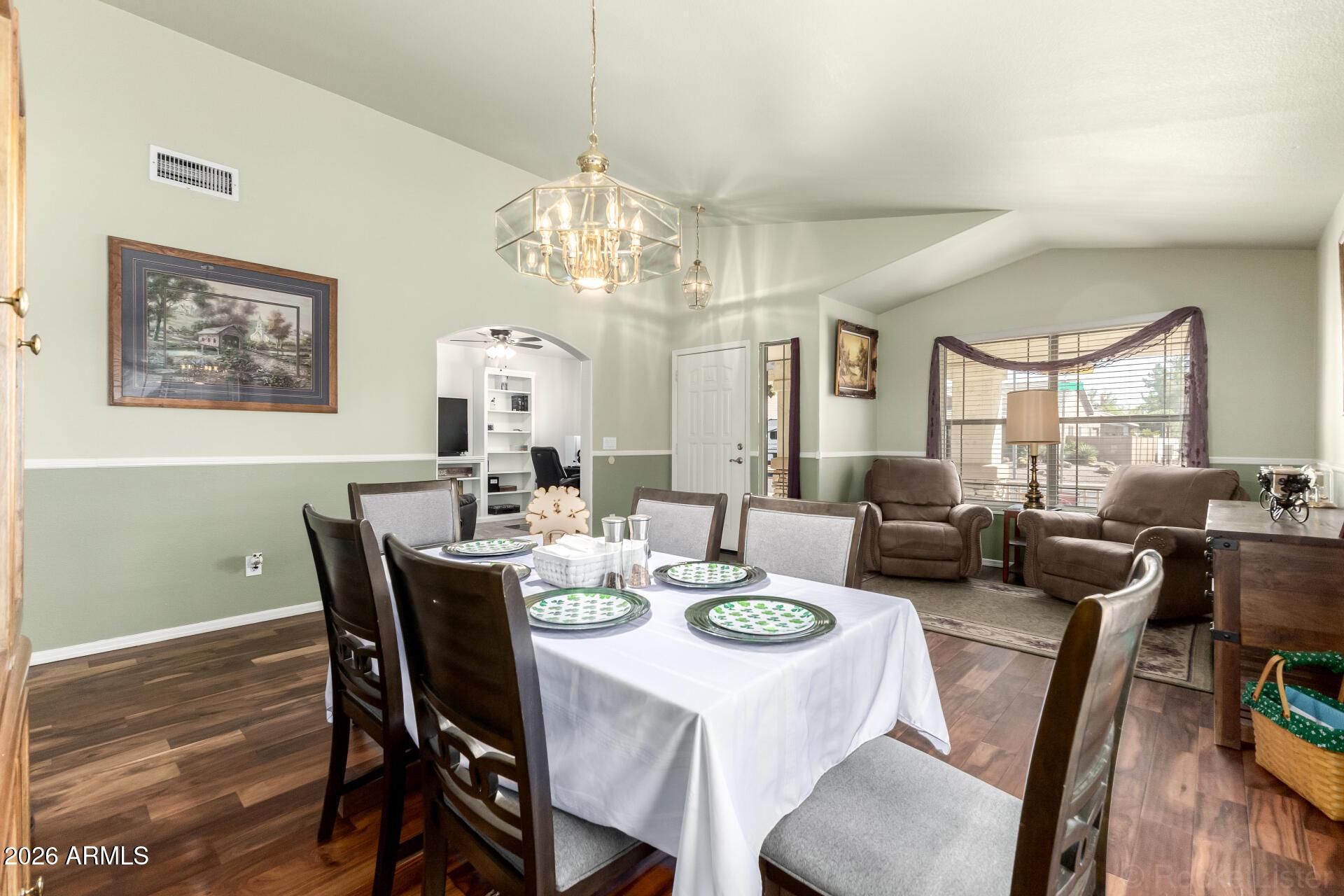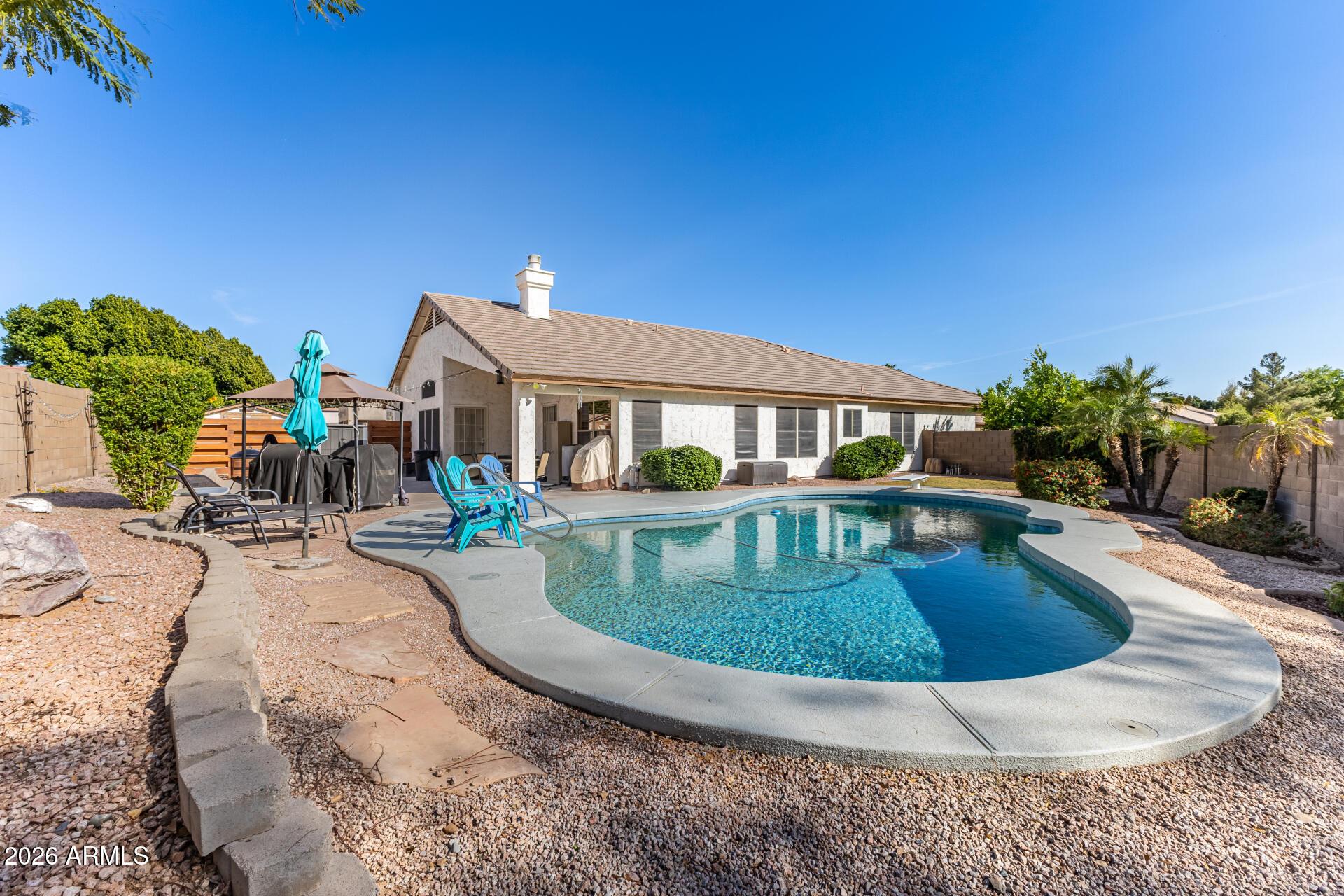 Experience comfort & functionality in this beautifully maintained single level home w/ N/S exposure in highly desirable Arrowhead Ranch on a corner lot! Right across from greenbelt. Features include over 2,300 sq ft, 3 beds plus den, 2 baths, 2 car garage, on an over 9,200 sq ft lot. Separate living & family room, featuring gorgeous engineered wood flooring, vaulted ceilings, & tons of natural light. Large family room enhanced by a cozy fireplace. Kitchen offers beautiful quartz counters, stainless steel appliances, a walk-in pantry, tile backsplash, a center island, & a breakfast nook. Master bedroom provides a double door entry, direct backyard access, ensuite, & spacious walk-in closet. Backyard features relaxing retreat w/ covered patio, diving pool, grass area, & side yard. See today!