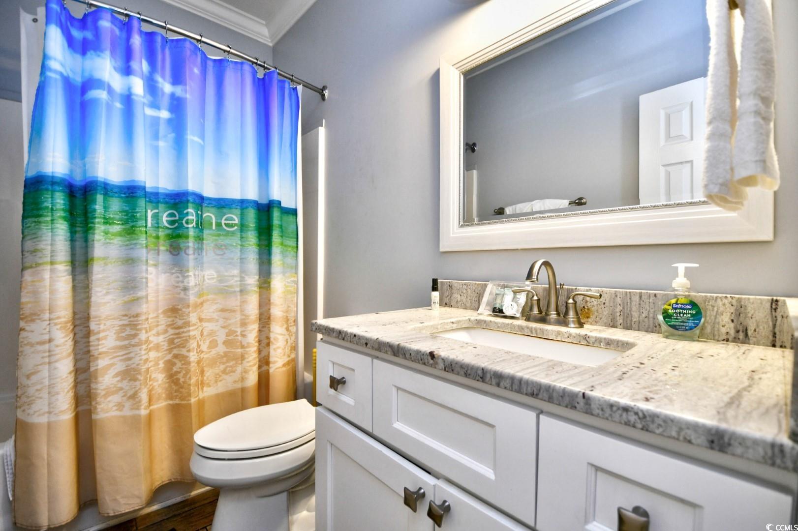Investors, are you ready! With 7 bedrooms and 3 bathrooms, this beautiful rental monster boasts a fresh, modern look, including updated furnishings. The kitchen has beautiful white cabinets, stainless steel appliances, a spacious island, and beautiful granite countertops. Throughout the home, you'll find durable waterproof luxury vinyl plank flooring and ceramic tile that will last a long time and is easy to clean. Each of the 3 full bathrooms have been updated as well. On the main floor, there are 2 bedrooms and a full bath, and upstairs, you'll discover 5 additional bedrooms and 2 full baths. Under the house is a great entertainment area where you can have activities in the shade and there is also a full outdoor shower. Enjoy relaxing on the main level deck, and two bedrooms offer access to a balcony on the top level. This home is close to the beach, and has convenient access to the ocean. Ocean Lakes is a 300-acre oceanfront complex with 24-hour security and provides tons of amenities such as indoor and outdoor pools, basketball courts, volleyball, shuffleboard, horseshoes, and more. Additionally, there's a fantastic water park with a lazy river and slides for all residents and guests to enjoy.
