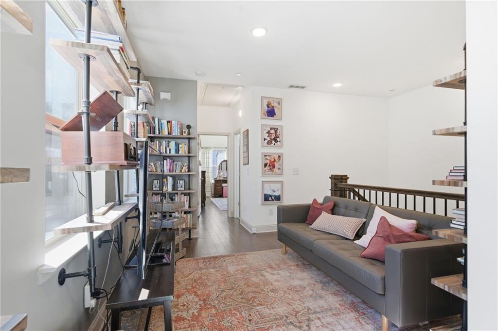 WELCOME HOME! You can't beat this location 5 minutes to Smyrna Market Village! Upgrades galore in this 3 bed 2.5 bath 2300 sqft home! Rare courtyard facing unit ensures tons of privacy and lots of natural light! As you walk in the front door you're greeted with the open concept living space, dining space, and kitchen! No builder grade light fixtures here!! The kitchen features granite countertops, stainless steel appliances, an oversized island with 4 stool capacity! Stand alone gas range, wall oven, microwave, and separate pantry closet! As you head towards the back you'll see a nook by the stairs which could be a drop zone/homework spot/ or office and double doors out to the private side courtyard perfect for entertaining complete with bistro lights! Half bath for guests and coat closet right next to the garage, which features four steel hanging racks for storage staying with the home! As you head upstairs a reading loft will welcome you with custom built-in shelves! The master suite is oversized and light filled! The ensuite features a separate tub and shower, HUGE walk in closet and it connects to the laundry room making it super easy! Master closet built-ins are staying! Two other generous sized bedrooms and hallway updated bathroom! The laundry room also connects to the main upstairs hallway making it super convenient! Brand new water heater just installed November 2025! 5 minutes to Crestwood Tavern, Smyrna Market Village, and Publix! Ten minutes to Truist Park, I-285, and downtown Marietta Square! Gated Community features clubhouse & pool & dog park! Google Smyrna new development to see the cool things downtown smyrna has going on right now!