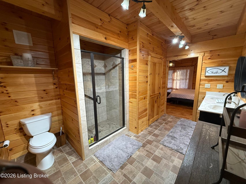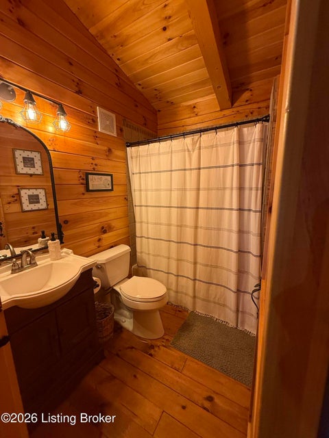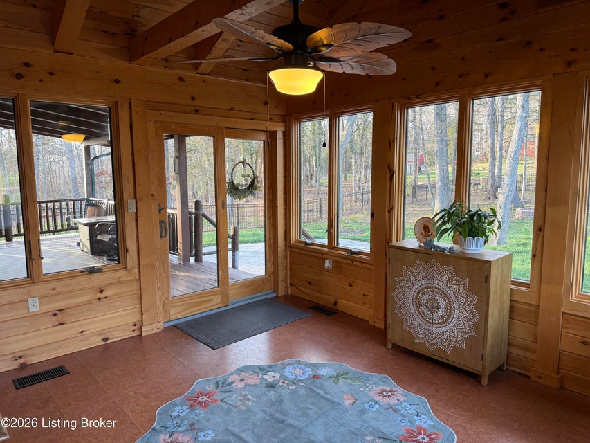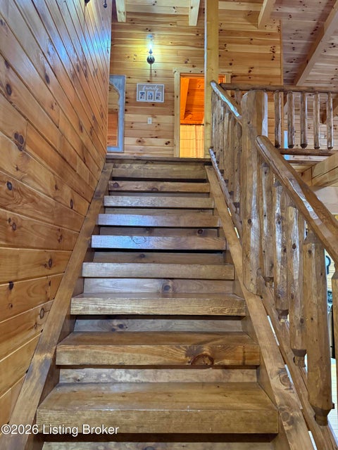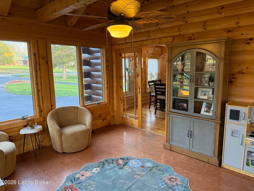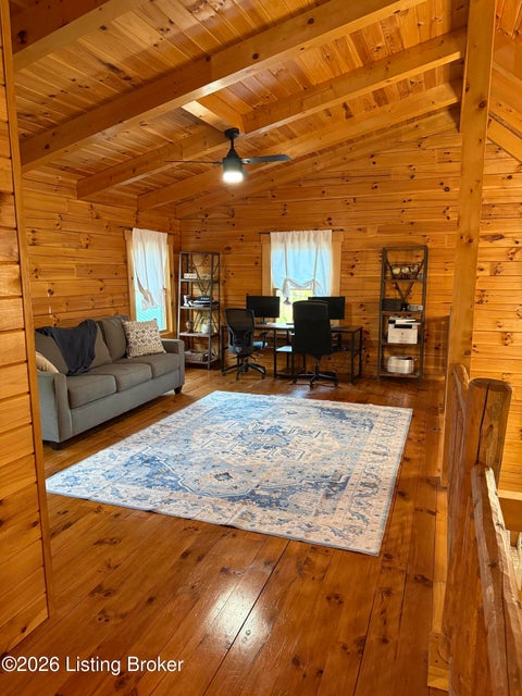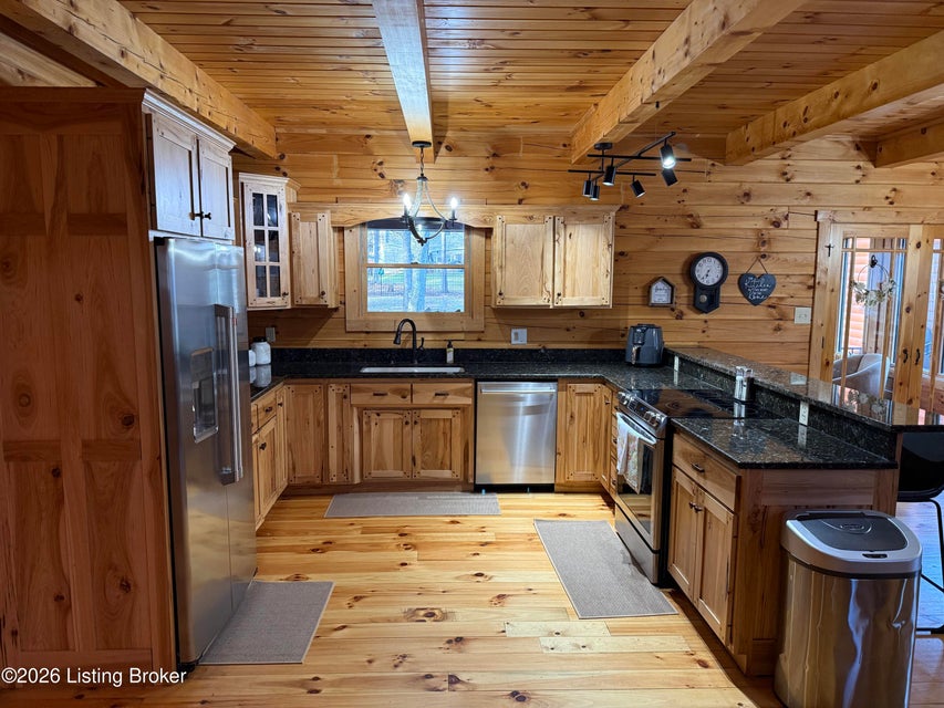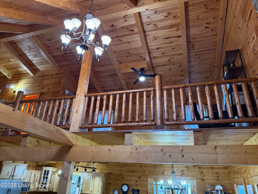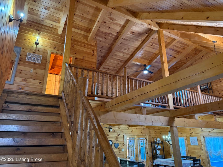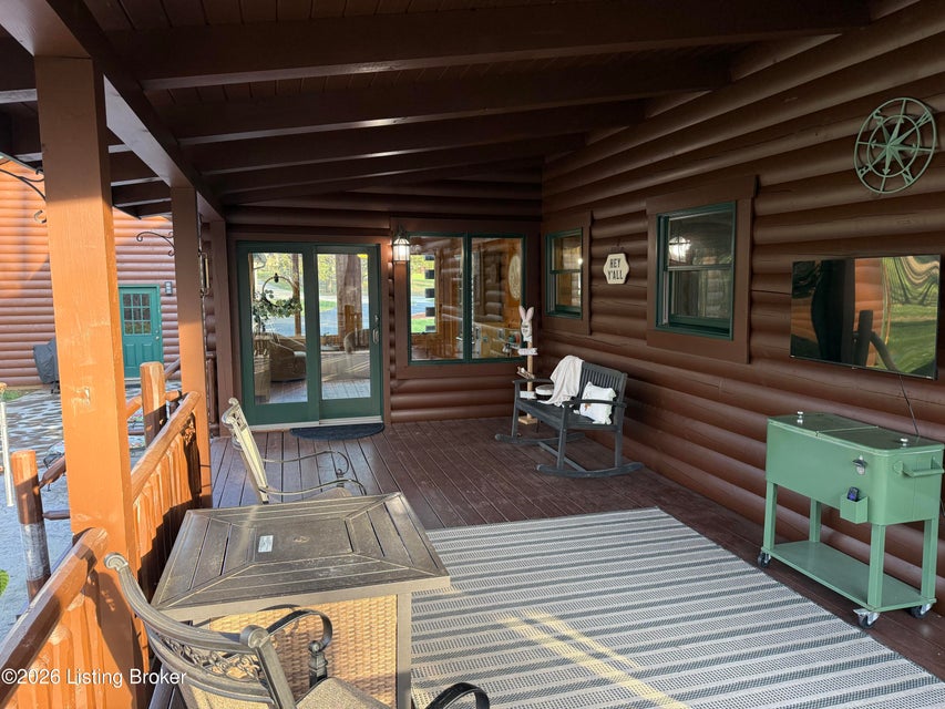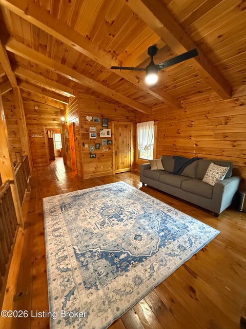 Log Cabin Country living at its finest. Come check out this BEAUTIFUL custom built well maintained log cabin sitting on picturesque 3.5 acres surrounded by trees and also has a small brook that runs down in front of the house. When walking up to the front entry of the house you are greeted by a covered front porch that runs the length of the house, great for sitting out and relaxing and taking in the amazing landscape. As you enter the front door the open living room has large wood beams going across to the open loft above with a beautiful woodburning stone fireplace. The living room opens to the chefs kitchen has hickory cabinets with granite countertops, a raised bar top and stainless steel appliances. The dining area off the open living room and kitchen is great for family gatherings.