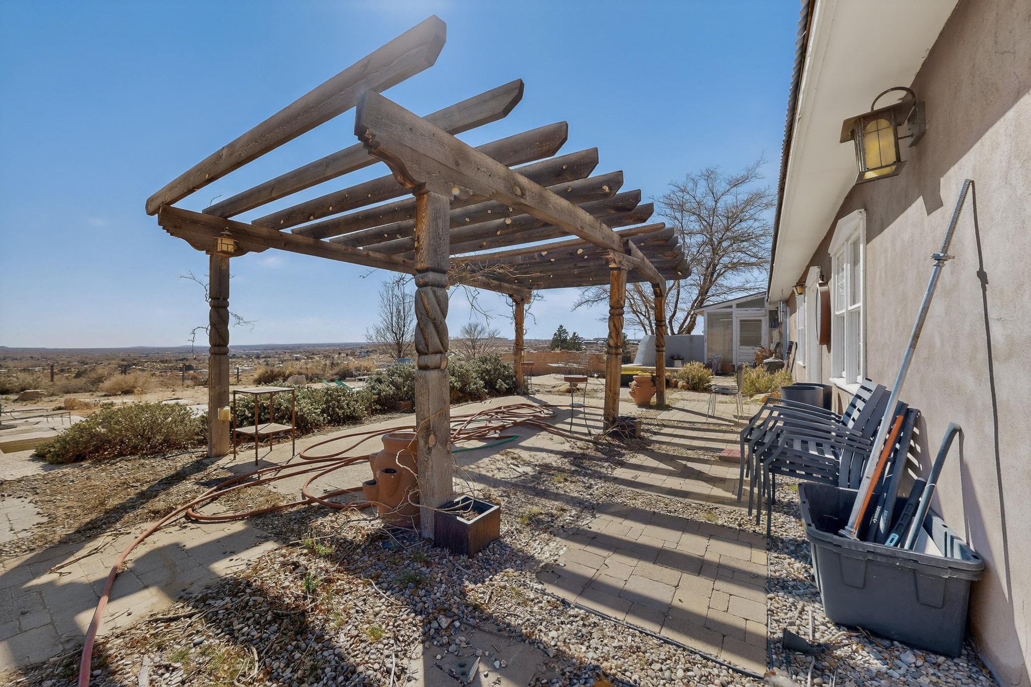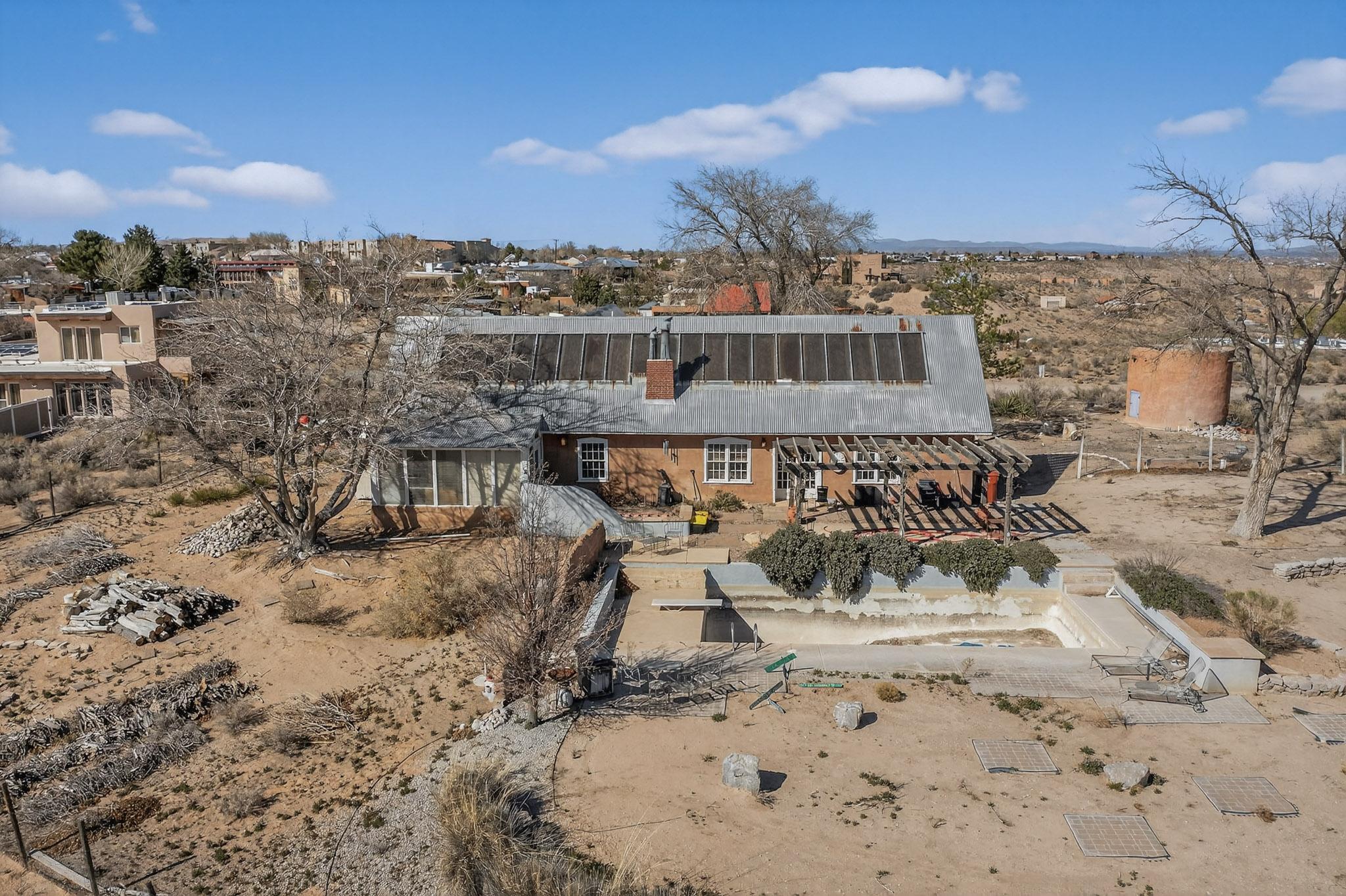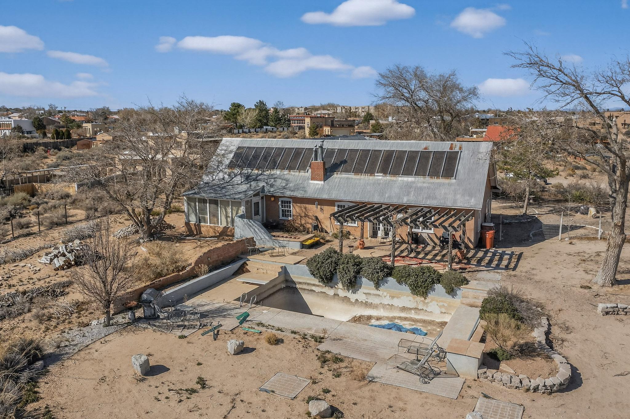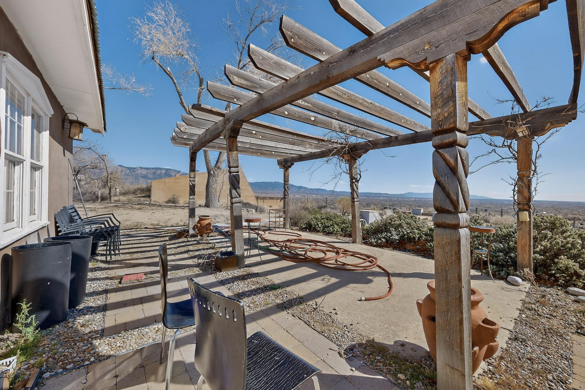 Opportunity awaits in Corrales! This mostly cosmetic fixer is perfect for flippers, investors, or savvy buyers ready to add value. Perched at the top of the hill on a level, usable 0.75-acre lot, the property offers beautiful, unobstructed views of the Sandias and downtown with endless potential. Inside youll find classic Southwestern charm with brick floors, raised ceilings, and exposed vigas throughout. Kiva fireplaces warm both the living room and the primary bedroom, while spacious closets and ample storage add convenience. The backyard features a pool and plenty of space to relax, entertain, or create your own private retreat. Bring your vision and make this Corrales property shine!