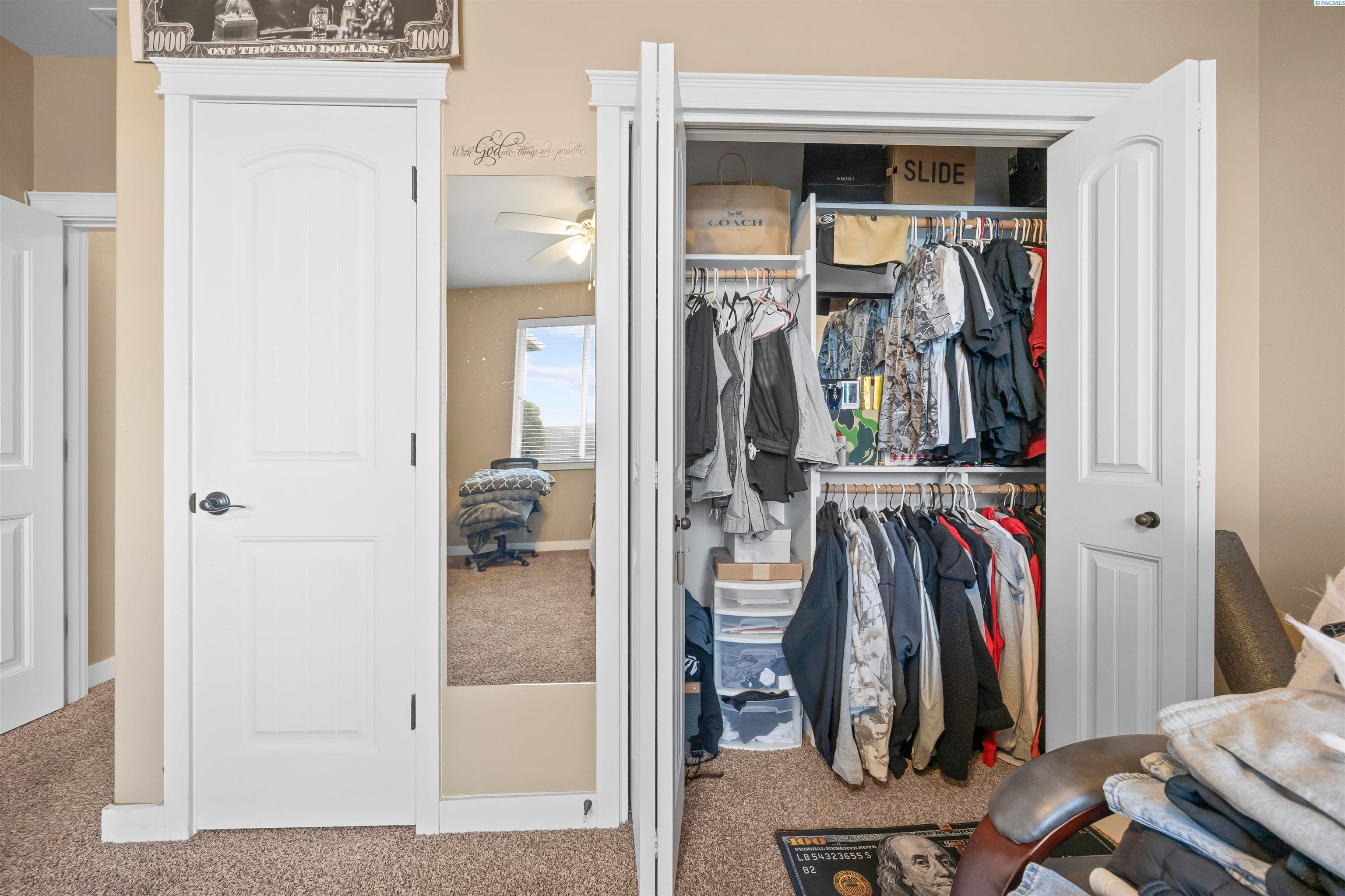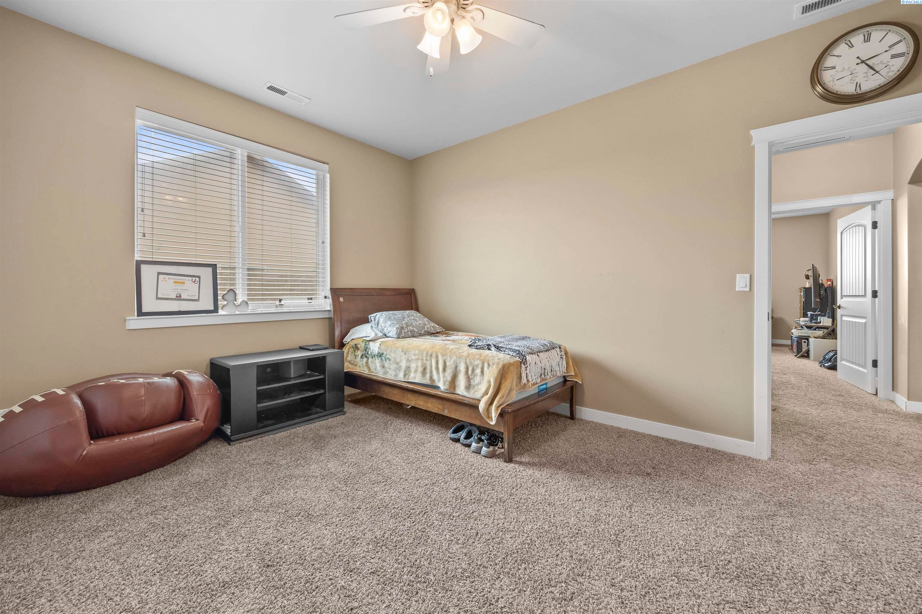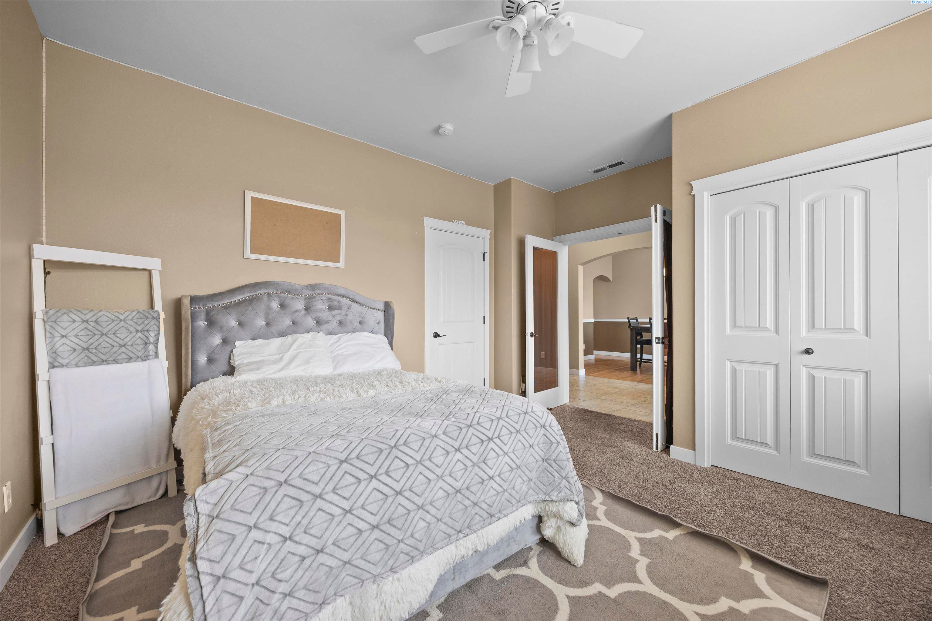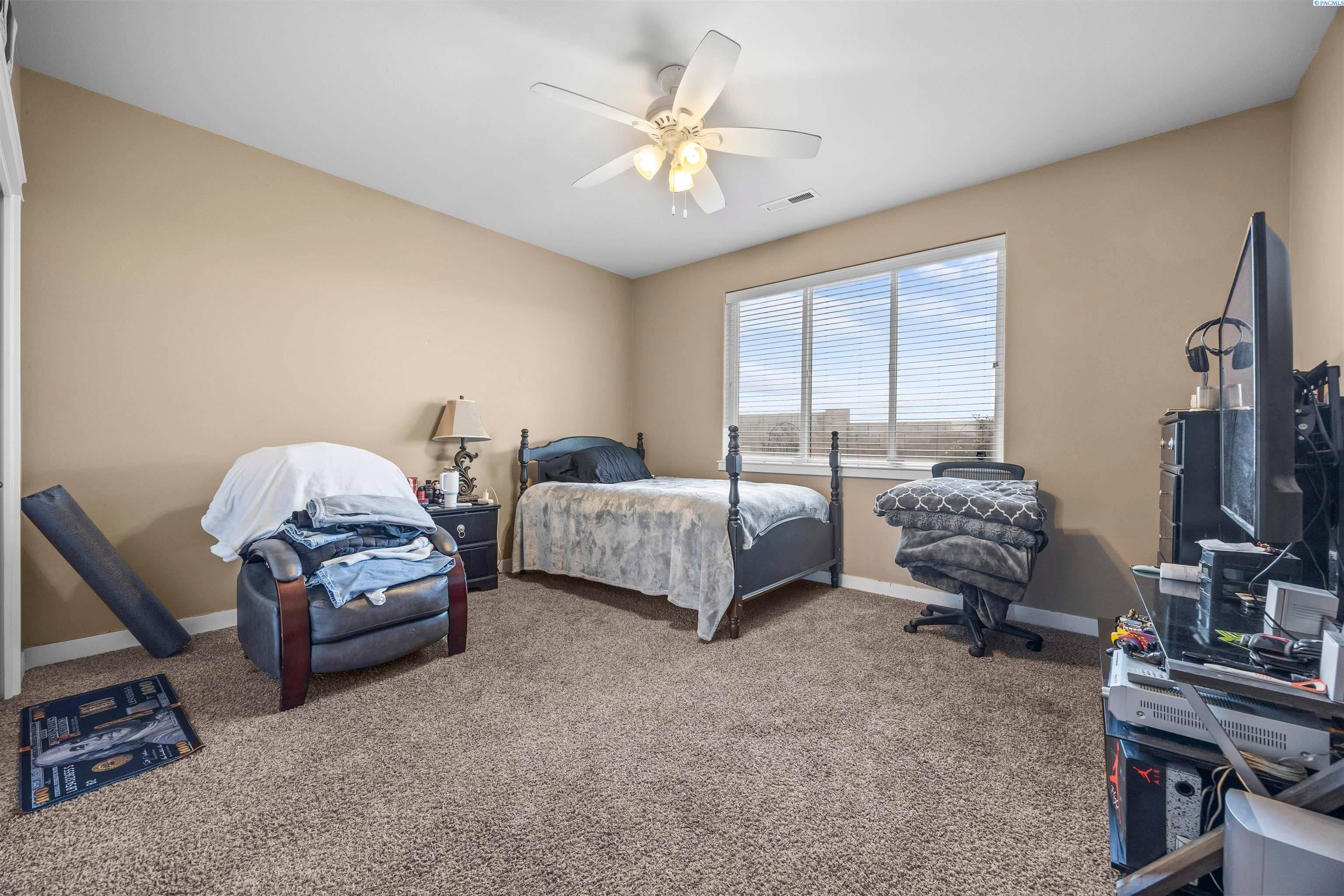MLS# 291383 Welcome to this beautiful custom-built home in the inviting First Place community of West Pasco. Offering 2,745 sq ft of thoughtfully designed living space, this spacious single-level home features 4 bedrooms and 2.5 bathrooms. Step inside to a stunning tiled entry and elegant coffered ceiling that create an inviting first impression. The formal dining room is perfect for holiday meals and special gatherings, highlighted by gorgeous oak flooring that continues into the spectacular kitchen. Designed with both style and function in mind, the kitchen features custom alder cabinetry, granite countertops, a tiled backsplash, pantry, and stainless steel appliances including a gas range. The oversized island with breakfast bar provides abundant storage and prep space, making this truly an entertainer’s dream kitchen. The family room is warm and welcoming, featuring a beautifully detailed coffered ceiling and a cozy gas fireplace. The spacious primary suite offers an expansive dual closet and a luxurious private ensuite with a large tiled shower with multiple shower heads, a soaking tub, and a granite double-sink vanity. The secondary bedrooms are generously sized, and the full guest bathroom also includes a convenient double-sink vanity. A stylish half bath with granite countertops adds additional convenience for guests. The fourth bedroom, which could also serve as a home office or den, is located near the entry and features elegant French doors. Additional highlights include a well-appointed utility room with sink and cabinetry, and an attached 3-car garage with a large storage room—perfect for vehicles, hobbies, and seasonal projects. Step outside to enjoy the private covered patio with a gas BBQ stub, ideal for outdoor entertaining. The fully fenced backyard with a block wall provides both privacy and security. A neighborhood park is just around the corner, and the home offers easy access to Burden Blvd where you’ll find excellent amenities, schools, a sports complex, shopping, dining, and more.