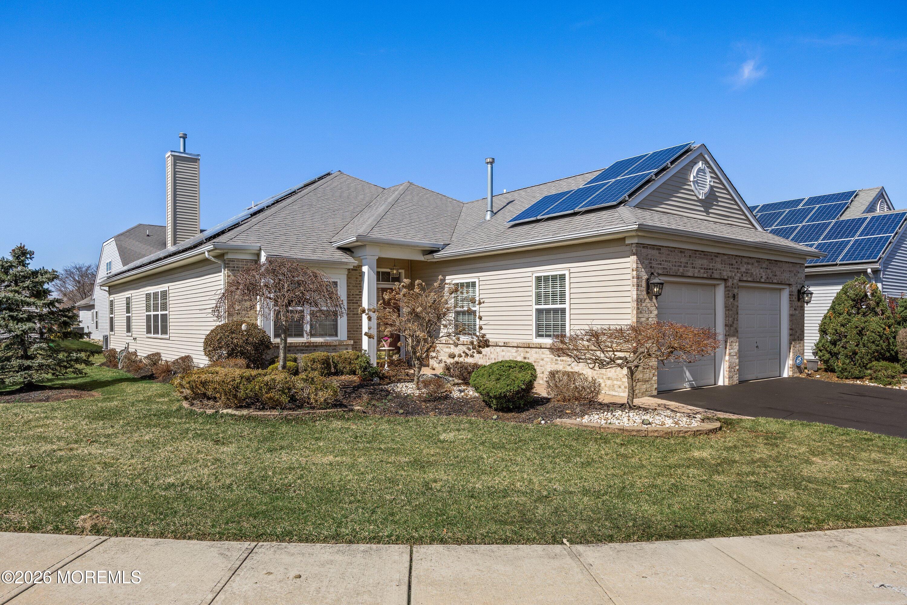 The lifestyle you've been waiting for begins at 9 Sonoma Street where comfort, community, and resort-style amenities come together in Monroe Township's sought-after 55 gated community. Situated on a premium corner lot, this beautifully maintained home offers 2 bedrooms, 2 full bathrooms, plus a flexible office/den ideal for working from home, hobbies, or additional guest space. The eat-in kitchen features granite countertops, stainless steel appliances, and ample cabinetry, providing the perfect space for everyday living and casual dining. The open living and dining areas are enhanced by a cozy two-way fireplace, creating a warm and inviting atmosphere that can be enjoyed from multiple roomsperfect for relaxing or entertaining. Additional highlights include owned solar panels for energy efficiency and a spacious two-car garage for convenience and storage. Residents enjoy access to exceptional community amenities including an in-ground pool, jacuzzi spa, tennis courts, pickleball courts, putting green, clubhouse, fitness center, billiards room, game room, arts and crafts studio, and a full calendar of social clubs and activities all within a secure gated community. Conveniently located near shopping, dining, golf courses, and major roadways, 9 Sonoma Street offers the perfect combination of lifestyle, community, and comfort in Monroe Township.