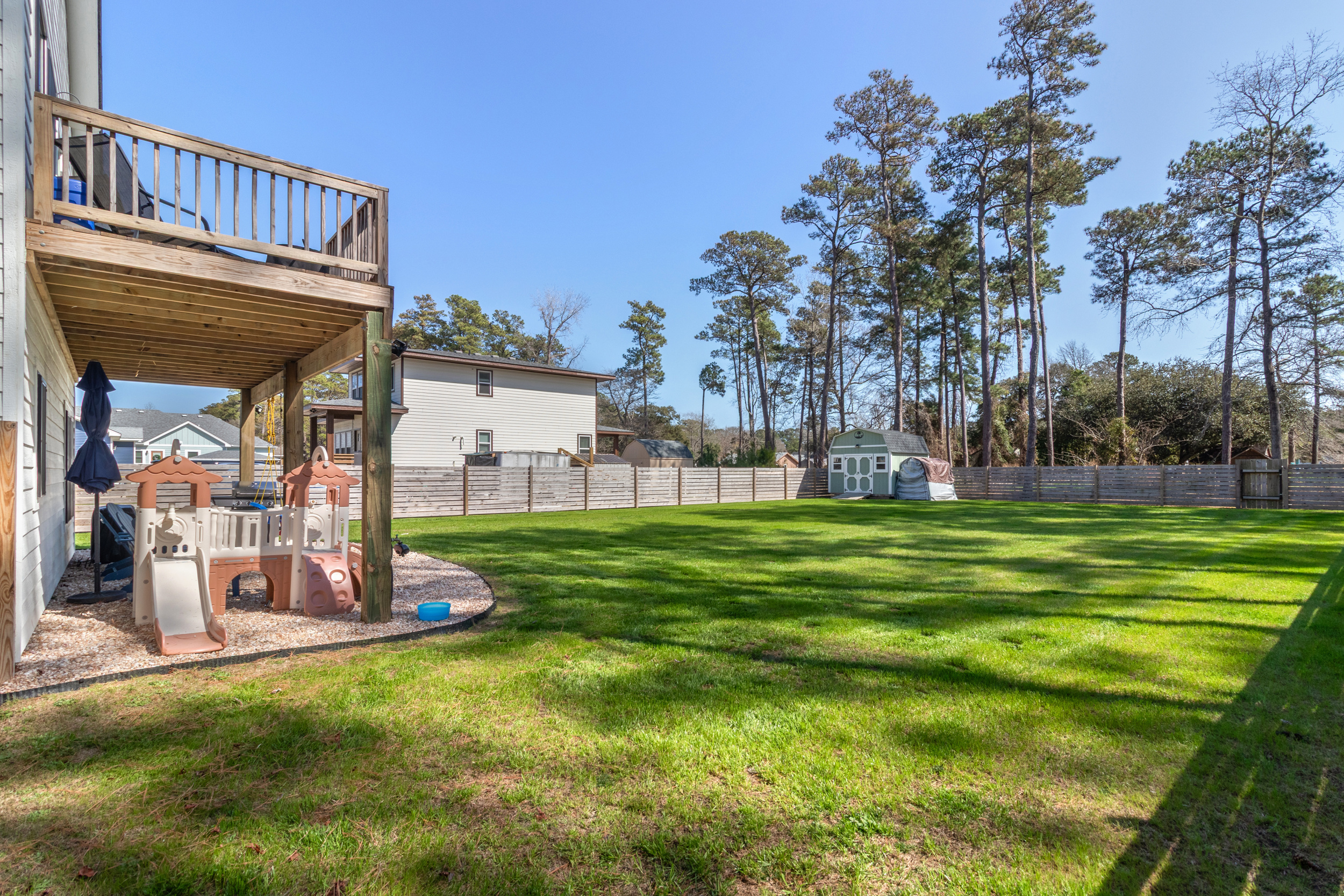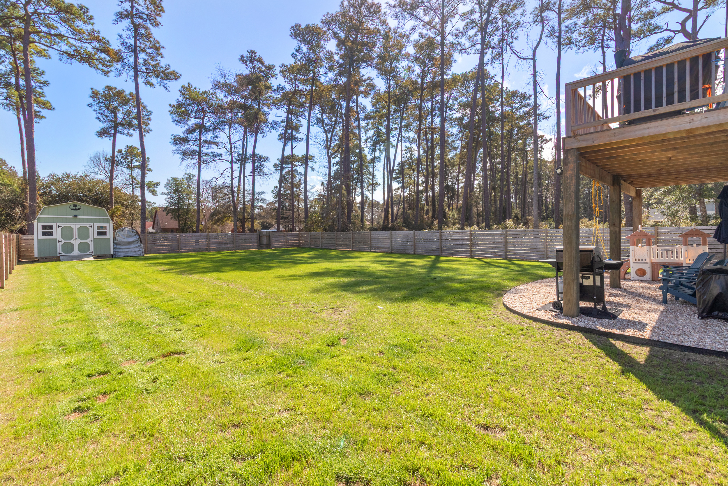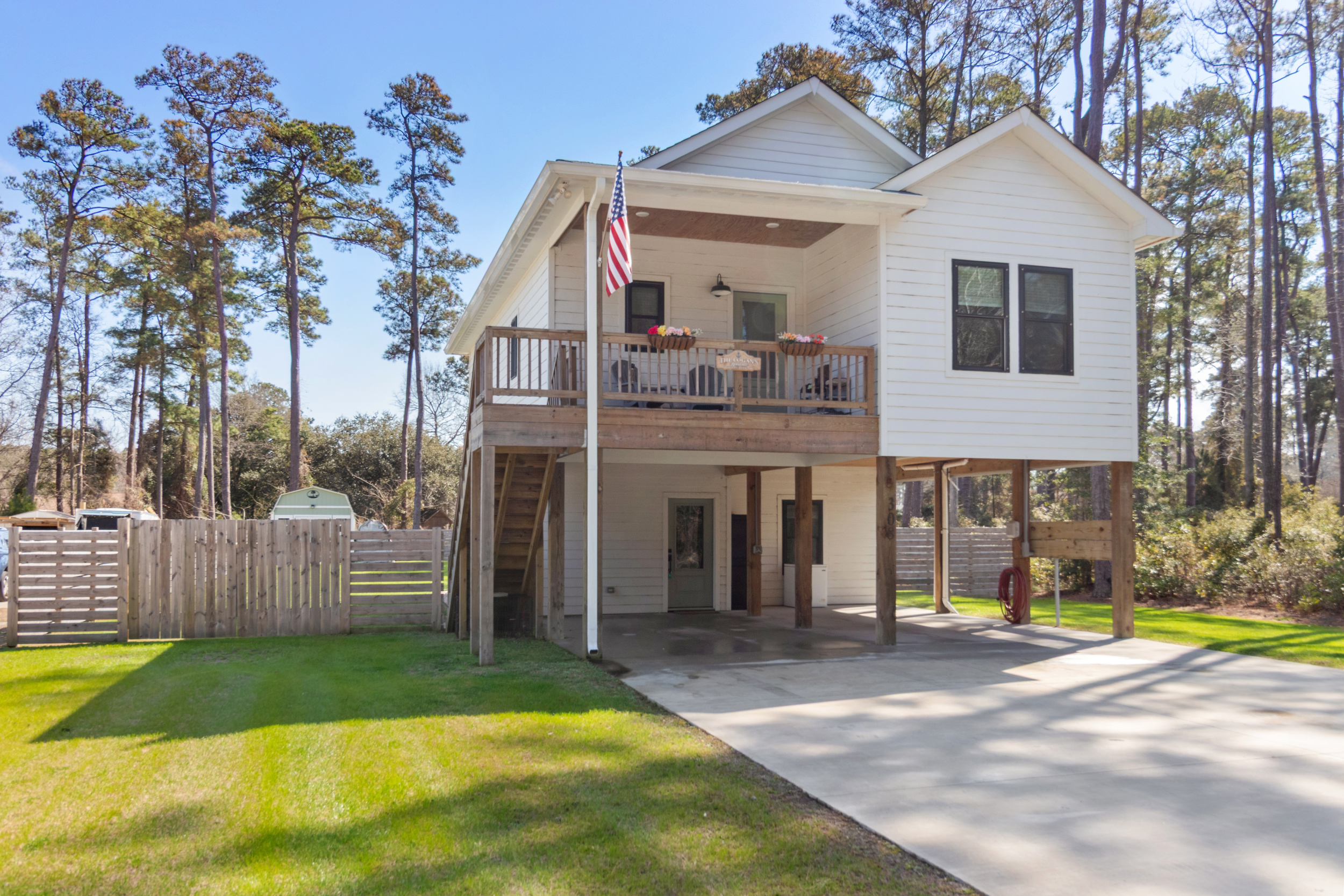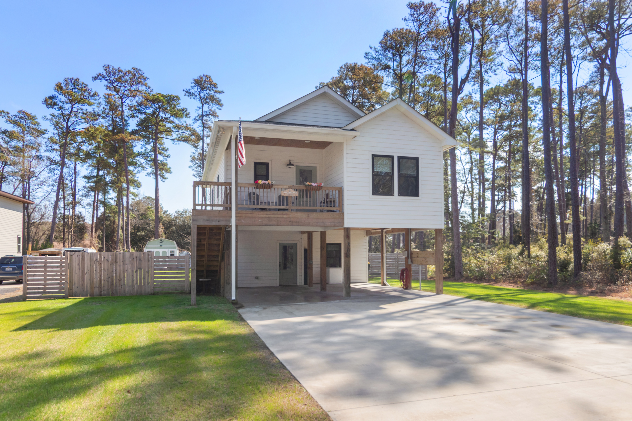 Absolutely gorgeous, better than new construction! Enjoy all the perks of new construction with the added features of mature landscaping, a fully fenced huge back yard, new gutters and a large storage building! This wonderful home features high end finishes sure to please, a well-appointed kitchen with stainless appliances and thoughtfully selected fixtures and an outdoor space perfect for relaxing! The Upstairs entryway leads to the master bedroom, main floor laundry, a beautifully tiled bath and a spacious open concept living room and Kitchen with access to the large deck overlooking the serene back yard. Downstairs there are two additional bedrooms with a jack and jill bath. Dry entry with ample parking under the house. Close to the dog park, NC Aquarium, and a short trip to downtown Manteo. Call today to schedule your showing!