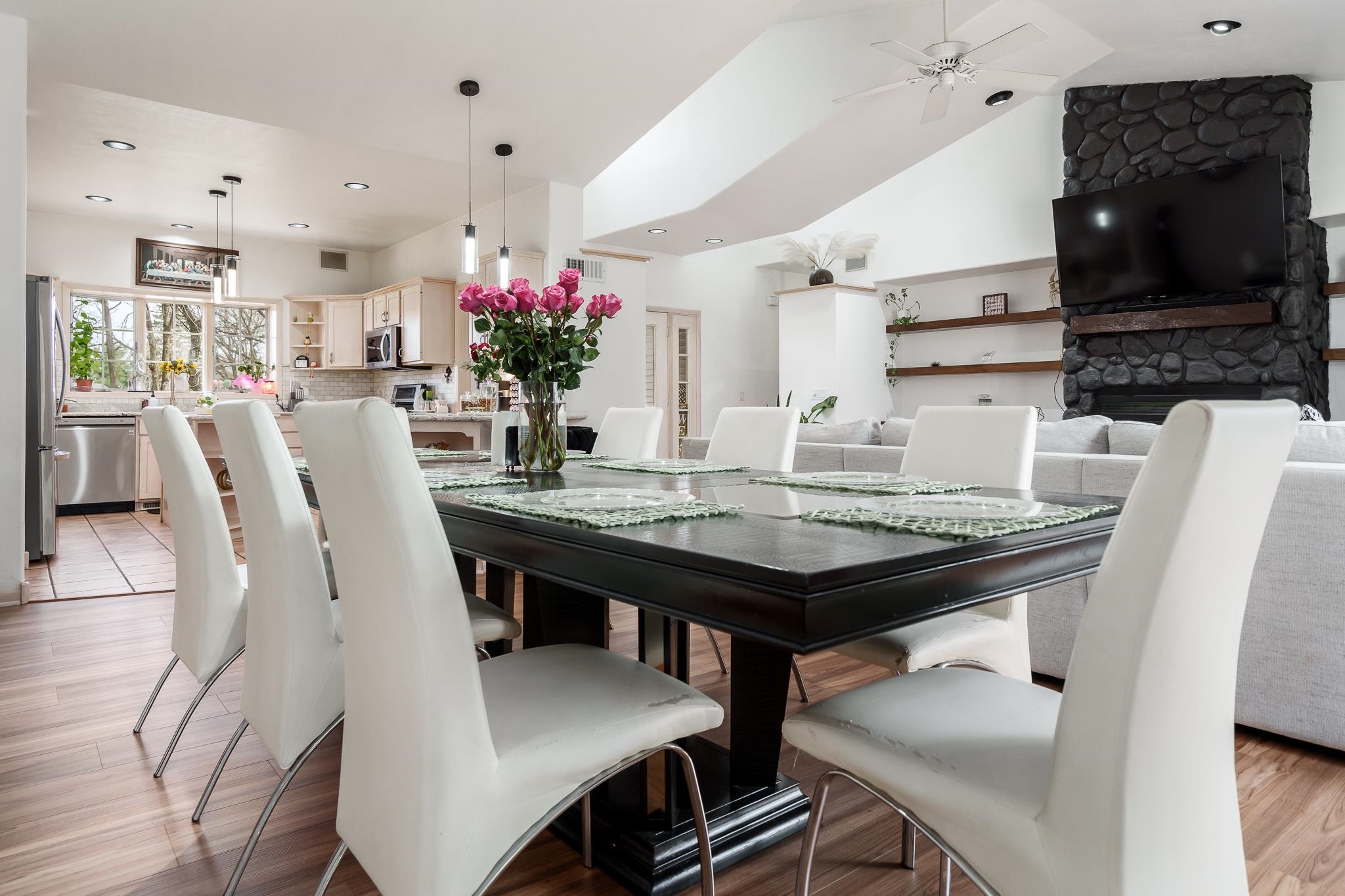 PRICE IMPROVEMENT! The Sellers just knocked 15,000 off the price AND have also decided to GIFT you the Refrigerator, Washer, Dryer, & Movie Theater Screen. If this house was already on your radar, NOW is your moment. This stunning gem is about to hit the market, and it's sure to make hearts skip a beat! This beautiful five-bedroom, three-bathroom, 2,456 sq. ft. home is designed with comfort and style in mind. As you step inside, you'll be greeted by an open floor plan with gorgeous luxury vinyl planks throughout the first floor. Natural light floods the spacious rooms, highlighting the bright white kitchen cabinets that are perfect for holiday gatherings and daily living alike. Imagine relaxing on the expansive front porch or enjoying the private backyard that has no neighbors behind it, offering serene mountain views as the sun rises and sets. The huge backyard, complete with space for future pool and spa, provides endless potential to create your own private oasis. Whether it's entertaining under the covered patio or unwinding on a quiet evening, this space has it all.With ample parking, including RV potential, a whole-house water softener, and no HOA, this home combines luxury with convenience. Plus, it's close to popular shops, restaurants, and outdoor recreational activities, making it ideal for those who love both adventure and relaxation. As a bonus, one bedroom has been transformed into a cozy movie theater room, perfect for family movie nights or entertaining guests.Don't miss the chance to make this dream home your reality!