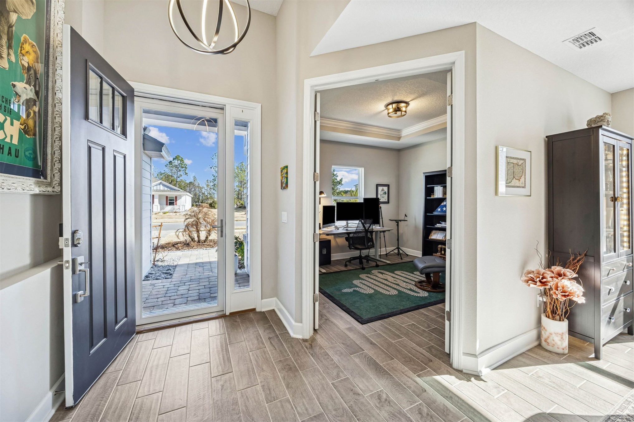 Better-than-new single-story home in the highly desirable Kingsley Creek community (NO CDD!), just minutes from Amelia Island beaches, dining, and shopping. This thoughtfully designed 3-bedroom plus office floor plan offers both functionality and style with open living spaces and quality upgrades throughout.