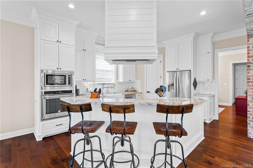 This well-maintained 4-bed, 3.5-bath home offers fresh neutral paint, a spacious layout, and upscale finishes throughout. The inviting living area features brick accent walls, built-in storage, and a cozy fireplace, flowing seamlessly into the open kitchen with high-end appliances and a large eat-in bar.