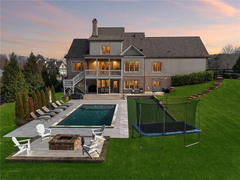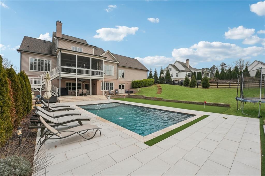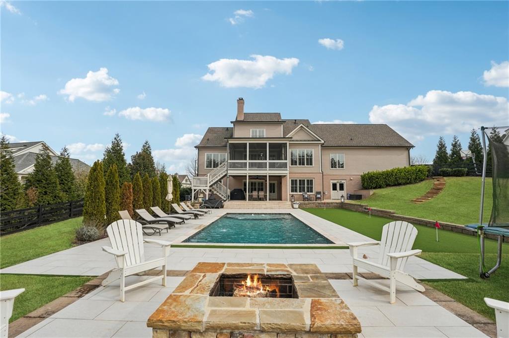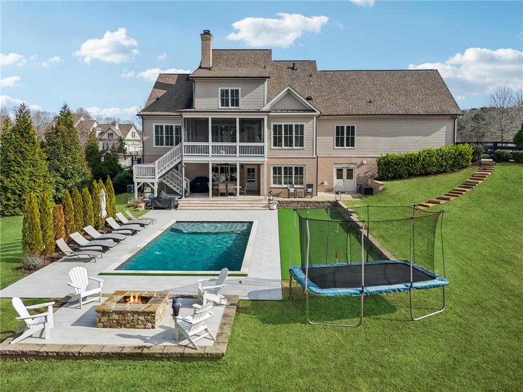Location, Lifestyle, Layout! This gorgeous property is loaded with thoughtful DETAILS inside and out. Primary and guest suites on main. SALTWATER pool, putting green, firepit, finished terrace level. Four COVERED porches. Professional series Thermador appliances. Real HARDWOODS throughout main and upper levels. Convenient and spacious LOFT upstairs. Private, gated community. 1.03 acres w/ a LEVEL and extra wide driveway. Lush Fescue grass in front yard for year-round CURB APPEAL. Professional landscaping, hardscaping and beautiful evening light scaping. PRIVATE, scenic and fully fenced backyard. Stay-cool and slip resistant tile surrounding entire pool. Water bubblers and arched fountains for enhanced visual and relaxation effects. Patio and poolside movies, sports, etc. via rotating and retracting outdoor TV screen. Expansive backyard. Effortless inside/outside entertainment spaces on terrace level. Fireside TV room adjacent to large game room and bar on terrace level. Oversized guest bedroom and full bathroom on terrace. Dedicated kid's sleepover space with TV. Large home GYM can flex into office space, bedroom, media room and more. Organized storage space in unfinished terrace area. Rare 9' tall garage doors (Yes, that lifted pick-up truck can park inside!). EV charging station. Separate friendship entry and MUDROOM w/ Brick Flooring. Private powder room. Large, multi-purpose laundry room on main drenched in natural light. Chef's kitchen w/ 48 gas range w/ griddle and DUAL OVENS. Custom kitchen cabinetry w/ SOFT CLOSE drawers and doors. Walk-in pantry. Breakfast room with 3 walls of windows overlooking the pool & backyard. Guest suite on main is easily convertible into a scullery/2nd Kitchen. Spacious dining room w/ authentic shiplap. Oversized living room w/ stone fireplace, BEAMED ceiling and custom built-Ins. SCREENED porch with 24/7 serene sights and sounds from the pool and backyard oasis. Casually elegant primary suite w/ beautiful pastoral views. LUXURIOUS primary bath w/ spa- inspired glass shower and stand alone soaking tub. Custom primary closet. Large, central loft upstairs provides another living room for teens or guests. All secondary bedrooms have WALK-IN CLOSETS. When in need of restaurant or retail therapy, it's only a short drive to multiple popular destinations, including Milton/Crabapple and Downtown Alpharetta. Plus, all drives include SCENIC, romantic winding roads, horse farms and the cutest baby goats you've ever seen! To boot, premier schools enhance the short-term and long-term value of this exclusive property. Schedule your showing today.