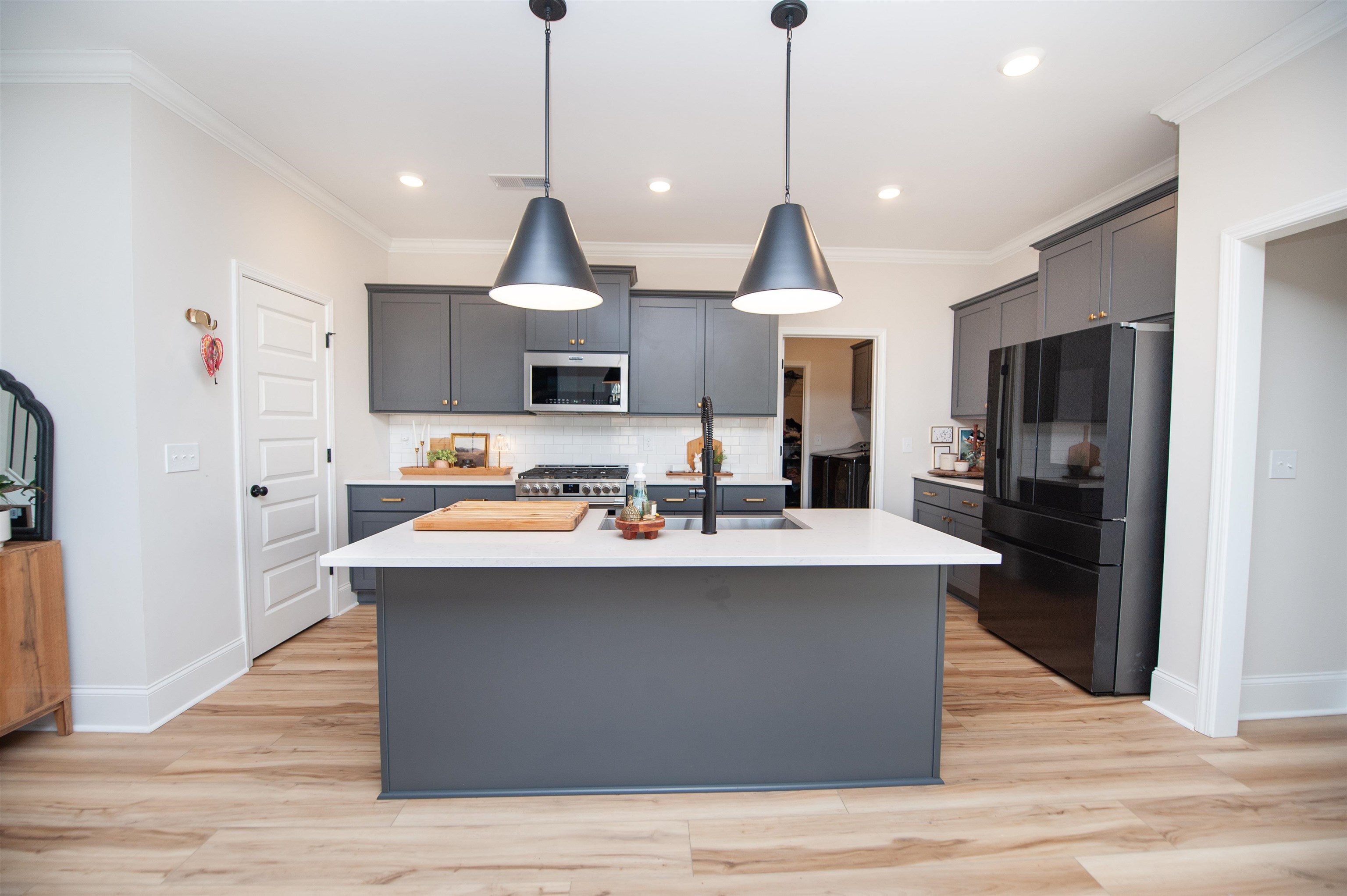 WELCOME TO YOUR READY TO MOVE IN HOME. Right close to the 215 north. 4 bedroom with 2 full bathrooms upstairs and 1 half a bath downstairs. Down stair has a den for an office space or convert into another room. ALL APPLIANCES included. Washer and dyer, dish washer, gas stove, microwave and refrigerator with a built in TV. Garage with redone epoxy included EV charging outlet. Tankless water heater located in the garage. Confirm agent with all dimensions of the rooms.