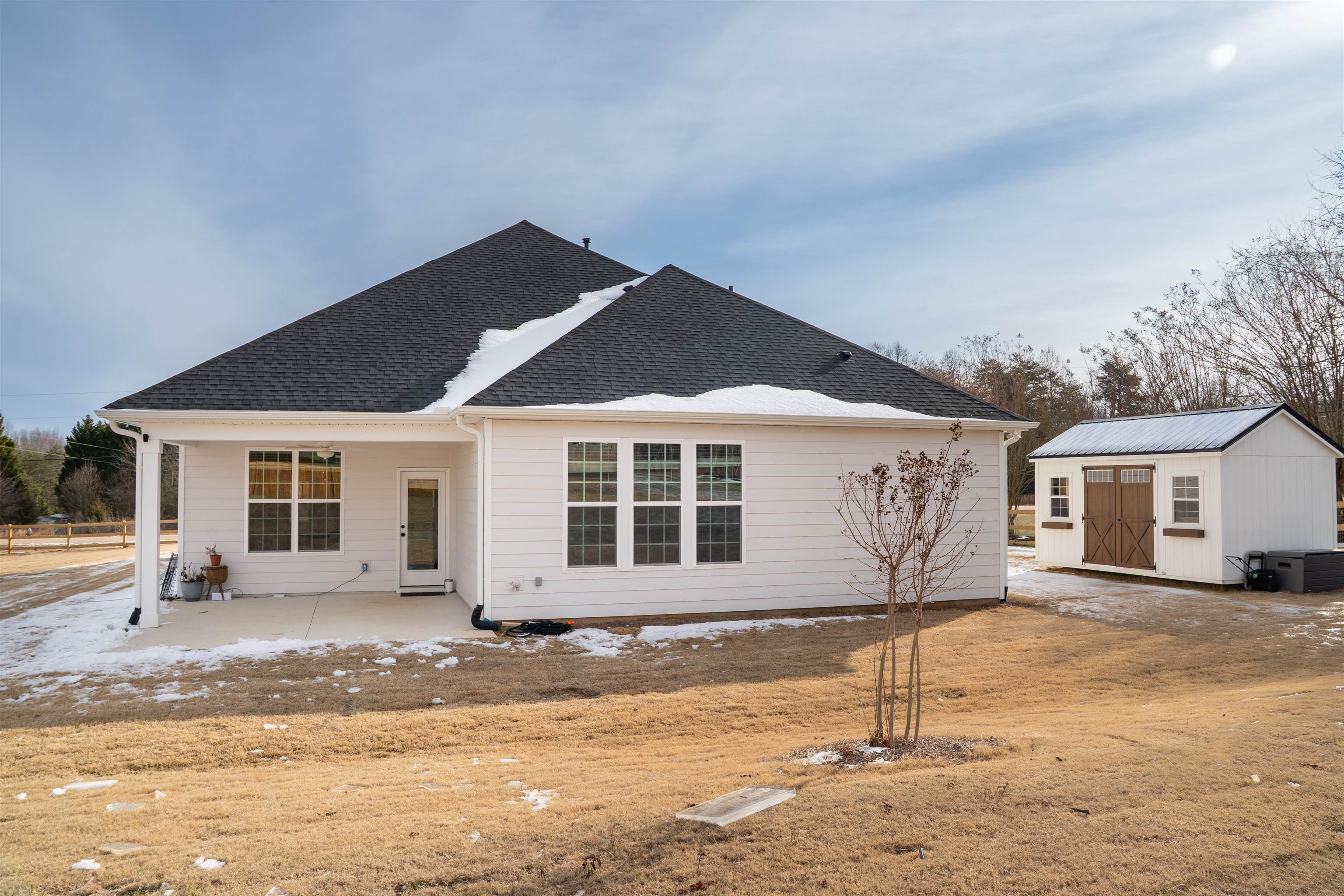 Welcome to this move-in ready home offering 4 bedrooms and 3.5 bathrooms, all conveniently located on the main level, along with a multipurpose room providing flexible additional space. Set on over 1.5 acres with no restrictions, this fully fenced property invites you to enjoy open space, privacy, and a variety of lifestyle possibilities. A farmhouse-style shed coveys with the property, adding to the property's charm and functionality. With plenty of room to create your own vision whether outdoor living, gardening, or a small farm-style setting this property offers a rare opportunity to enjoy space, flexibility, and comfort in a peaceful setting.