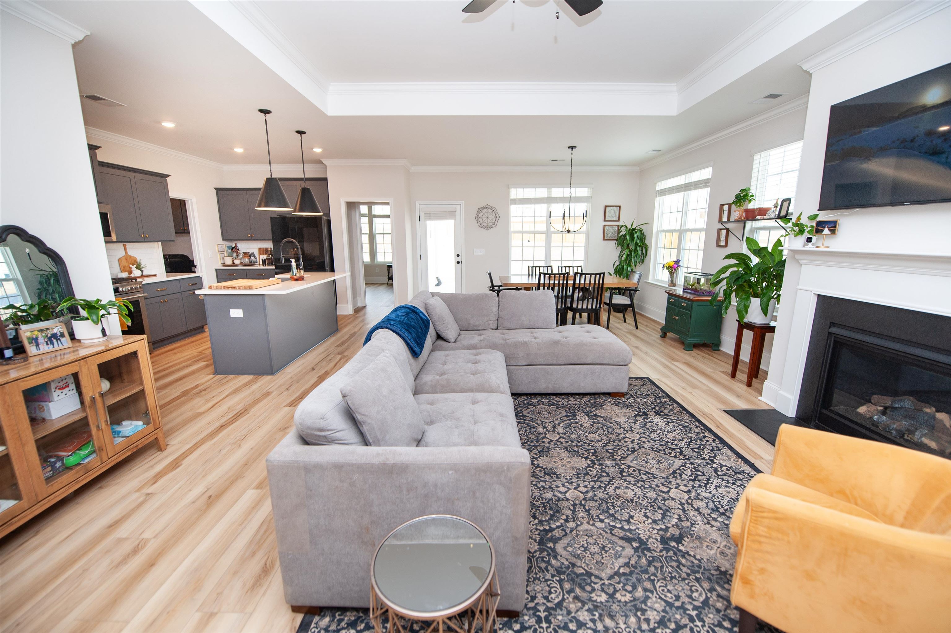 Located in a desirable master planned community within the Dakota Valley School District, this well maintained 2004 ranch offers over 3,400 finished square feet with 4 bedrooms, 3 bathrooms, and a 3-car garage. Situated on a great lot with no neighbors behind, the home provides added privacy and open views. The main level features extensive updates, including a brand new kitchen with custom cabinetry, luxury vinyl plank flooring throughout most of the main living areas, new carpet in the bedrooms, recessed lighting, updated light fixtures, and fresh interior paint. Enjoy the warmth of the gas fireplace and the convenience of an eat-in kitchen. The primary suite is privately positioned on its own side of the home and includes a spacious bathroom and large walk-in closet. The fully finished basement offers a generous family room, beautiful built-ins, an additional large bedroom (4th), a third full bathroom, and an ample storage area. Exterior updates include freshly painted siding, and a fully fenced yard with mature trees. Room sizes are approximate.