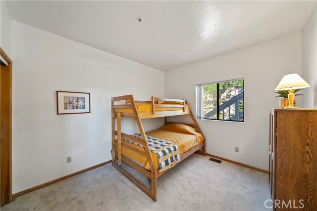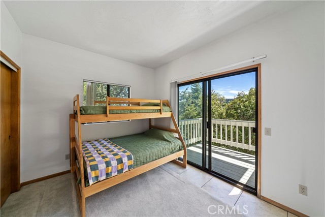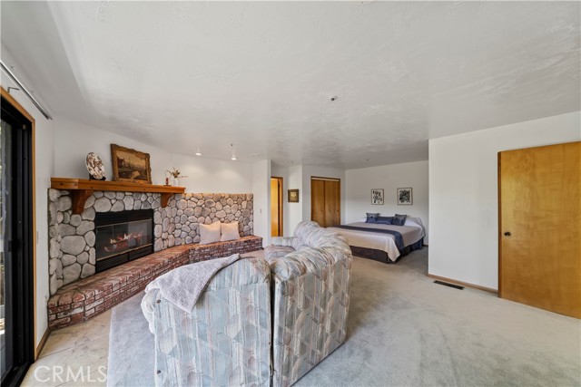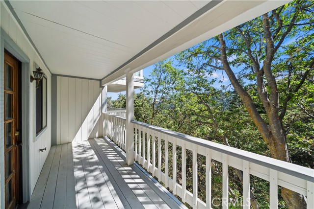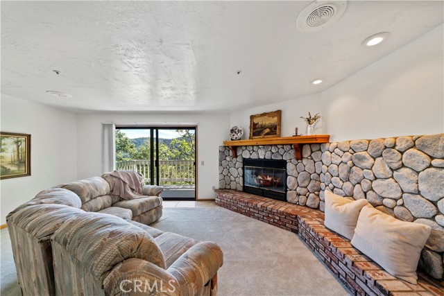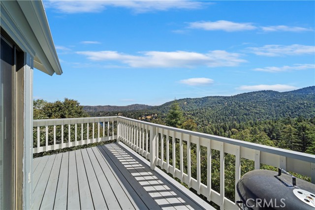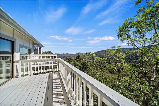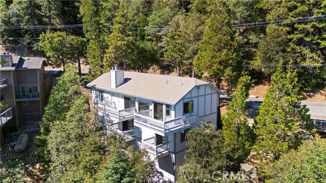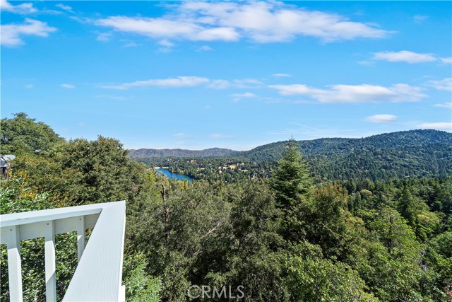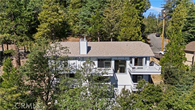 Nestled in the forest is your opportunity to own a mountain chalet with VIEW of Lake Gregory. Step through the foyer and take in the views from the windows and doors. Spacious living room for gathering of family & friends, enjoy an evening by the beautiful stone fireplace with extra seating on raised hearth, or enjoying a movie night, adjoining bay window seating area that beckons you to relax and read a book, sit out on the walk on deck and take in the view of forest and maybe some bird watching, Invite family and friends over for dinner in your formal dining room with a walk-on deck perfect for a BBQ, or take in the early sunrise in the morning with a cup of coffee, or maybe star gazing in the evening. Great kitchen with ample counterspace and cabinetry, new dishwasher, 5 burner gas cooktop, trash compactor, convection microwave, oven, refrigerator/freezer, breakfast bar including the bar stools. Powder room as well. The second level features a private primary en-suite with living area with walk-on deck perfect for relaxing, amazing fireplace with raised hearth and mantle, bedroom area has two closets, adjoining primary bath features dual vanity, step up separate soaking tub with massaging jets, separate walk-in shower, walk-on deck off bath, walk in closet, and your own private sauna. 1st secondary bedroom has window with view and two closets, 2nd secondary bedroom has its own walk-on balcony with view, Plus a inside laundry room that includes the washer and dryer, 3rd level is a spacious bonus room with a pool table plus area with table perfect for playing cards, games, puzzles or eating area. The flooring at the table area is tiled. Remaining room is carpeting, large area for kids to play, storage area under the stairway perfect for toys, games, etc. Plenty of room for family and friends over for the weekend, holidays, etc. There is a two-car garage with automatic opener and the driveway can hold two additional cars. Close to Lake Gregory with water park, swim beach, Lake trail, Skate park, boating, kayaking, paddle boarding and dog park. Property is perfect for short-term rental or year round living.You will be proud to call this home, don't miss this great opportunity to call this YOUR Home