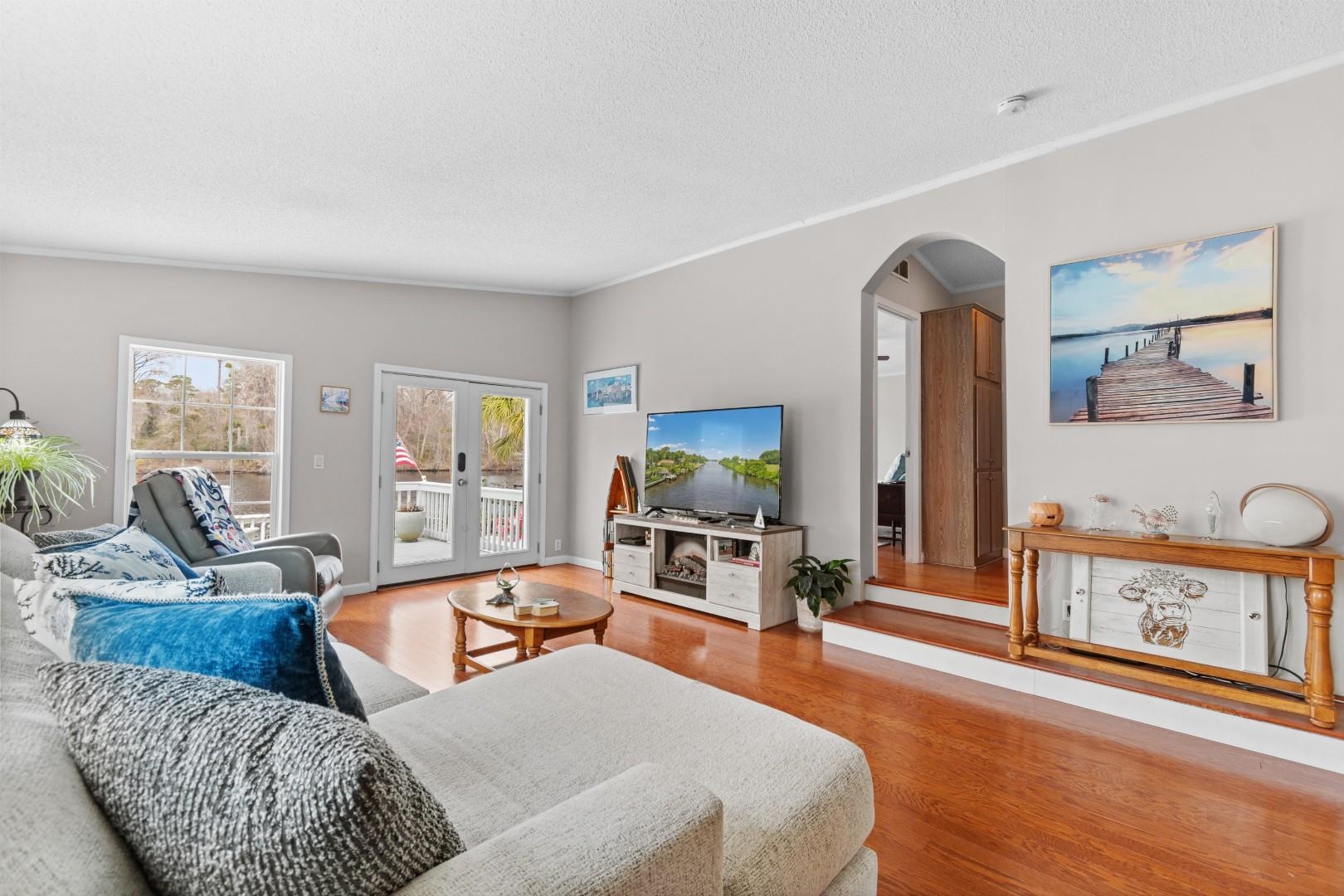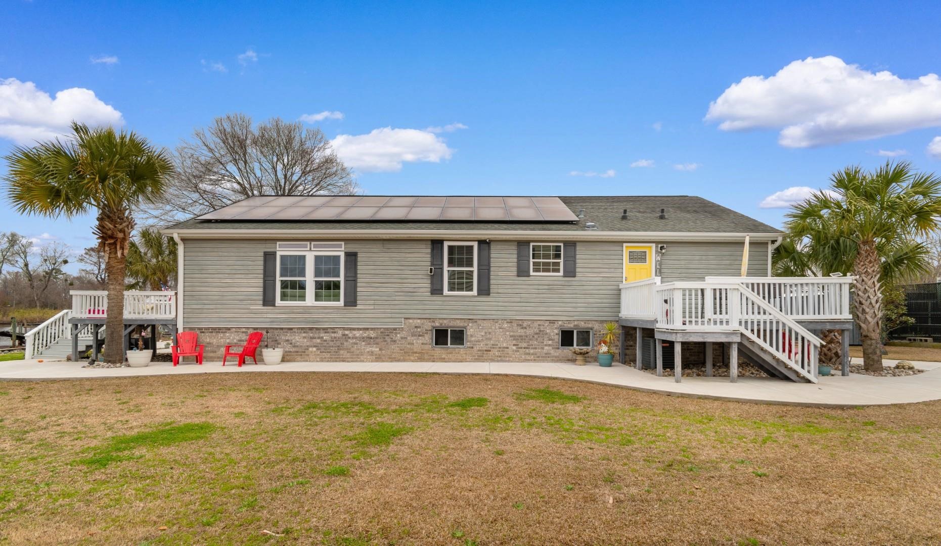 If you've been dreaming of life on the water but want something truly unique and completely move-in ready, this custom-designed home in Inland Reef is a rare find. Located in the sought-after Inland Reef Intracoastal Waterway community within the established Watson's Riverside neighborhood in Myrtle Beach, this 3-bedroom, 2-bath custom manufactured home was designed specifically for this waterway lot. Engineers reworked the layout to create larger-than-average bedrooms and an open floor plan that feels spacious, comfortable, and perfect for entertaining. The 7/10 pitch roof adds architectural character and provides valuable attic space--something you don't often see in homes like this. Nearly every inch has been remodeled over the past four years. The kitchen has been beautifully updated with new countertops, refreshed cabinet doors with soft-close drawers, updated outlets and faucets, and brand-new Samsung appliances including a refrigerator, induction stove, and microwave installed in January 2026. The primary bath features new sinks and faucets, a tiled shower with frameless ShowerGuard glass doors, and updated vanity doors and hardware. New double-hung windows brighten the great room and dining area, and the great room flooring was replaced in 2025. Major improvements bring peace of mind, including solar panels installed in 2021, partial roof replacement in 2023, multiple HVAC updates through 2024, and a new irrigation pump. Outside, mature palms create a private coastal setting. Deck boards were replaced in 2023, and the floating dock was completely reboarded with new hardware in 2025. A private beach area, patio, and hot tub make this home perfect for relaxing or entertaining along the water. Hardscape additions, a French drain system, driveway extension, and concrete walkways were added in 2025 for proper drainage and convenience. You're less than three miles from The Market Common, 4.8 miles to the beach, 6.6 miles from Myrtle Beach International Airport, and under five miles to Highway 31 for easy access from Georgetown to North Myrtle Beach. This isn't just a home---it's a thoughtfully redesigned waterfront retreat where the updates are done, the setting is private, and the waterway lifestyle is waiting!