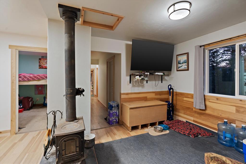 BEAUTIFUL LAKEFRONT HOME! SO MANY updates! Huge windows in the main/open living area to take in the serene view & wildlife. 4 beds, 2 baths family room. NEW LVP floors, carpet, interior paint, newer kitchen & baths many new windows. Fish for Rainbow trout off 2 docks, swim, & ice skate/cross country ski in winter. NEW HUGE deck, carport for boat & lg raspberry patch. Energy efficient utilities.