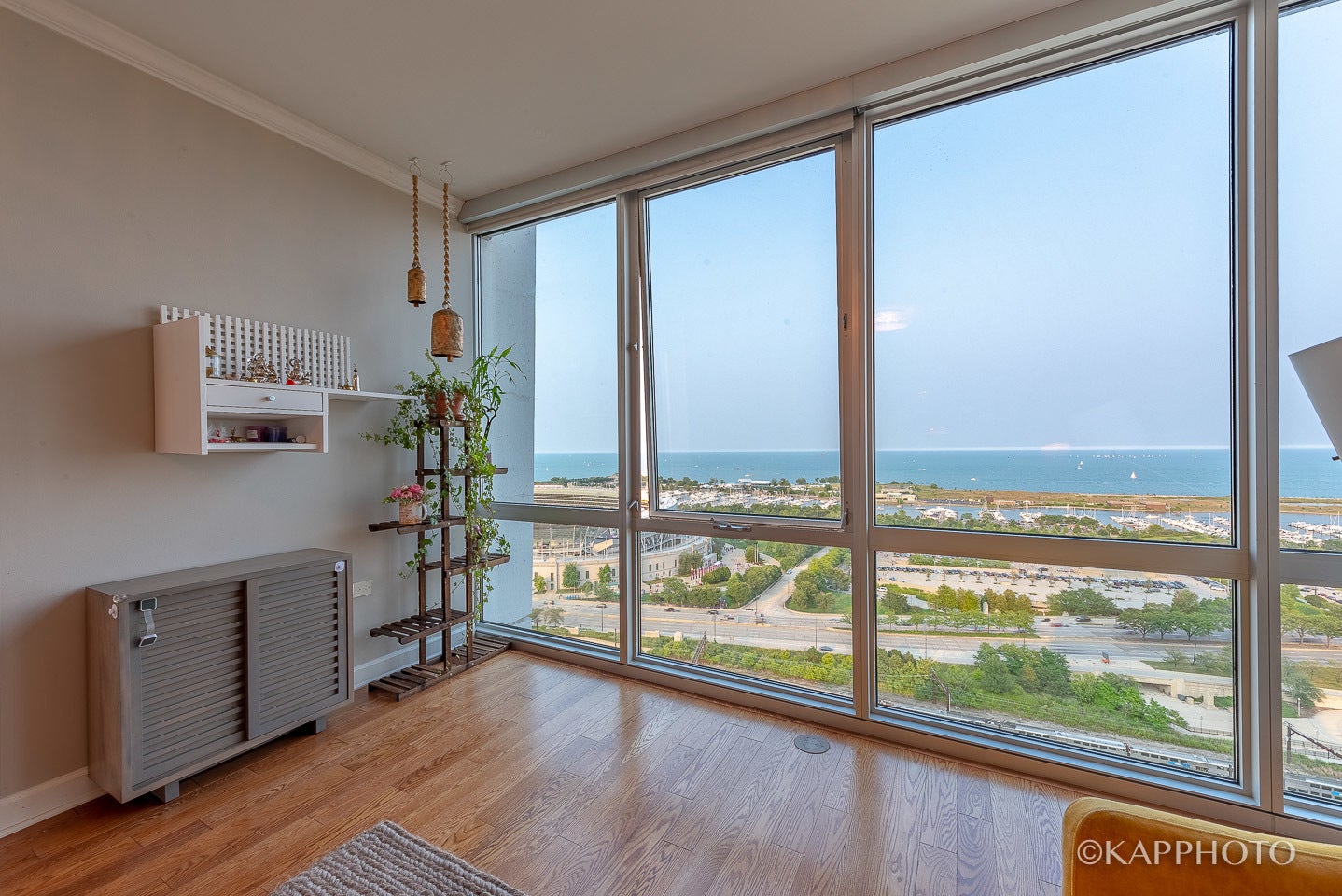 Welcome to this stunning, sun-soaked 2 bed/2 bath den oasis with lake views from the 25th floor! This thoughtfully-designed home is located in one of South Loops best full-amenity buildings, featuring 24/7 doorstaff, rooftop terrace and pool, exercise room, and an all-inclusive HOA.