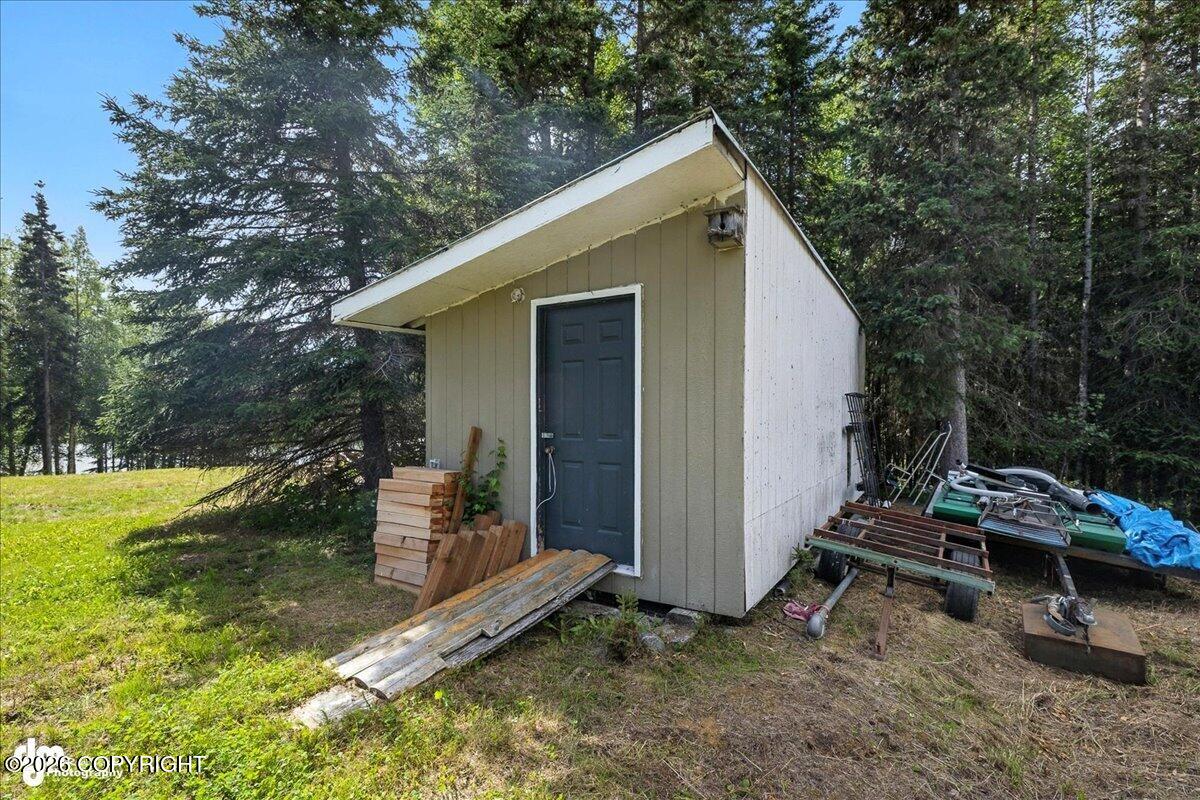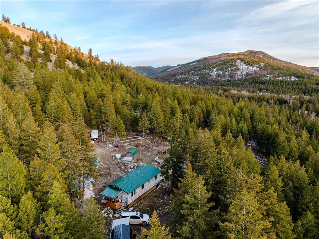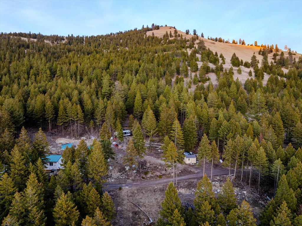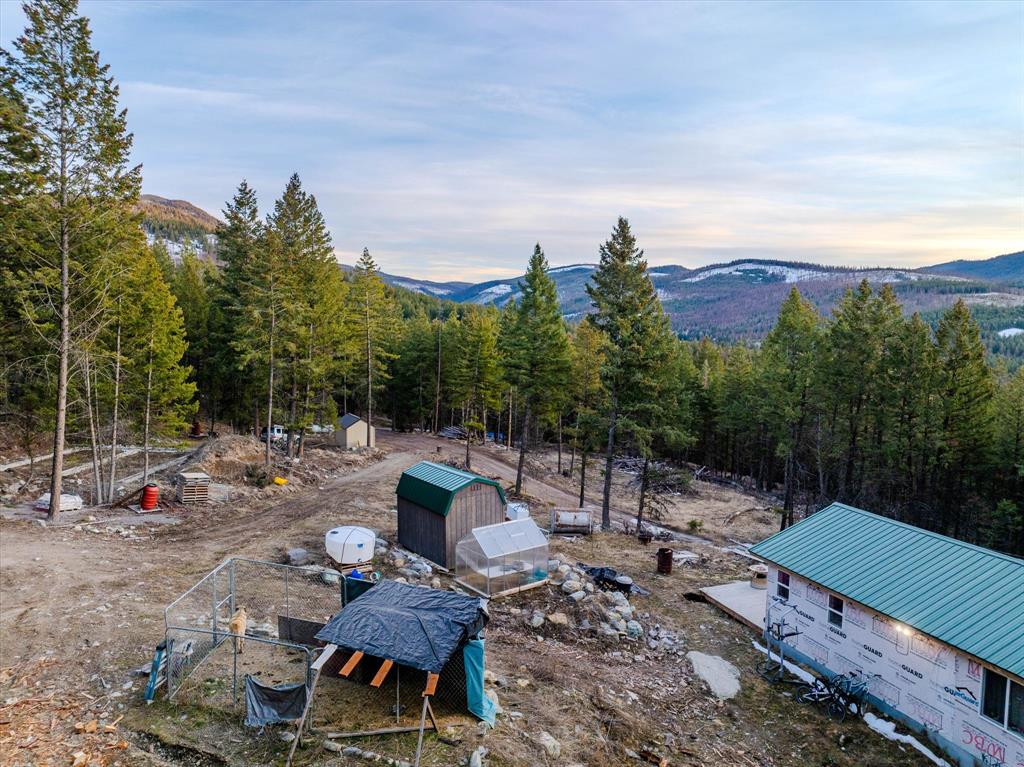 This currently off grid property has so much potential with 20 acres of privacy and with no HOA or covenants, your vision can become a reality. A lot of improvements and hard work have already been put in place by the current owners including clearing and road work, an oversized septic system approved for a 3 bedroom house, a 2 bedroom cabin, and a personal RV, a new well (no pump or power), 30x40 concrete footers for a single level home, and an existing 2 bedroom/1 bathroom cabin that can be lived in while building your dream house then later used as a quest cabin or rental unit for extra income. The current cabin is cozy and comfortable and features a central wood stove, full bathroom, kitchen with propane appliances, a large primary with office and walk in closet, an additional bedroom, and an extra flex room that is currently being used as a bedroom. The sellers are also including three storage sheds with a 4th being negotiable, a small greenhouse, and a gas generator for power. Of the 6 sheds, a brown 8x12 shed, a 10x16 wood shed, and 8x8 plywood shed, and a small greenhouse all convey with the sale. An 8x12 plywood shed with residential door and window is negotiable.