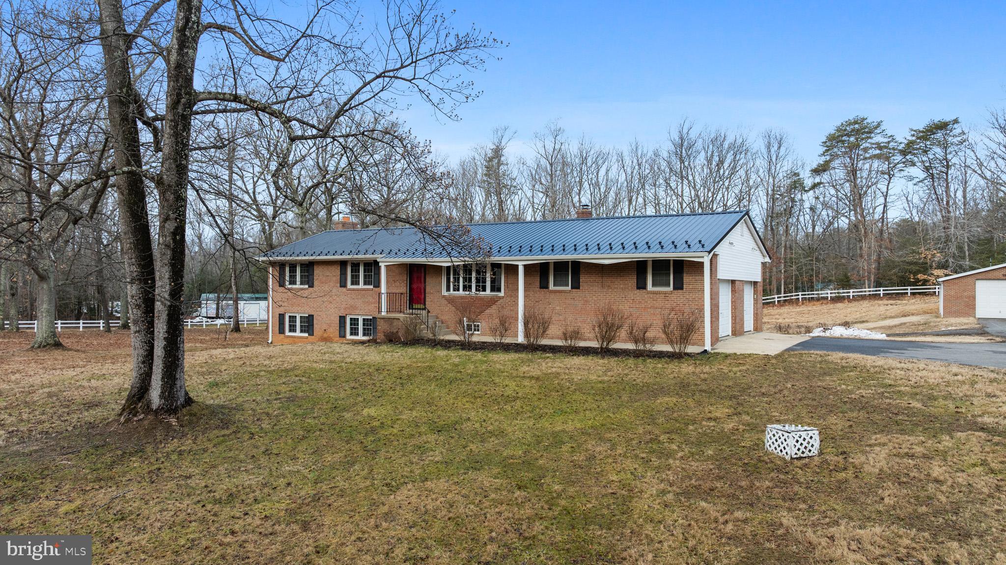 Welcome Home to this almost 2,500 sq ft all brick rambler in sought after Waldorf on over 3.5 acres!! The main level is designed for entertaining and convenience, with a spacious living room w/ bay window, dining room and hardwood flooring throughout. Slider to vinyl deck off of dining room. Kitchen with side by side fridge (2 years young), granite, and backsplash. Make your way down the hall to primary suite with primary bathroom. 2 more additional bedrooms and hall bath. Downstairs you will find spacious rec room w/ brick walls, 4th bedroom, full bathroom, laundry, and second kitchen! Great space as an in-law suite or just second level living! Retreat at the end of the day in your own private backyard oasis w/ flat / cleared lot, 20x40 detached garage with generator (for water elec and heat) and vinyl fenced in yard. ALSO... 2 car attached garage!! Metal roof replaced in 2024!! Close to shopping, dining and more! Better hurry this one wont last long!