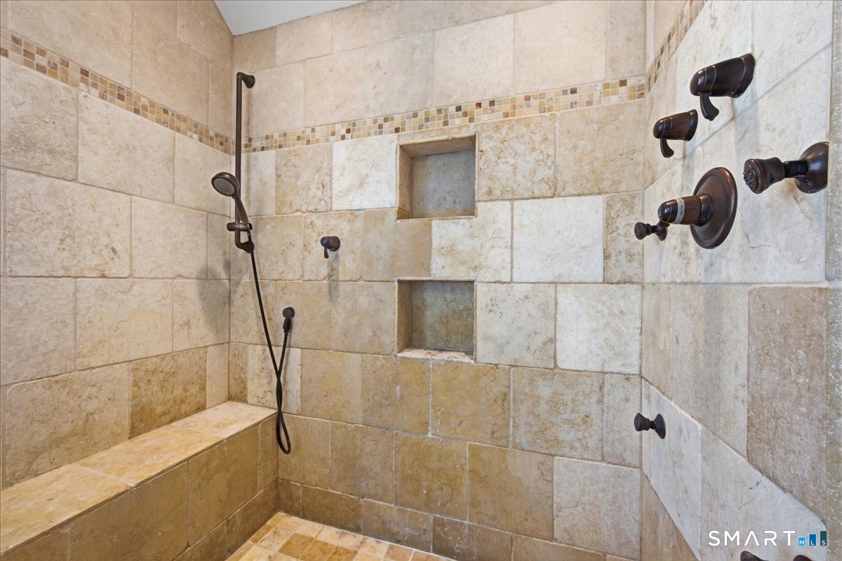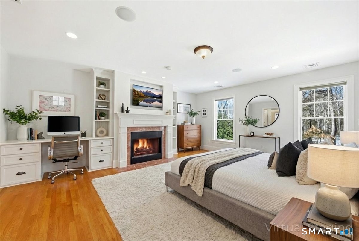 Welcome to 17 Bittersweet Way, located on a peaceful cul-de-sac in historic Stonington, Connecticut. This exquisite custom-built Colonial, constructed in 2006, sits on just over three acres and offers nearly 4,000 square feet of living space across three floors. The first floor features a spacious, inviting living room complete with a gas fireplace and large Thermopane windows that fill the home with natural light. The open kitchen boasts a generous center island, a Sub-Zero refrigerator, a Wolf cooktop, and other modern appliances-perfect for everyday living and entertaining. Adjacent to the kitchen is a wine storage and dry bar area that leads into the main dining room. Beautiful wood flooring flows throughout, while the southern-facing exposure ensures abundant sunlight in every room. Upstairs, the large and elegant primary suite showcases a gas fireplace, two walk-in closets, and a full bath with a large, spa-like shower featuring a rain showerhead, along with separate sink and toilet areas. This level also includes two additional bedrooms, a full bath, and a convenient laundry room equipped with a built-in fold-out ironing board. A spacious family room provides an ideal setting for reading, watching television, or simply relaxing. The third floor offers exceptional flexibility. With ample space, natural light, and a full bath, it can function as a guest or in-law suite, a spacious home office, and/or a workout studio.