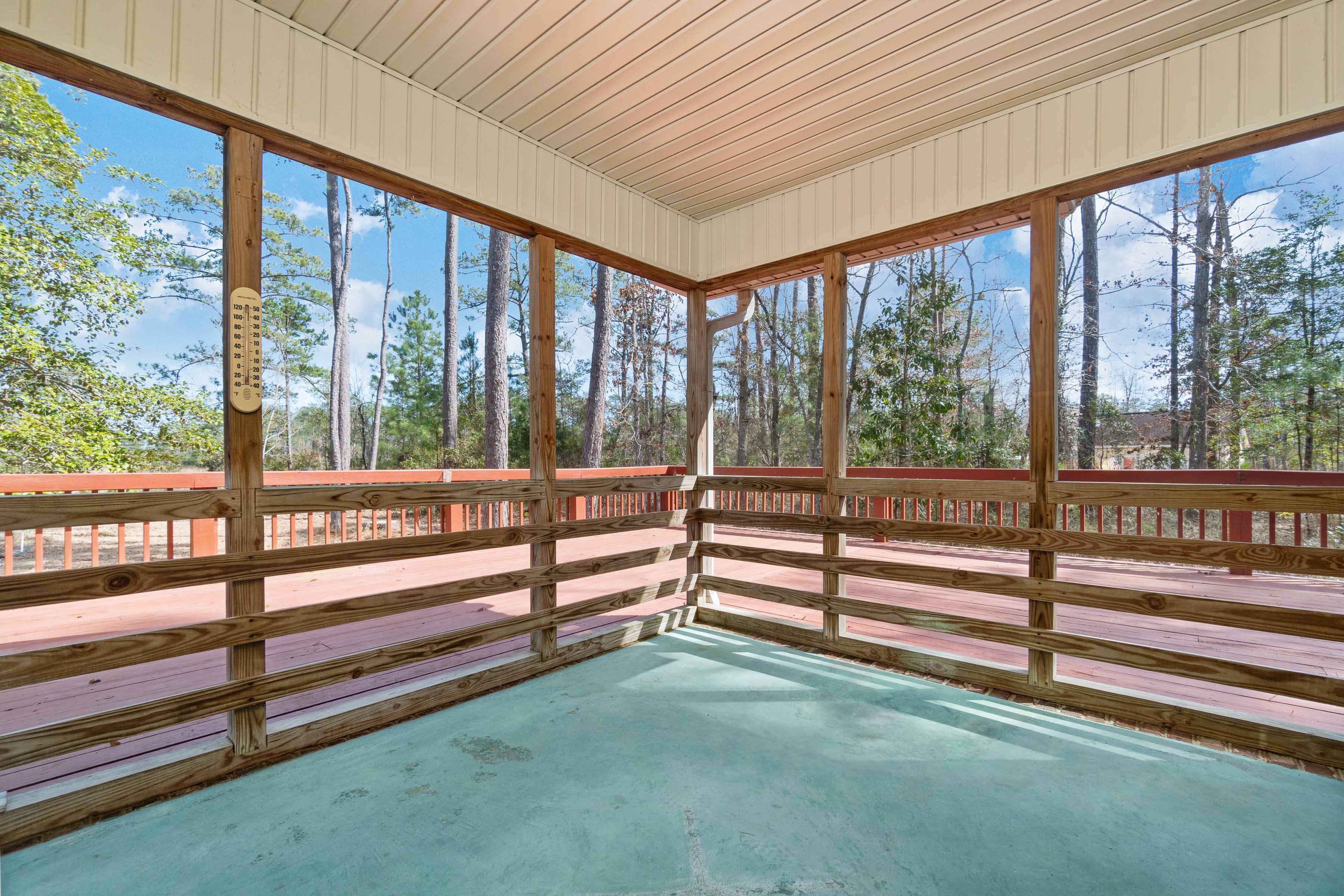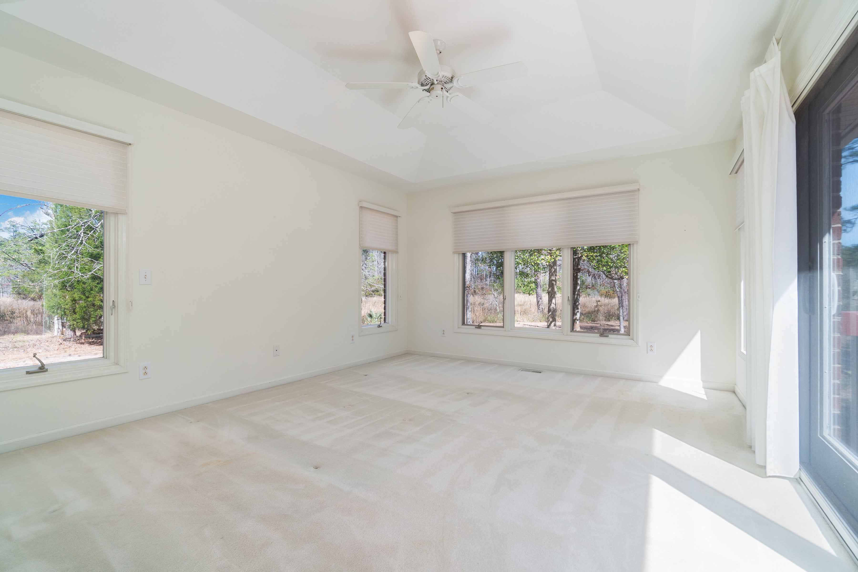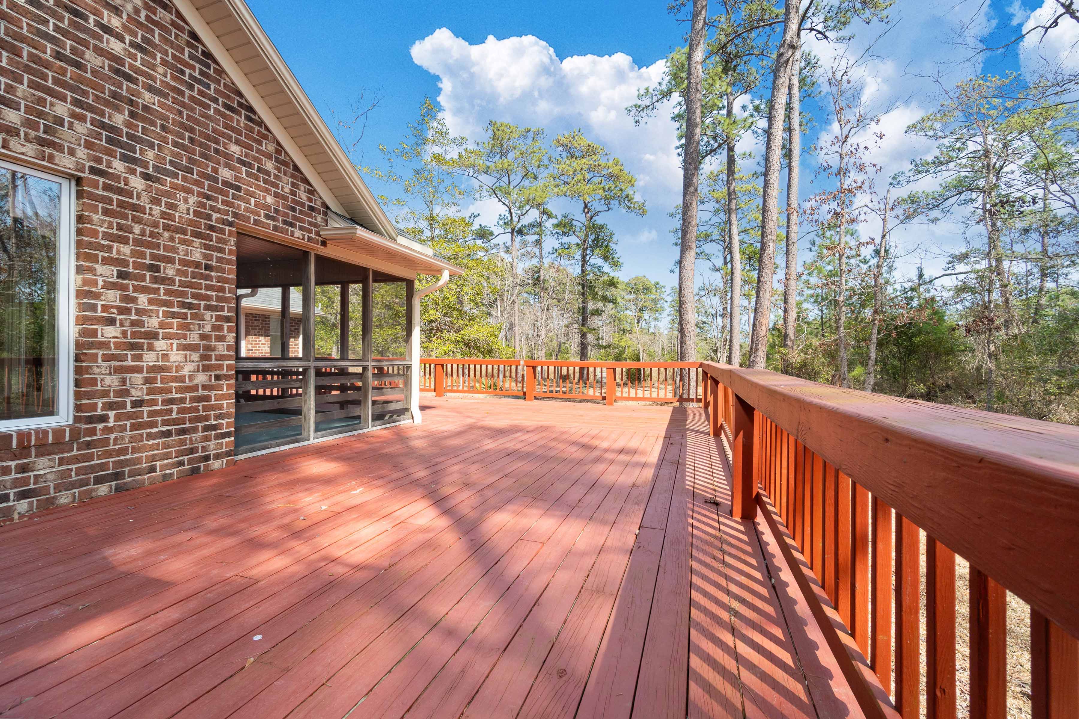 Welcome home to this refined, all-electric 3-bedroom, 3-bath home in the Estates at Marcus Lake, fully furnished and move-in ready, offering 2,467 sq ft. total under the roof, featuring a wide foyer and expansive open rooms with 9-10 ft ceilings, double-pane windows, luxury vinyl plank flooring, and elegant crown molding (excluding guest rooms). Built with a Hardie board exterior and soffits, brick foundation on a deep slab, architectural 3D shingles, rain gutters, and a 22 ft wide driveway with oversized package mailbox, the home offers two private primary suites with spa-inspired shower systems, bidets , custom tile, designer flooring, and custom vanities, plus custom closet shelving, bespoke living-room cabinetry, a 72 ceiling fan, and an 85 TV. The chefs kitchen is a showpiece with high-end appliances, soft-close custom cabinetry with choice of hardware, quartz countertops, a custom backsplash, and an LED-lit island, while the two-car stone-front garage features a foam-insulated door and epoxy-coated floor. Outdoors, enjoy a sprawling privacy -fenced backyard overlooking a stocked waterfront pond with bass, tilapia, catfish, and more, with ample space for a future pool, playhouse, additional garage, or storage building, plus an open patio with ceiling fan, a custom wood deck, and a separate custom wood dock leading to the pond, perfect for entertaining, relaxing or enjoying the peaceful waterfront lifestyle, sip your morning coffee with pond or backyard views, watch sunrises and sunsets, or gaze at the stars at night. Conveniently located near everything and just minutes from white sandy beaches, this home perfectly combines elegance, style , and waterfront living, with all new furniture and electronics conveying. Experience this exceptional lifestyle in person today!