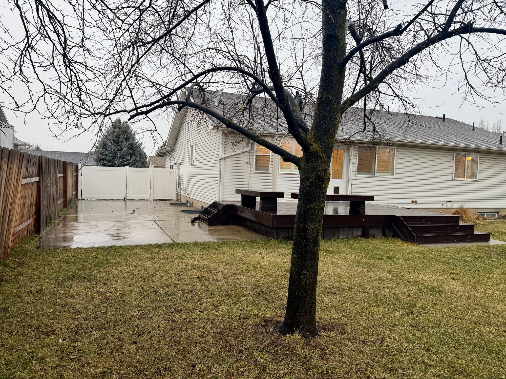 This 3-bedroom, 2-bath home features a functional layout and a spacious backyard. Entry living room leads into an open kitchen with ample cabinetry and a breakfast bar, joined by a family room that opens to a covered patio. The primary bedroom has a private bath and own entry to backyard; two additional bedrooms share a second bathroom. Recent updates include a new HVAC system, electrical box and wiring, water lines, and exterior fencing. The backyard is ideal for kids, pets, or gatherings, with a cemented covered alumna wood patio and low-maintenance landscaping.