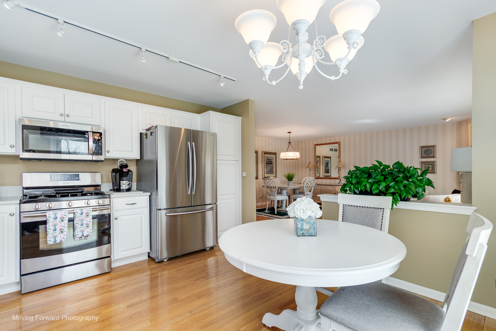 Welcome to this beautifully updated three-level condo townhouse in sought-after Cardinal Square. The main level features an open-concept living and dining area with hardwood floors, recessed lighting, and large windows. The updated eat-in kitchen offers rich espresso cabinetry, granite countertops, a classic tile backsplash, providing ample storage and prep space.