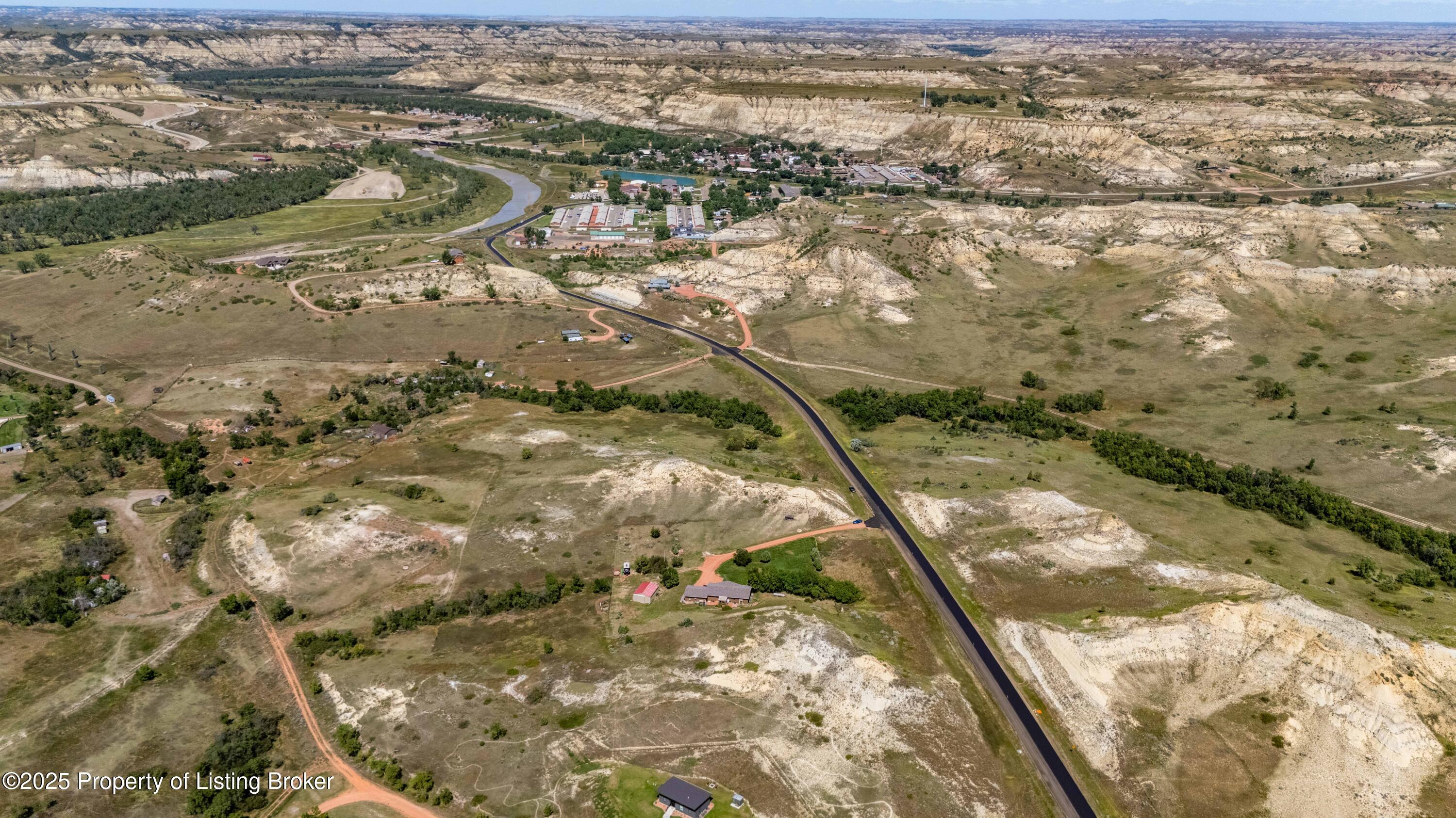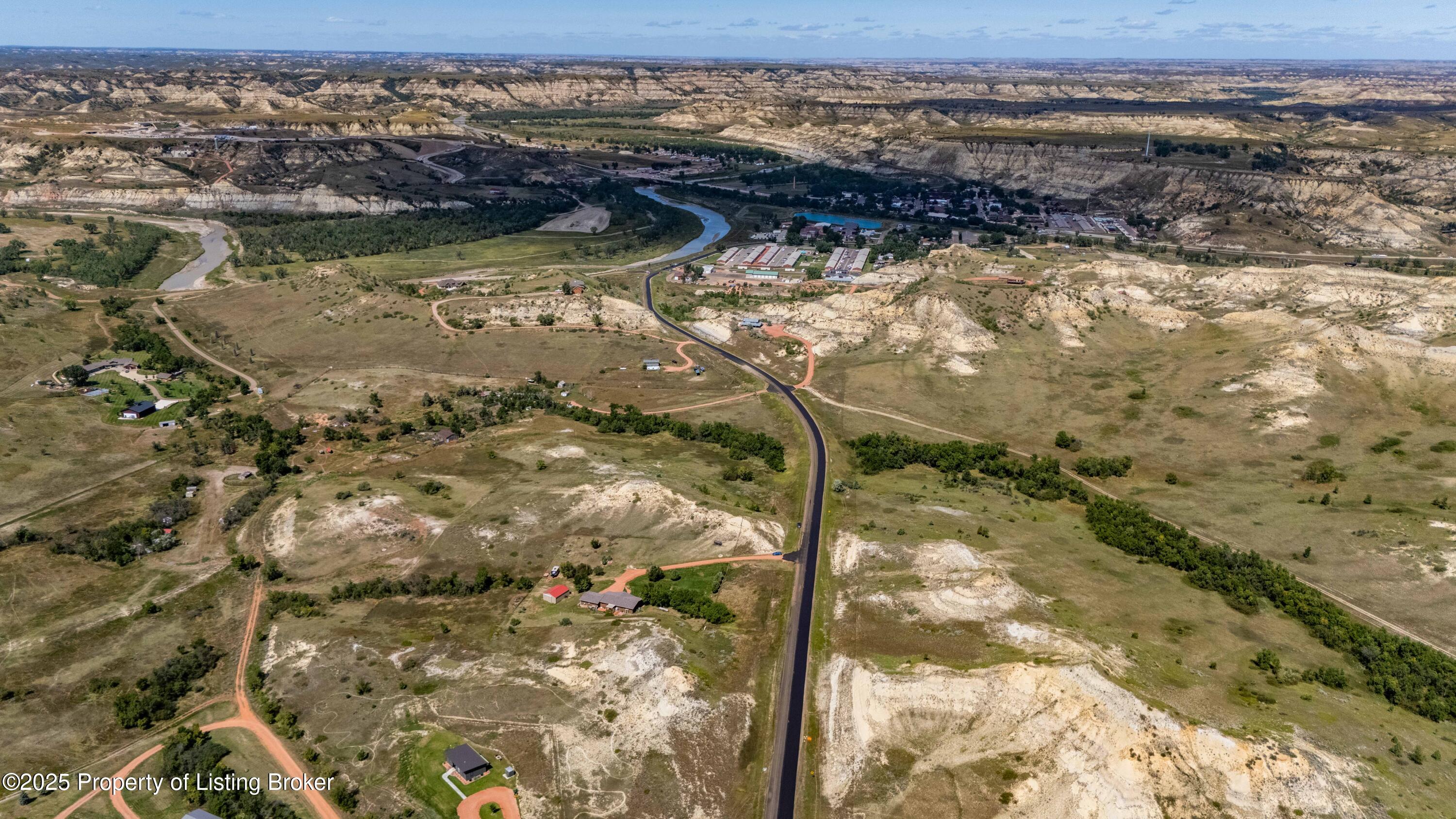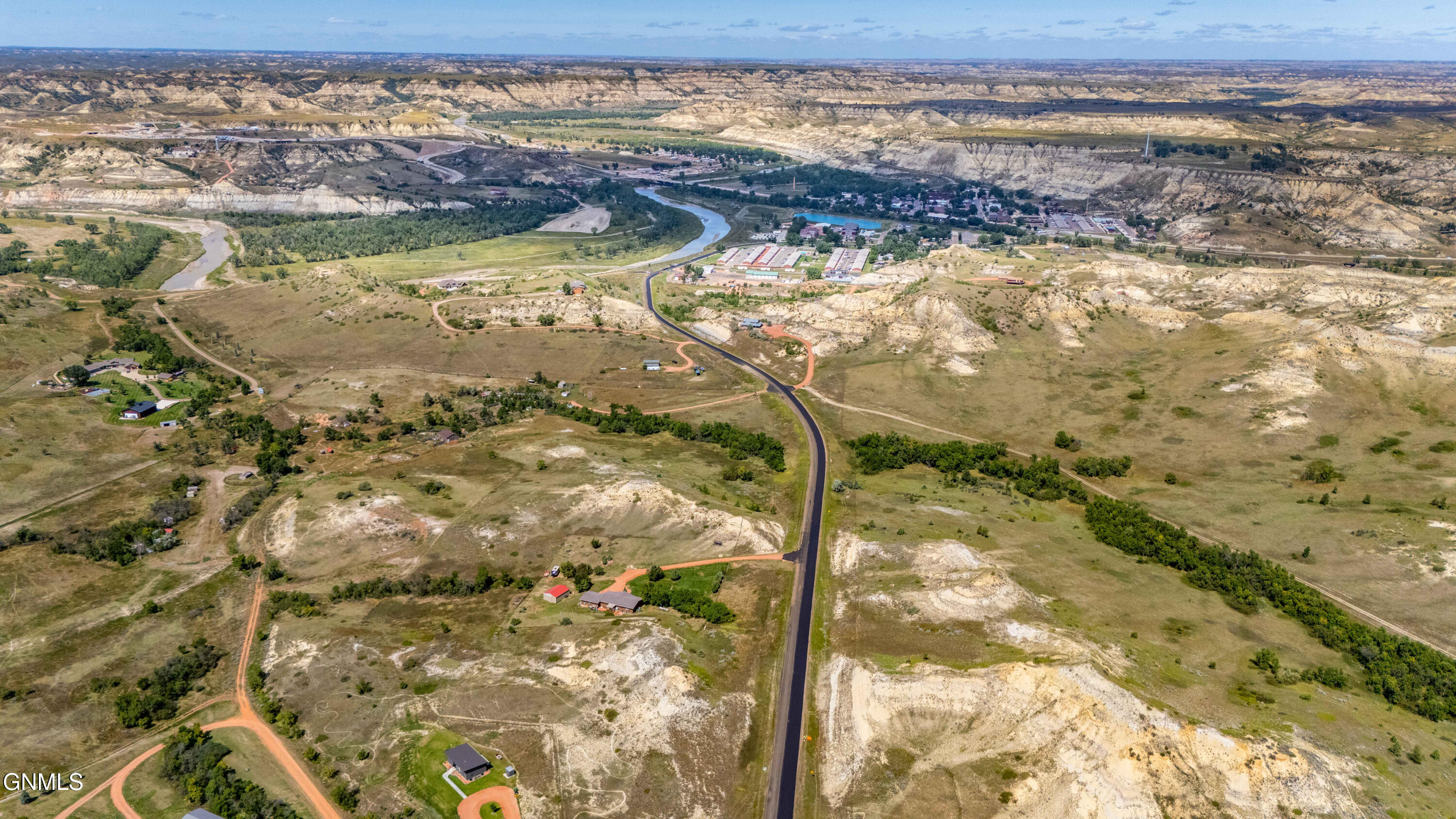 THE BADLANDS, THE BLUE SKIES..... 9 Acres with a BEAUTIFUL home, less than 1 mile from the heart of MEDORA and 1.5 miles from the entrance to THEODORE ROOSEVELT NATIONAL PARK! Breathtaking views of the Outdoor Amphitheatre, the upcoming Presidential Library, the Badlands and the Little Missouri River! This property has been meticulously maintained with welcoming curb appeal to all the visitors that are on their way to the Bully Pulpit Golf Course. In the home, everything you need is on the main floor; including a Primary bedroom with an en suite bathroom featuring a shower AND jacuzzi tub. The Bonus room upstairs could be used as an office or a third bedroom. You access the basement through a separate entrance in the attached garage. Great way to provide privacy, if you plan to use the additional space for your guests taking in the tourist activities. Downstairs you will be shocked with the amount of space! 3 non-conforming bedrooms and a bonus room that could be used as an office or another bedroom. The attached garage has heat AND air conditioning, making it a great place to entertain. There is also a detached double stall shop with electricity. Beyond the detached shop is a water spigot and 30 amp electrical service.