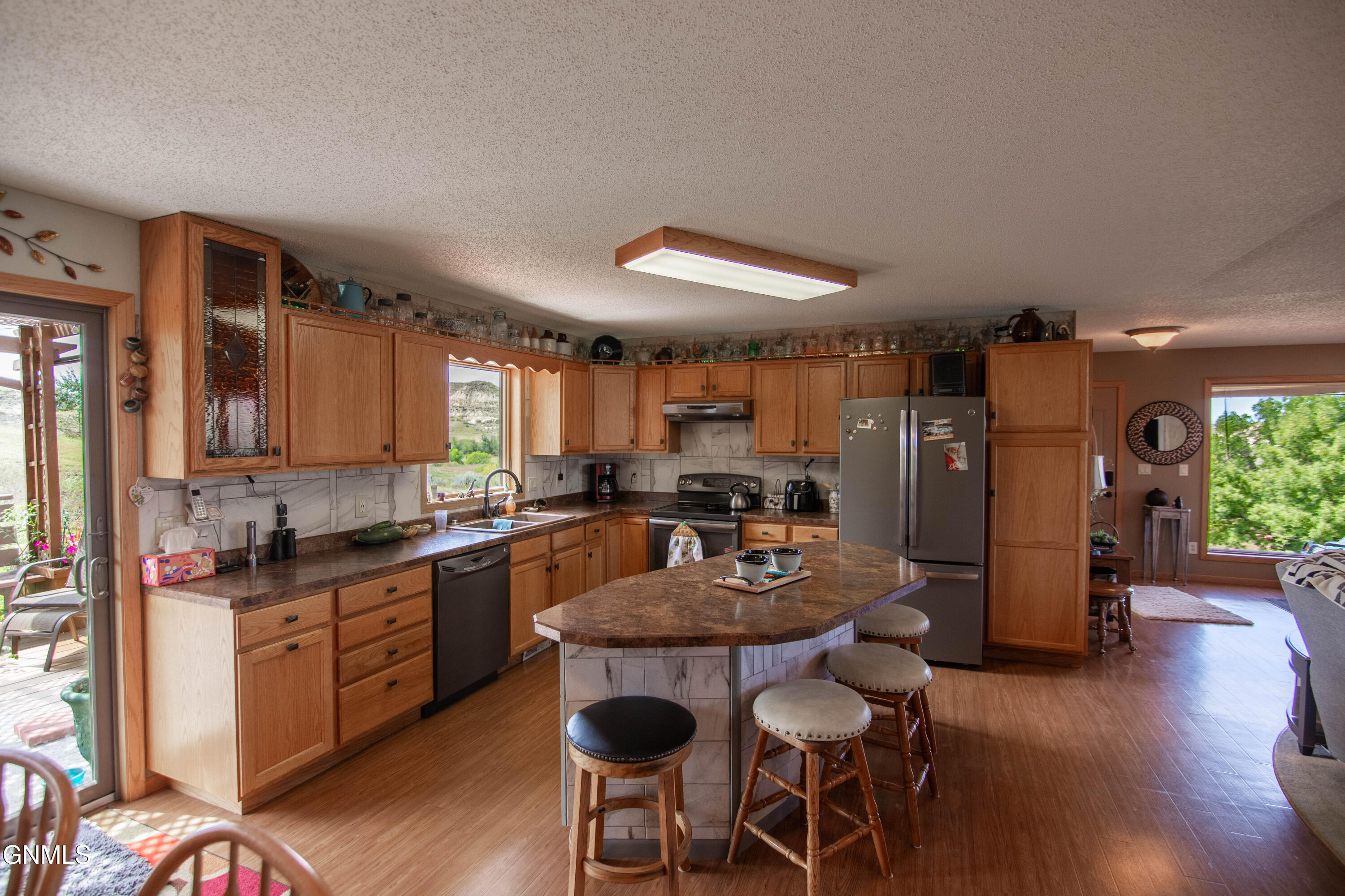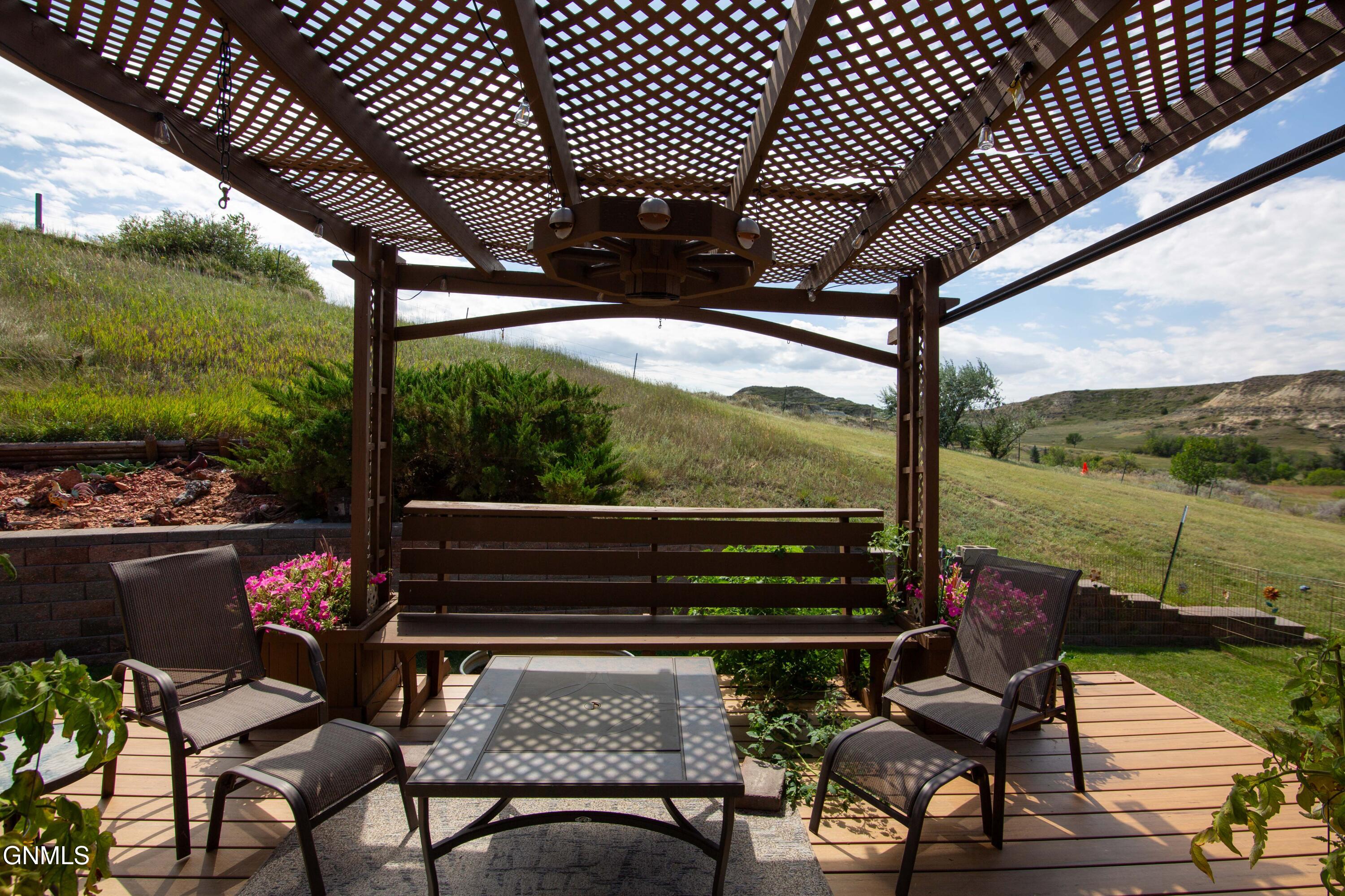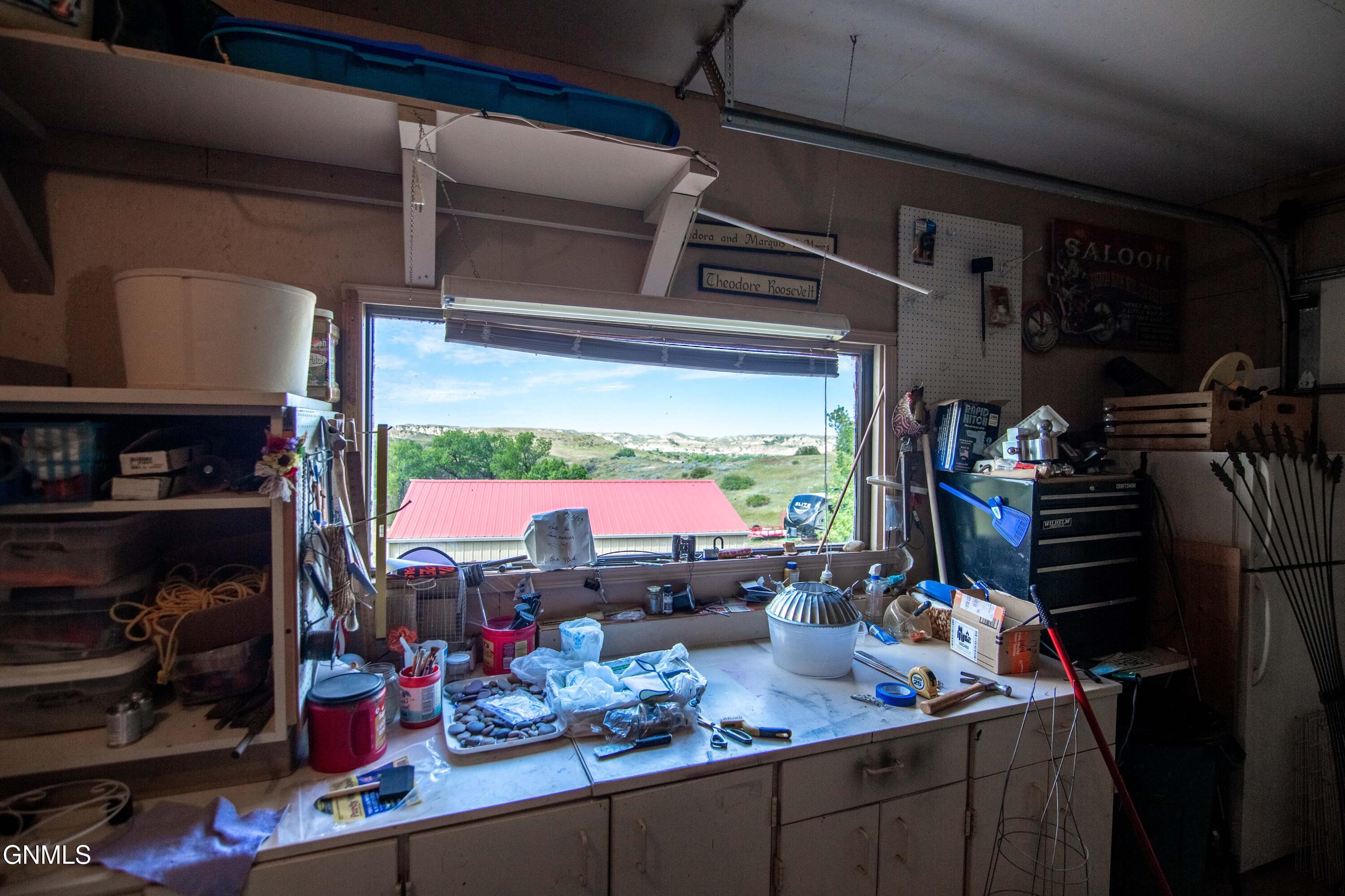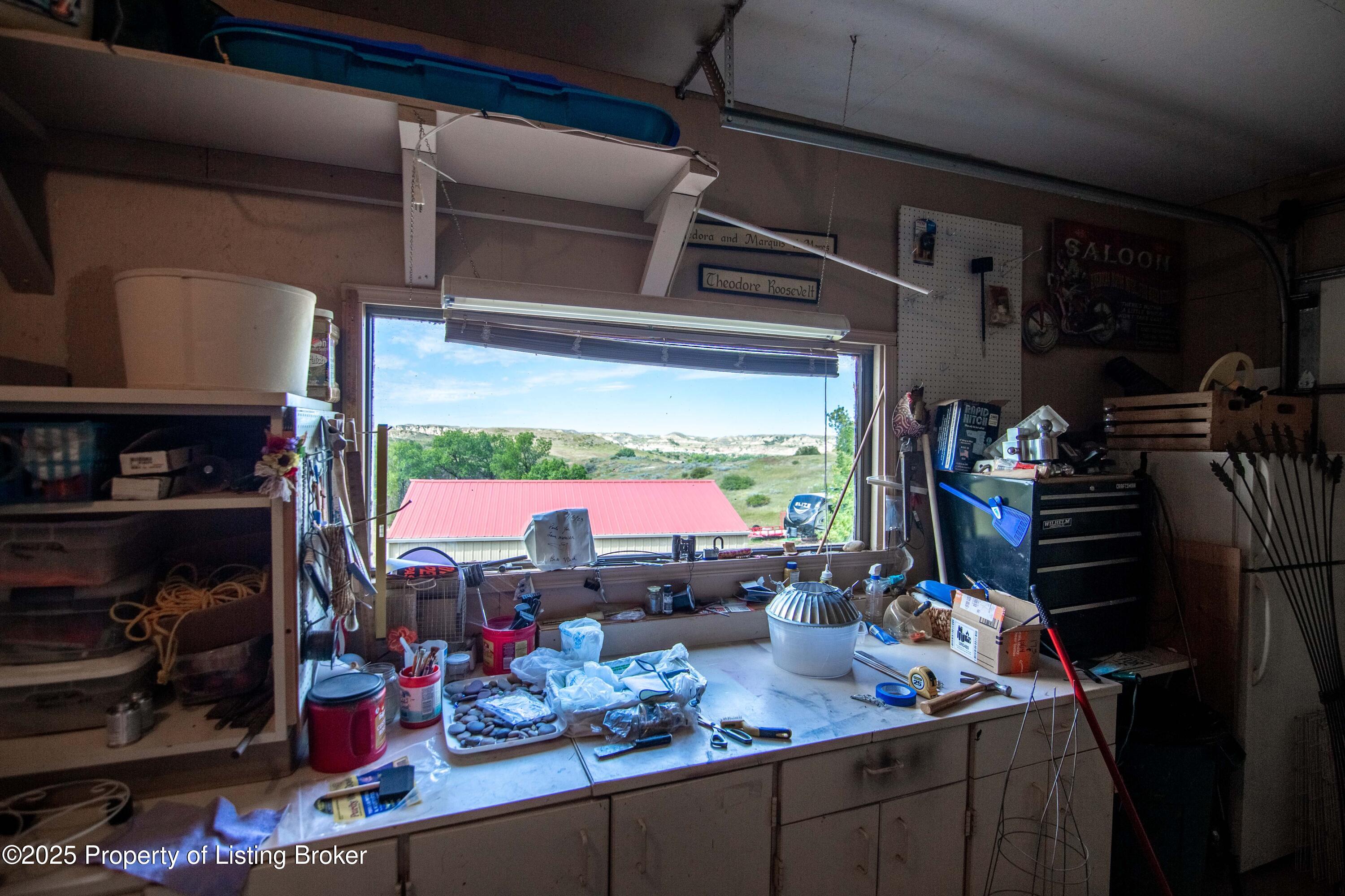 THE BADLANDS, THE BLUE SKIES..... 9 Acres with a BEAUTIFUL home, less than 1 mile from the heart of MEDORA and 1.5 miles from the entrance to THEODORE ROOSEVELT NATIONAL PARK! Breathtaking views of the Outdoor Amphitheatre, the upcoming Presidential Library, the Badlands and the Little Missouri River! This property has been meticulously maintained with welcoming curb appeal to all the visitors that are on their way to the Bully Pulpit Golf Course. In the home, everything you need is on the main floor; including a Primary bedroom with an en suite bathroom featuring a shower AND jacuzzi tub. The Bonus room upstairs could be used as an office or a third bedroom. You access the basement through a separate entrance in the attached garage. Great way to provide privacy, if you plan to use the additional space for your guests taking in the tourist activities. Downstairs you will be shocked with the amount of space! 3 non-conforming bedrooms and a bonus room that could be used as an office or another bedroom. The attached garage has heat AND air conditioning, making it a great place to entertain. There is also a detached double stall shop with electricity. Beyond the detached shop is a water spigot and 30 amp electrical service.