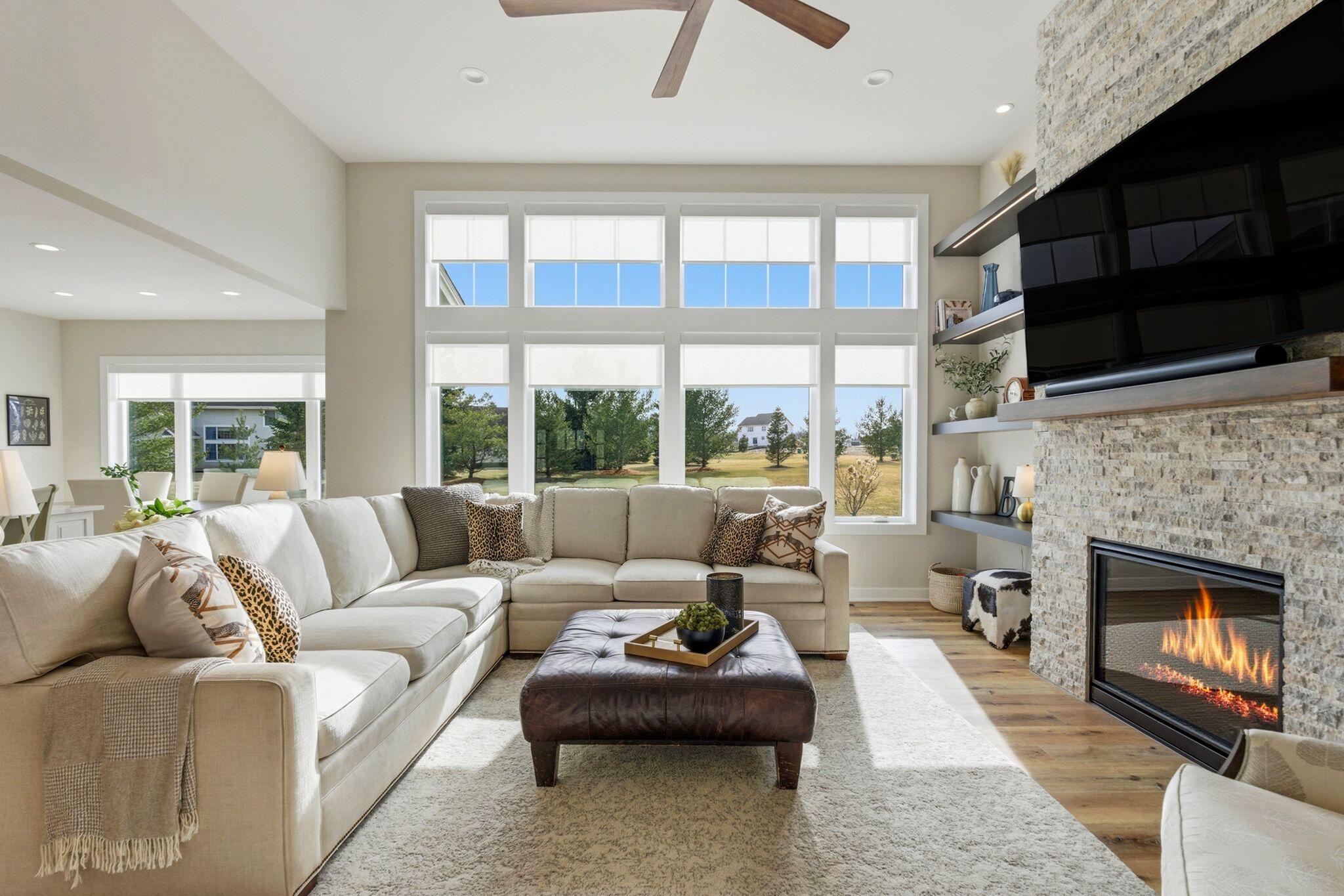 Discover refined living in this stunning brick estate, privately nestled on 1.2 beautifully landscaped acres in the prestigious Hawthorne Acres subdivision. With over 9,500 sq ft of exceptionally designed living space, this 5-bedroom, 5 full bath, 2 half bath residence offers the perfect balance of everyday comfort and elevated entertaining with Majestic design. A grand two-story foyer with a sweeping curved staircase sets the tone upon entry. The main living room features vaulted ceilings, custom built-ins surrounding the fireplace, and a dramatic wall of windows framing serene views of the grounds. Nearby, the inviting south-facing sunroom, finished in elegant travertine, provides a warm and relaxing space to enjoy every season. Designed for those who appreciate both function and beauty, the gourmet kitchen includes abundant cabinetry, a large island with a 6-burner cooktop, double ovens, a Sub-Zero refrigerator, tiled backsplash, and a walk-in butlers pantry with built-in desk space. The adjoining family room, brick-surround fireplace, and main floor laundry enhance the ease of daily living. The main-floor primary suite serves as a private retreat, offering a spacious walk-in closet and a spa-inspired bathroom with dual vanities, a whirlpool tub, and a travertine-tiled shower with a new glass enclosure. Upstairs, a private back staircase leads to three generous bedrooms, each with their own en-suite bathroom and walk-in closet, as well as a large bonus room offering flexible use for study, play, or quiet relaxation. The full walkout lower level is thoughtfully designed for hosting and leisure, featuring a spectacular wet bar, a comfortable family/theater room, a steam shower bath, a dedicated exercise room with cushioned flooring, and a bright recreation or office space that opens directly to a peaceful patio and backyard setting. Storage throughout the home is abundant, and the four-car attached garage provides both convenience and capacity. Notable recent updates further enhance the homes value and peace of mind, including a CertainTeed impact-resistant 50-year roof (2021), hot water heater (2021), a 24 kW natural gas whole-house generator (2022), and all three central AC units and the main furnace replaced in 2022, along with fresh paint, new carpet, and updated window treatments in the primary suite. This exceptional property built by Ross Campbell, offers luxury, privacy, and timeless design-an extraordinary opportunity in one of Bloomingtons most sought-after neighborhoods.